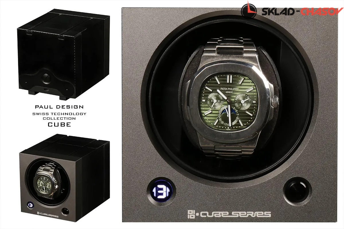 Элегантная шкатулка для автоподзавода 1-х часов PD CUBE GY от Paul Design сочетает современный минимализм и высокие технологии. Корпус выполнен из металла и украшен перламутровой вставкой на лицевой стороне серого оттенка.