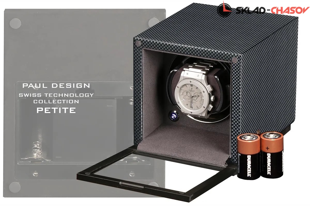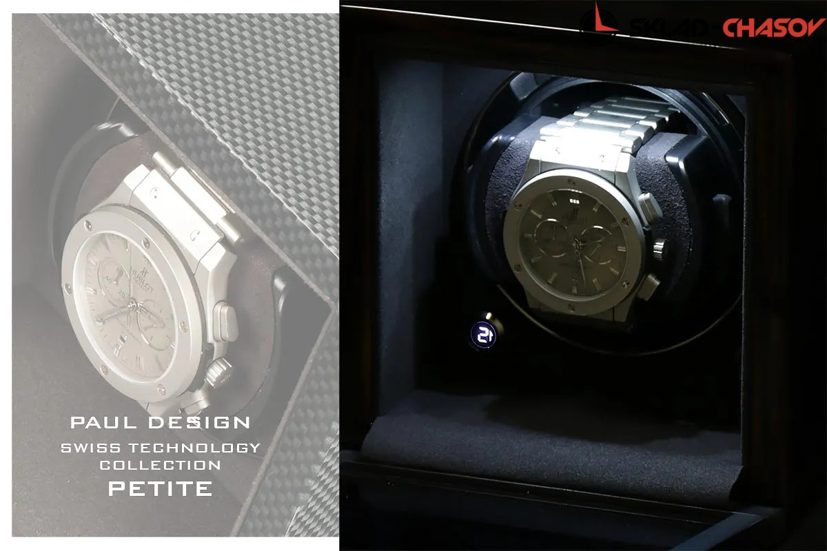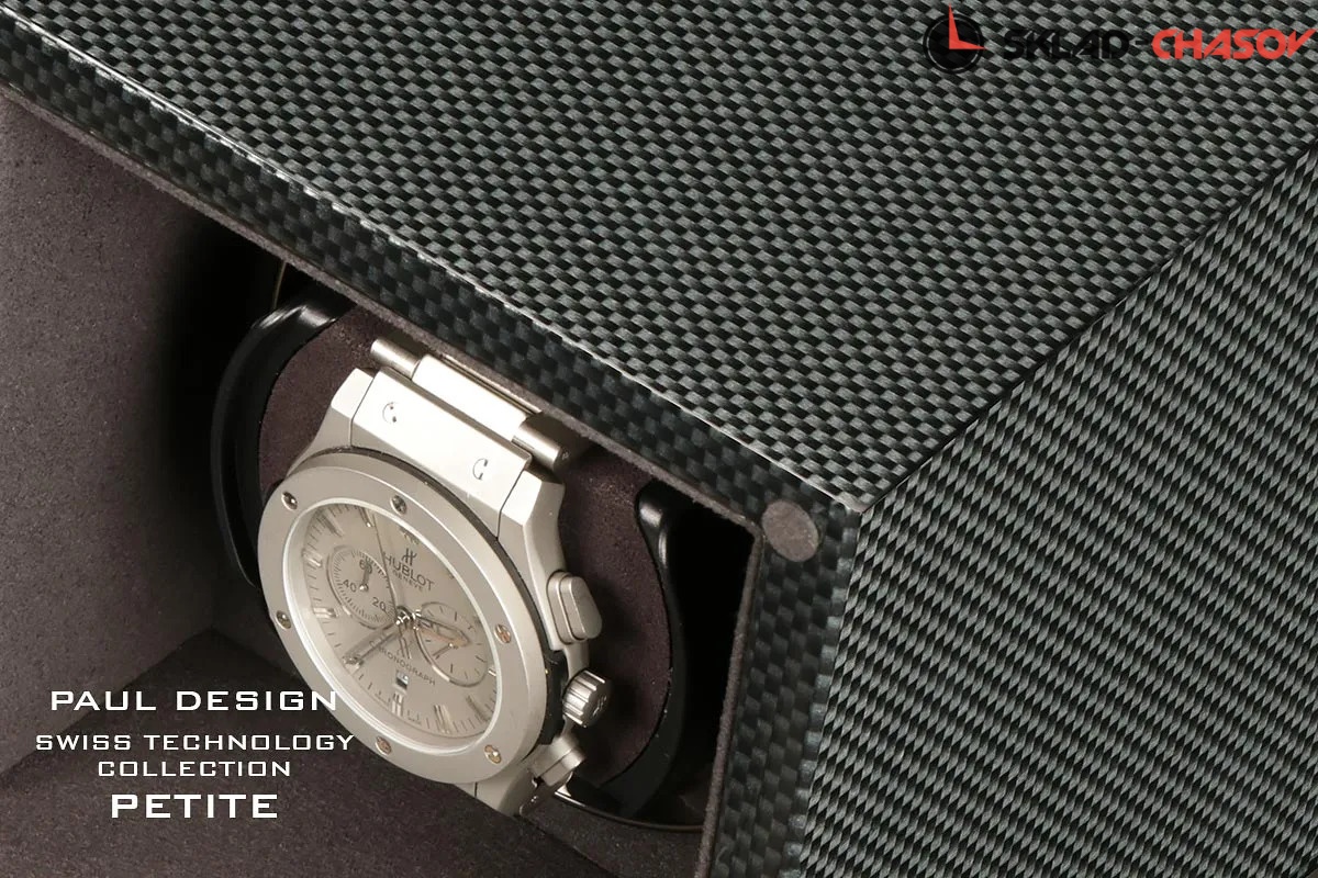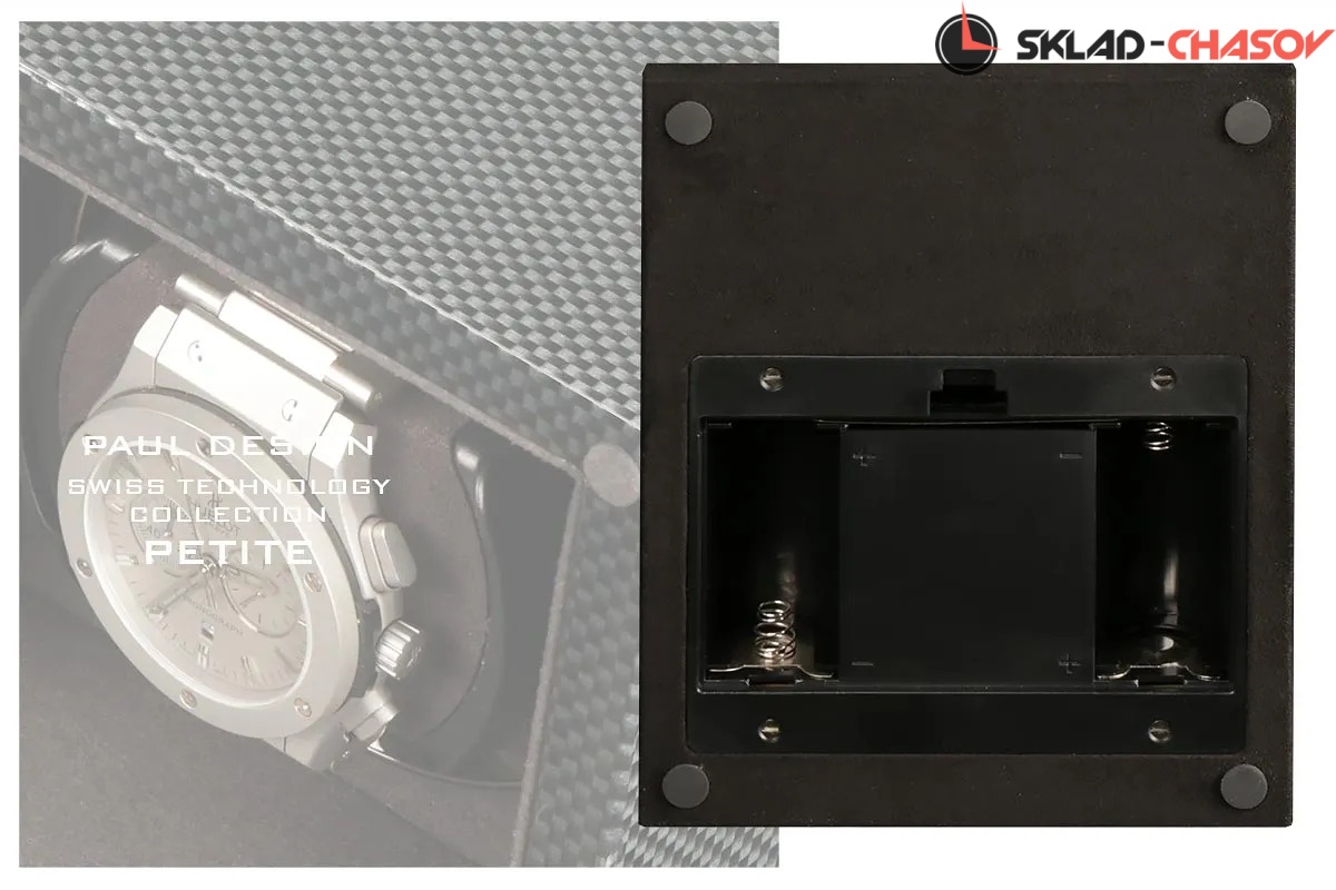 Элегантный виндер для автоподзавода 1-х часов Petite 1D CF-K от Paul Design сочетает в себе утончённый дизайн и современную функциональность. Корпус выполнен из дерева с отделкой из карбона. Внутреннее пространство оформлено мягкой микрофиброй серого оттенка, которая бережно сохраняет часы.