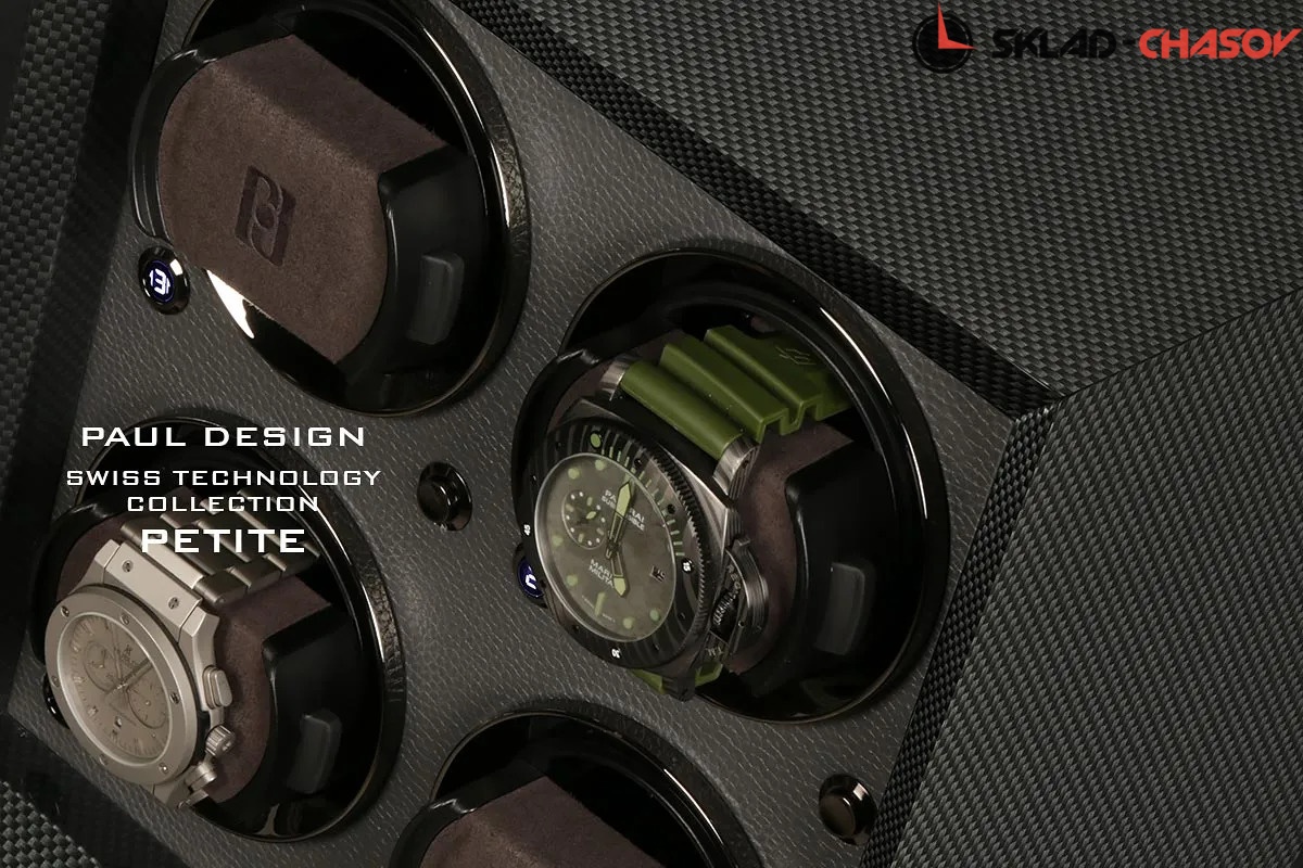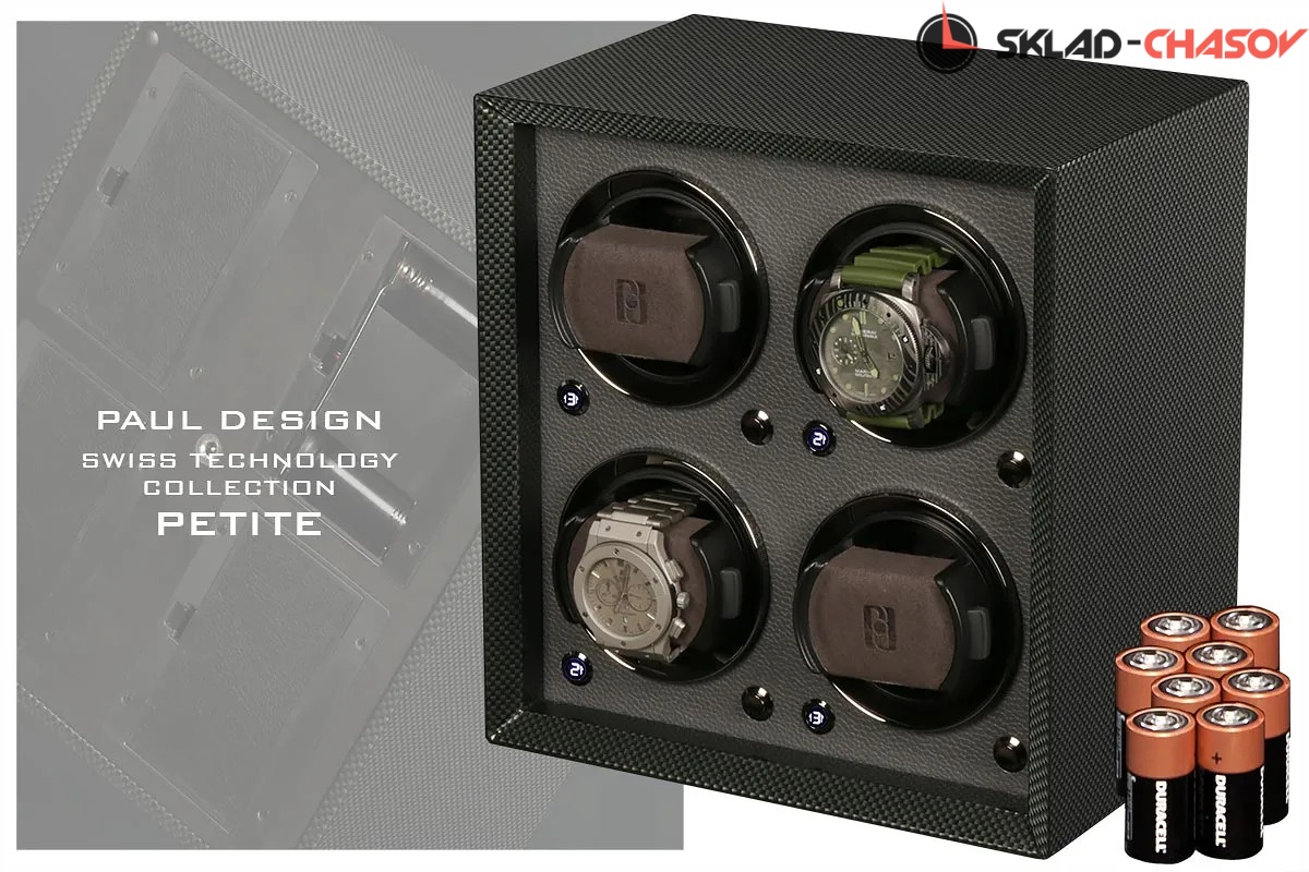 Элегантная шкатулка для автоподзавода 4-х часов Petite 4 CF-K от Paul Design сочетает изысканный дизайн и современные технологии. Корпус выполнен из дерева с отделкой из карбона и покрыт многослойным рояльным лаком, который придаёт поверхности безупречный глянец и утончённую современную эстетику. Внутреннее пространство выполнено в тон экстерьера.