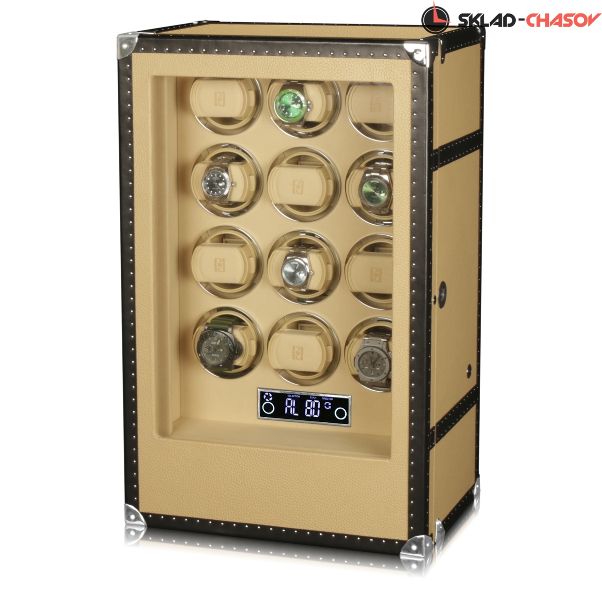 Новая модель с новым инновационным открытием (отпечаток пальца - с возможности запрограммировать до 5 отпечатков). Корпус выполнен в стиле чемодана луи вьюттон, полностью из натуральной кожи "Ikra - цвета слоновой кости", внутри выстлано практичной микрофиброй, новые и самые удобные держатели позволяют без труда фиксировать ваши часы под любой размер запястья с внутренним фиксатором, современное touchscreen - дисплей позволяет настраивать под любые часы - любой сложности (все возможные регулировки), пульт даёт возможность регулировки отдельно на каждые часы, встроенные часы на табло, светодиодная подсветка, алюминиевые красивые рамки для часов, отдельная кнопка вкл/выкл подсветки. Фирменная подарочная коробка PD. Лучшая цена за лучшую шкатулку.