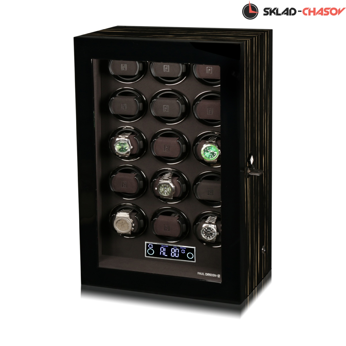 Новая модель для подзавода 15 часов с новым инновационным открытием (отпечаток пальца, с возможностью запрограммировать до 5 отпечатков). Корпус выполнен из двух благородных пород дерева (чёрное Венге и дерево 3д), внутри выстлано практичной микрофиброй. Новые и самые удобные держатели позволяют без труда фиксировать ваши часы под любой размер запястья с внутренним фиксатором. Современный сенсорный экран позволяет настраивать под любые часы, любой сложности (все возможные регулировки), пульт даёт возможность регулировки отдельно на каждые часы. Встроенные часы на табло. Светодиодная подсветка, алюминиевые красивые рамки для часов, отдельная кнопка вкл/выкл подсветки. Фирменная подарочная коробка PD. Лучшая цена — за лучшую шкатулку!