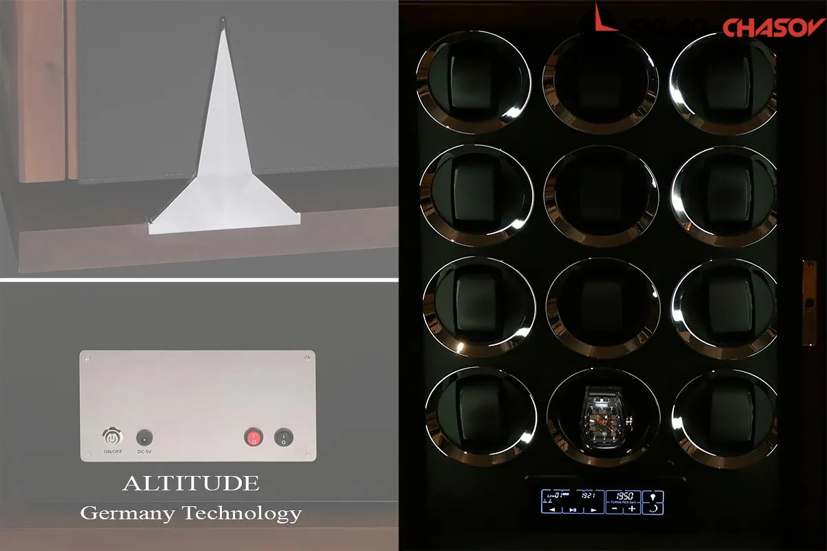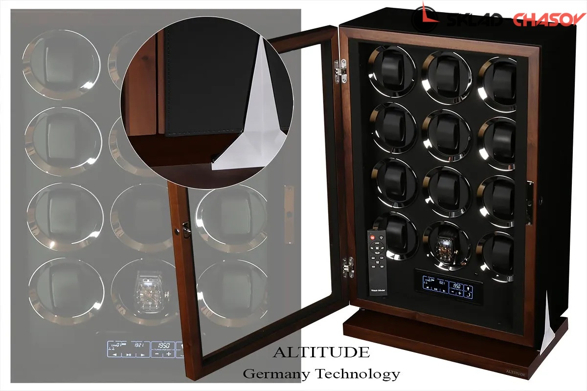 Дизайнеровская, новая, современная, элитная модель от известного бренда шкатулок « Altitude”, коллекция Evolution”. 5 лет лучшие дизайнеры и мастера создавали одну из самых красивых и функциональных шкатулок в мире.! Особенности корпуса это сочетание кожи и дорогой породы дерева дуб в современном корпусе , здесь есть все самые современные идеологии подзавода, автостоп механизма, удобнейшие держатели, белая подстветка... лучшее качество по лучшей цене- такой девиз у компании «Altitude”.