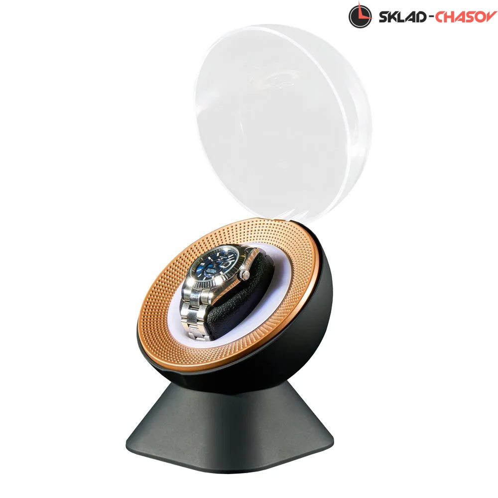 В основе устройства — механизм вращения, который поддерживает точность хода автоматических часов. Управление осуществляется с помощью встроенной кнопки на задней панели. Питание возможно через USB-кабель, что делает модель универсальной для дома и офиса.