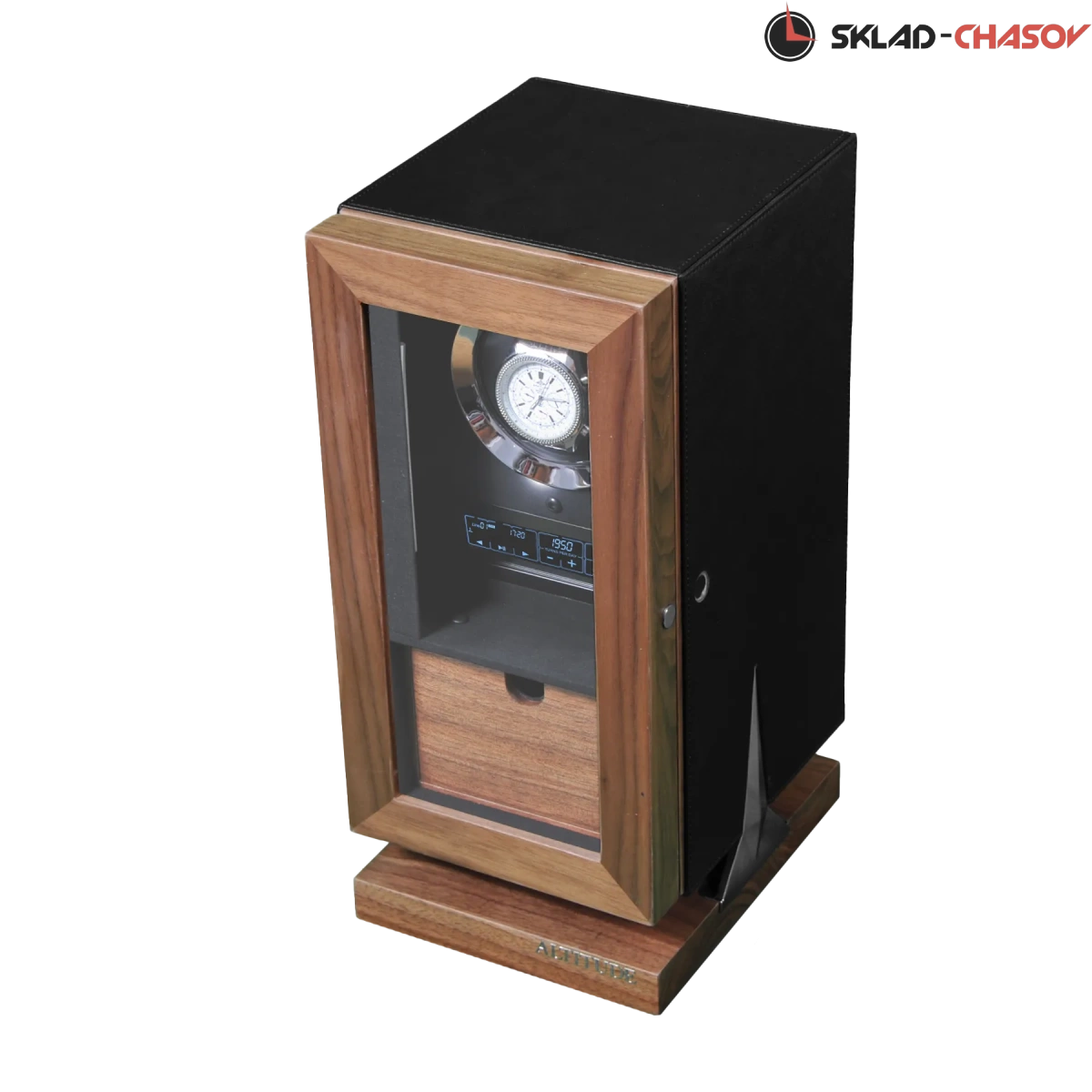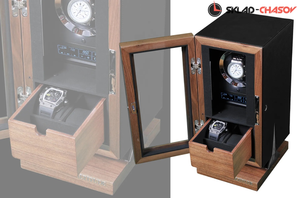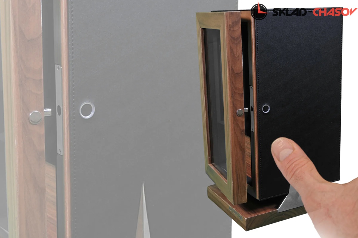 Новая серия “Hide”. Модель “Hide1”. Инновационная новинка с модным, стильным дизайном от ведущих мастеров. Исключительное дерево в сочетании с кожей, при этом удобство использования впечатляет. Отпечаток пальца можно программировать максимум до 5 вариантов. Внутри есть дополнительный ящик для хранения. Удобные телескопические держатели, внутренняя диодная подсветка, вставки из хромированного металла, все возможные отдельные регулировки для любых часов — любой сложности. Фирменная Гарантия от производителя 12 месяцев.