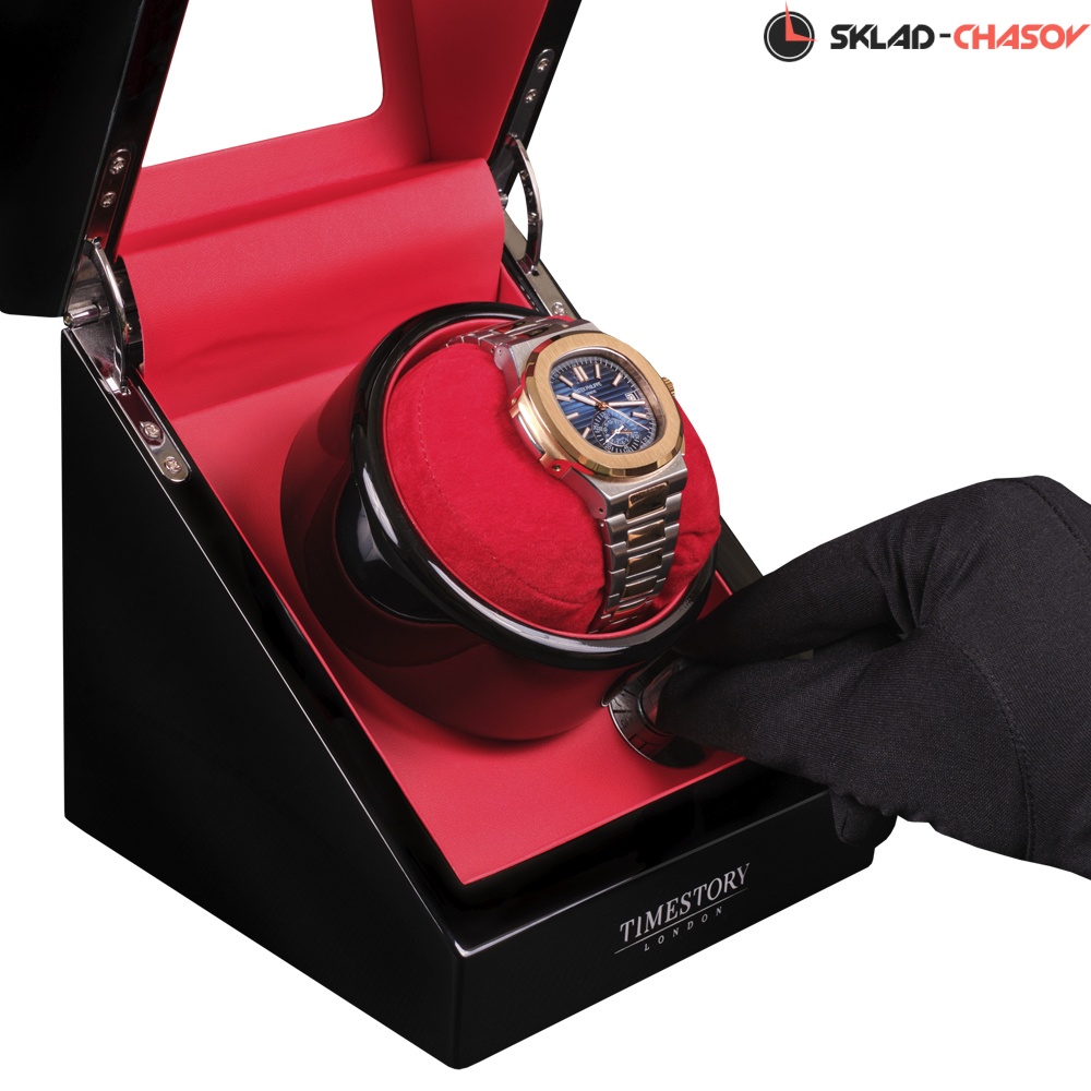 В экстерьере используется высококачественное дерево, покрытое большим количеством слоев черного рояльного лака. Для максимальной простоты в использовании автоподзавод включается всего с одной кнопки на задней стороне бокса. Истинные ценители часов оценят четыре режима подзавода в шкатулке. Продуманная система выбора количества оборотов от 750 до 1800 сможет завести любые часы любой сложности. Достаточно просто повернуть тумблер на нужное количество оборотов и часы попеременно будут вращаться.