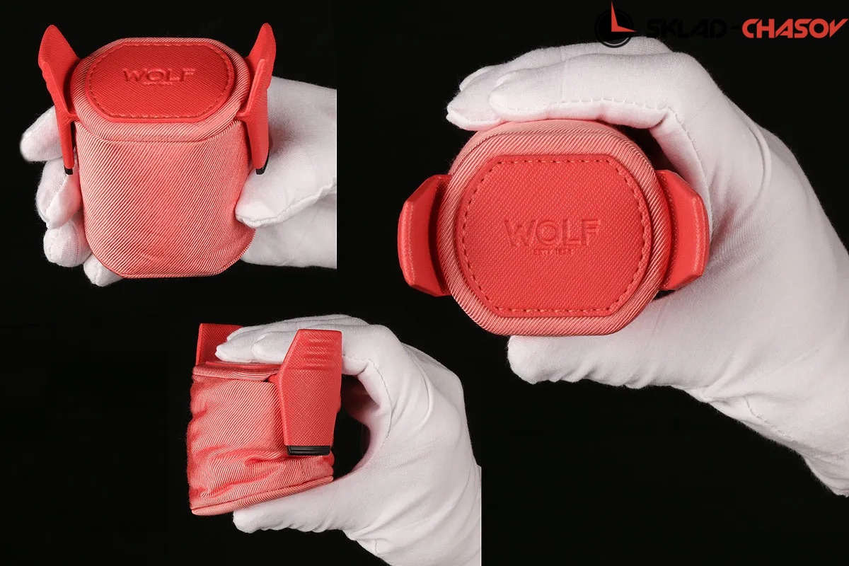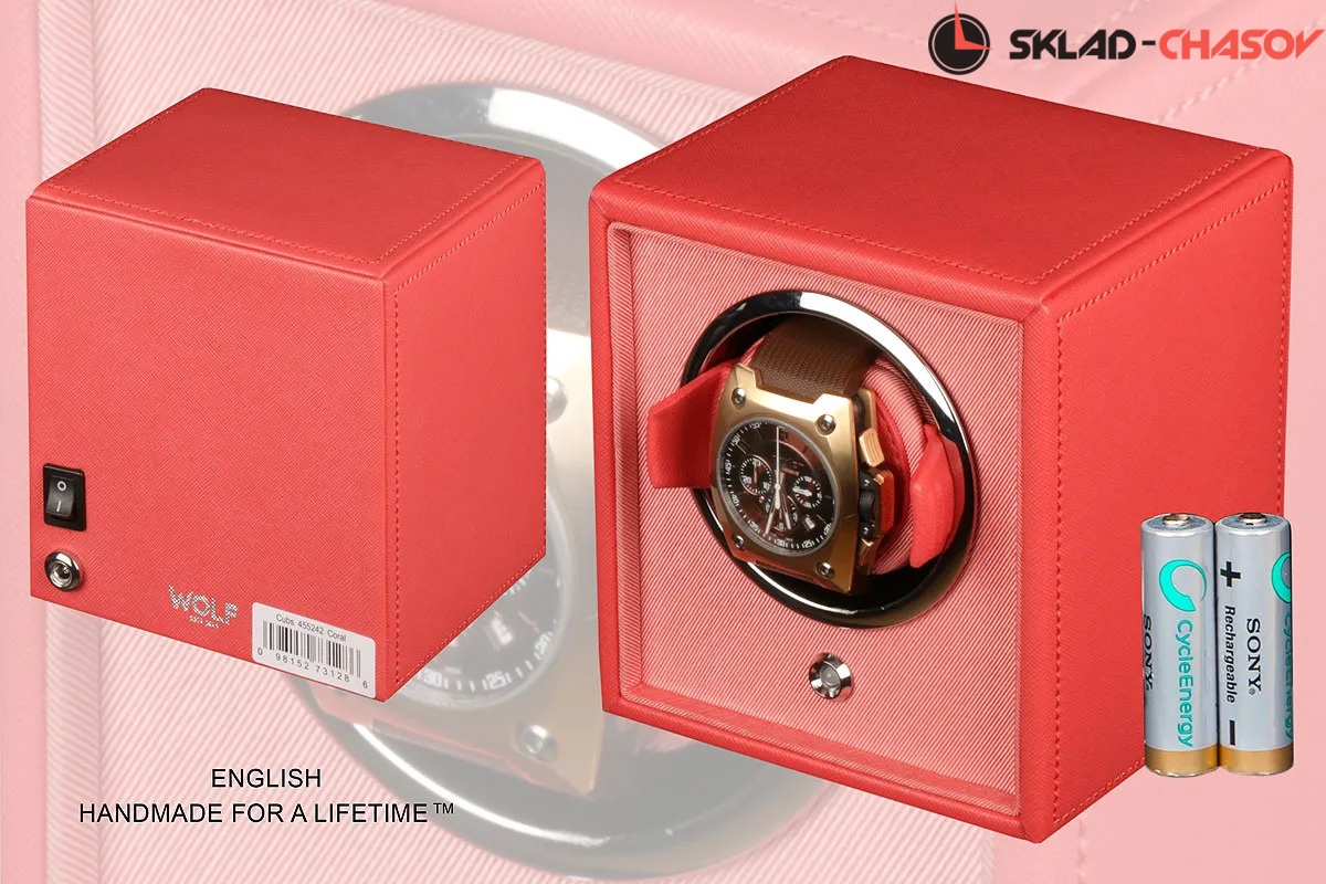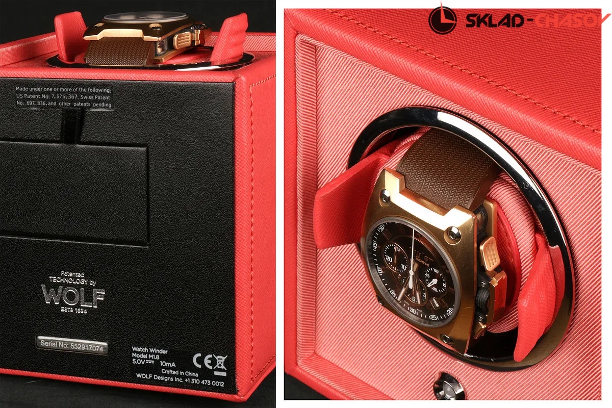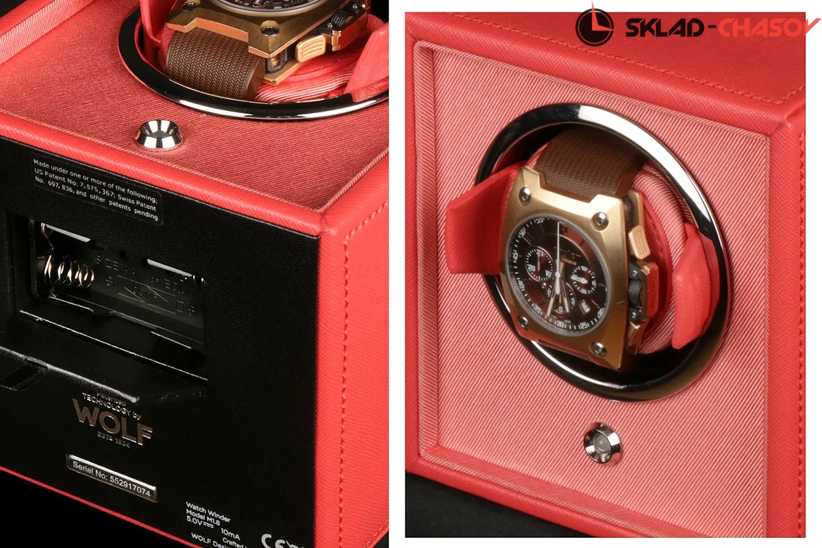 Модель "Navigator1". Шкатулка от известного английского и старинного бренда "Wolf design" не оставит равнодушным презентабельных и успешных людей, так как выполнена в ручную лучшими мастерами. Корпус из красной кожи, внутри отделка износостойким шелком. Открытый доступ к вашим часам, удобный современный держатель для ваших любимых часов с фиксацией. Каждая шкатулка со своим серийным номером. Работает от сети и от 2 батареек класса "AA". На шкатулку распространяется наша фирменная гарантия сроком 1 год в "Тайммувер Сервис" Удобный современный держатель для ваших часов с логотипом WOLF. Корпус из красной кожи, внутри отделка износостойким шелком.