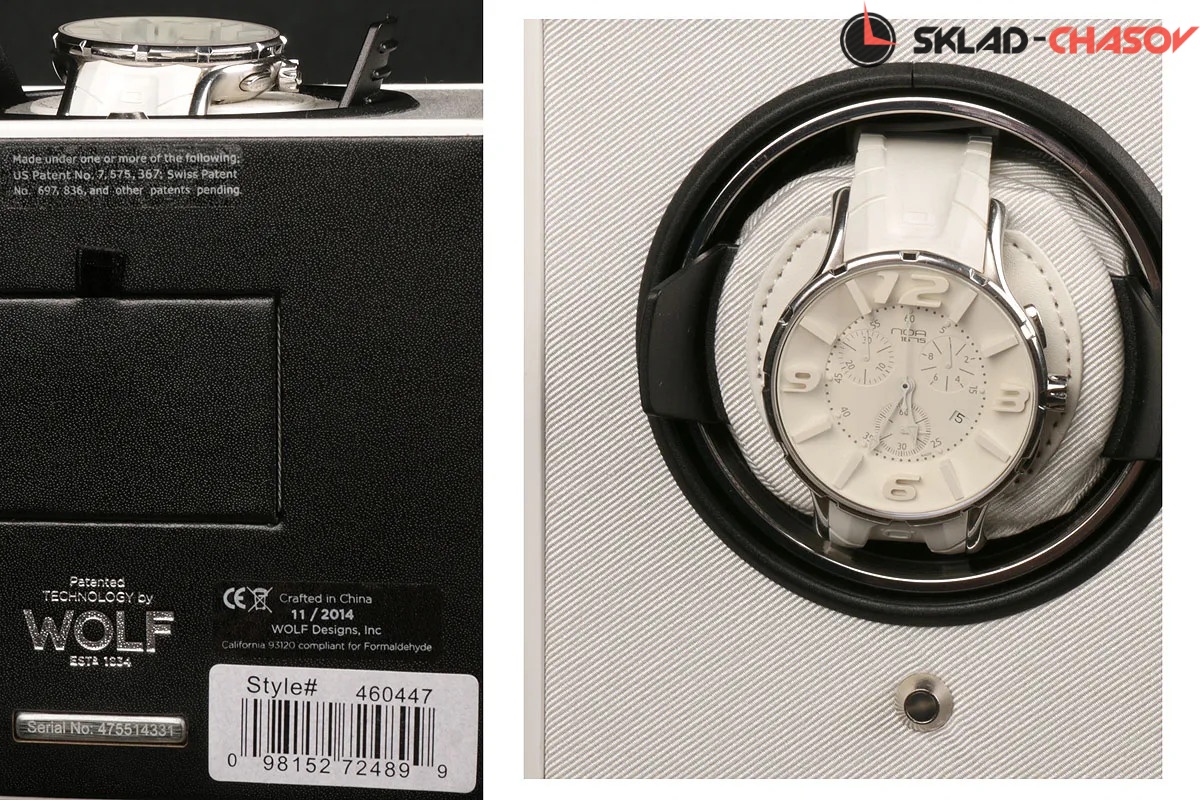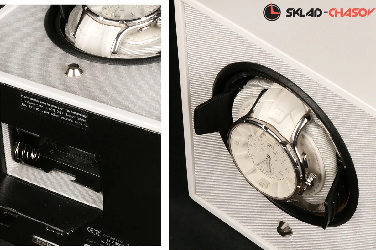 Модель "Cube1". Шкатулка от известного английского и старинного бренда "Wolf design" не оставит равнодушным презентабельных и успешных людей, так как выполнена в ручную лучшими мастерами. Корпус из белого дерева ценных пород. Внутри отделка износостойким шелком. Открытый доступ к вашим часам, удобный современный держатель для ваших любимых часов с фиксацией. Каждая шкатулка со своим серийным номером. Работает от сети и от 2 батареек класса "AA". Регулируется направления вращения попеременно при кол-ве оборотов в сутки 900. Отложенный старт механизма 10 секунд. Гарантия 18 мес. Фирменная подарочная чёрная коробка. Удобный современный держатель для ваших любимых часов с логотипом WOLF. Корпус из белого дерева ценных пород. Внутри отделка износостойким шелком.