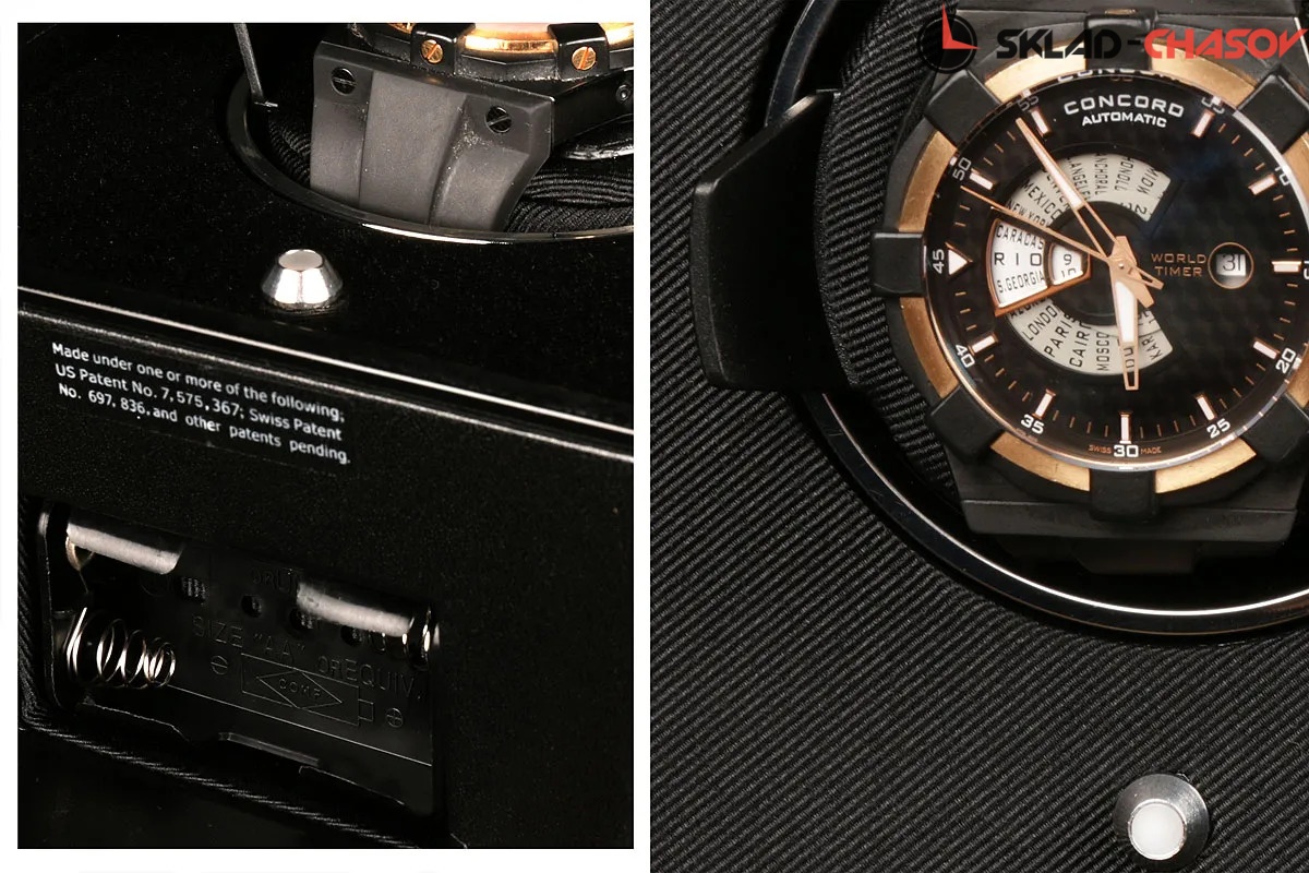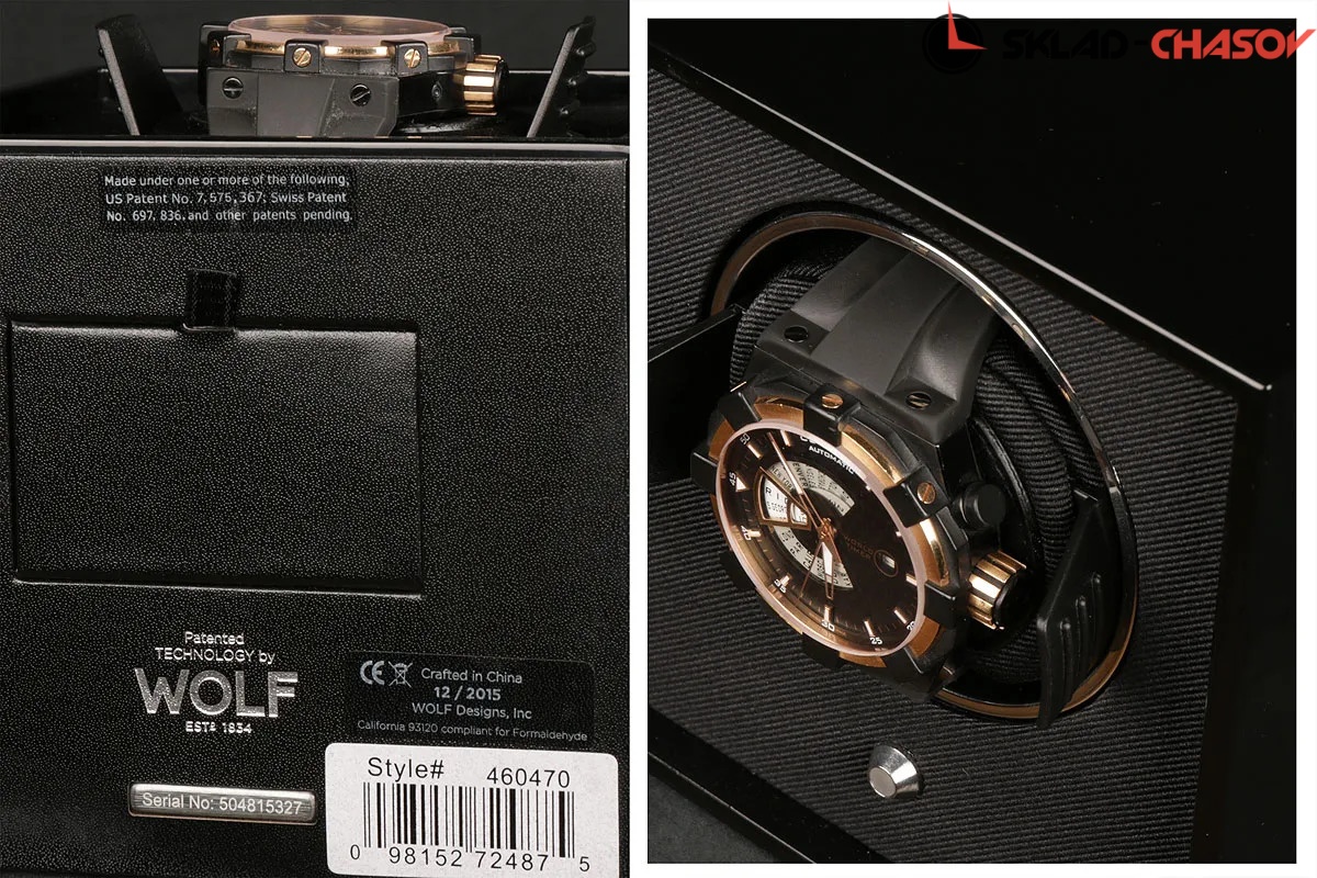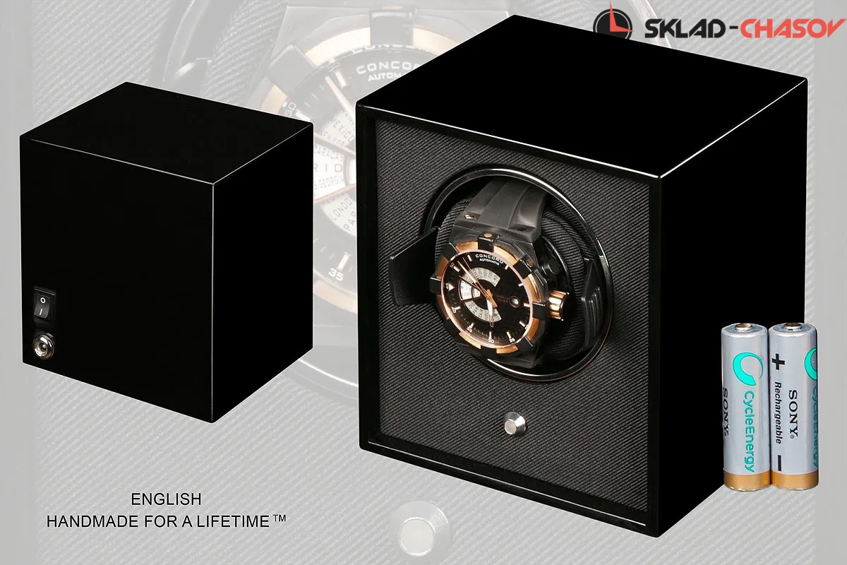Модель "Cube1". Шкатулка от известного английского и старинного бренда "Wolf design" не оставит равнодушным презентабельных и успешных людей, так как выполнена в ручную лучшими мастерами. Корпус из черного дерева ценных пород. Внутри отделка износостойким шелком черного цвета. Открытый доступ к вашим часам, удобный современный держатель для ваших любимых часов с фиксацией. Каждая шкатулка со своим серийным номером. Работает от сети и от 2 батареек класса "AA". Регулируется направления вращения попеременно при кол-ве оборотов в сутки 900. Отложенный старт механизма 10 секунд. Гарантия 18 мес. Фирменная подарочная чёрная коробка. Удобный современный держатель для ваших любимых часов с логотипом WOLF. Внутри отделка износостойким шелком черного цвета.