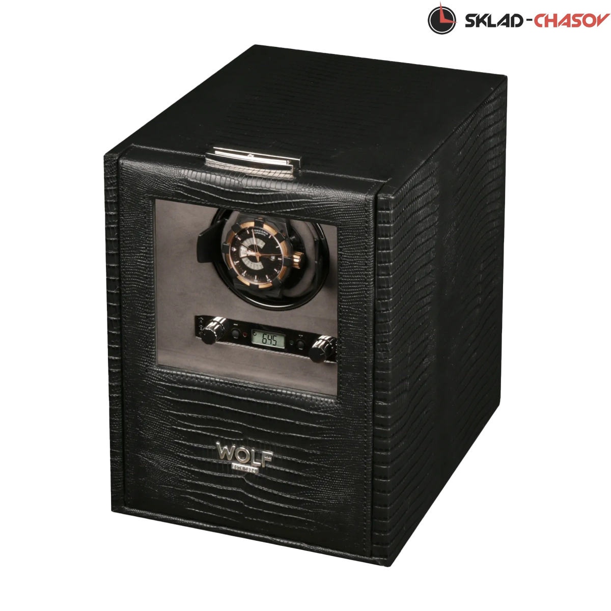 Модель "Blake Single1". Шкатулка от известного английского и старинного бренда "Wolf design" не оставит равнодушным презентабельных и успешных людей, так как выполнена в ручную лучшими мастерами. Корпус из коричневой кожи под "питона", внутри отделка износостойкой замшей в тон шкатулки. Подзавод одних часов любой сложности, а также хранения 3 наручных часов и свободным отделением, удобный современный держатель для ваших любимых часов с фиксацией. Внешняя дверца с возможностью закрытия на ключик, а также при желании она прячется в корпус. Каждая шкатулка со своим серийным номером. Работает от сети и от 2 батареек класса "D". Регулируется 3 направления вращения при кол-ве оборотов от 300 до 1200 в сутки. Подзаводит любые часы-любой сложности. Возможность фиксации на ключик. Отложенный старт механизма 10 секунд.Гарантия 18 мес. Фирменная подарочная чёрная коробка. Удобный современный держатель с логотипом WOLF. Корпус из коричневой кожи под "питона", внутри отделка износостойкой замшей в тон шкатулки.
