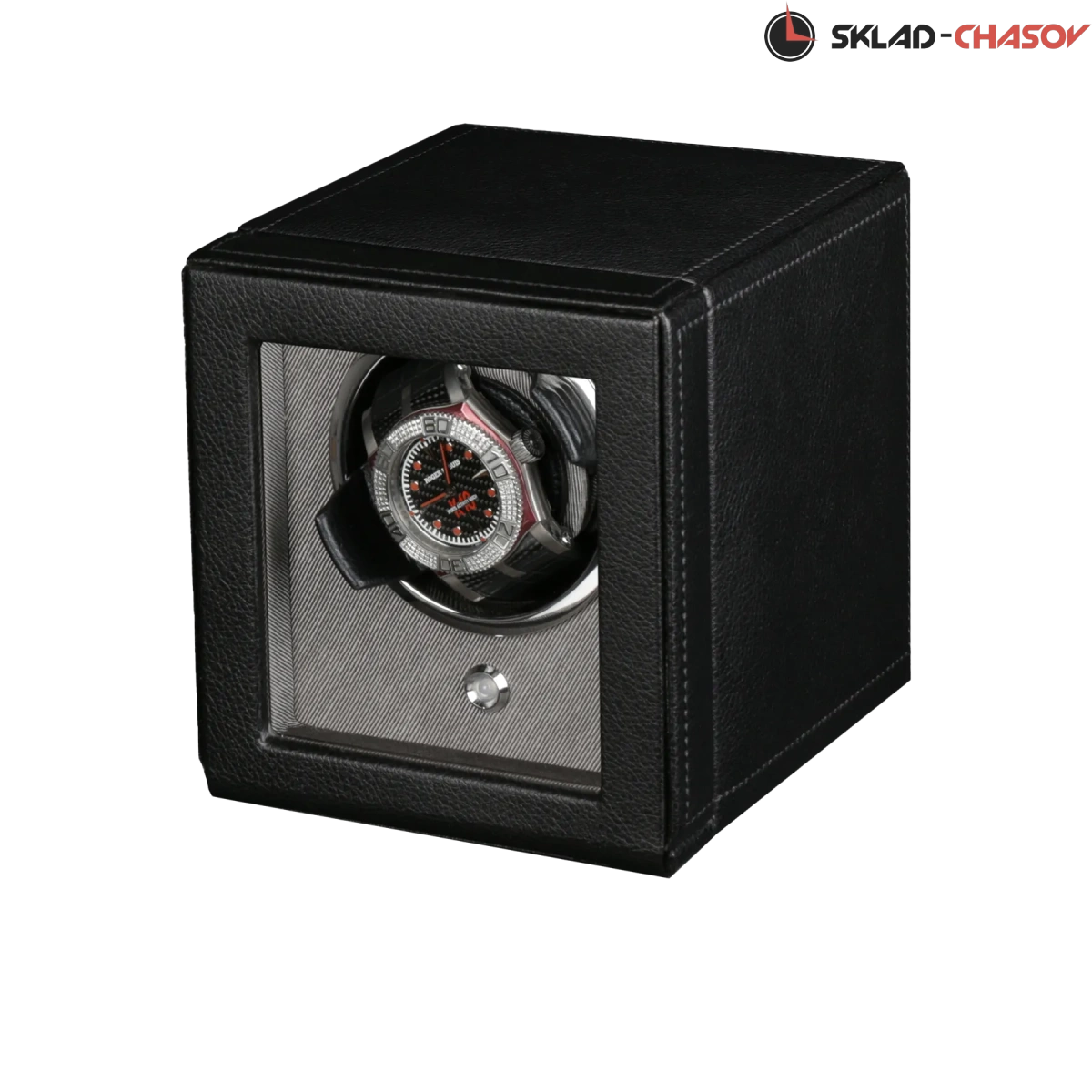 Модель "Cube Cover1". Шкатулка от известного английского и старинного бренда "Wolf design" не оставит равнодушным презентабельных и успешных людей, так как выполнена в ручную лучшими мастерами. Корпус из кожи черного цвета, внутри отделка износостойким шелком. Открытый доступ к вашим часам, удобный современный держатель для ваших любимых часов с фиксацией. Каждая шкатулка со своим серийным номером. Работает от сети и от 2 батареек класса "AA". Регулируется направления вращения попеременно при кол-ве оборотов в сутки 900. Отложенный старт механизма 10 секунд. Гарантия 18 мес. Фирменная подарочная чёрная коробка. Удобные фирменные держатели для часов с логотипом WOLF. Корпус из кожи черного цвета, внутри отделка износостойким шелком. Мягкая подушка серого.