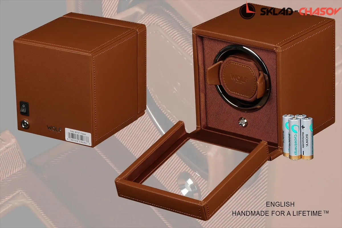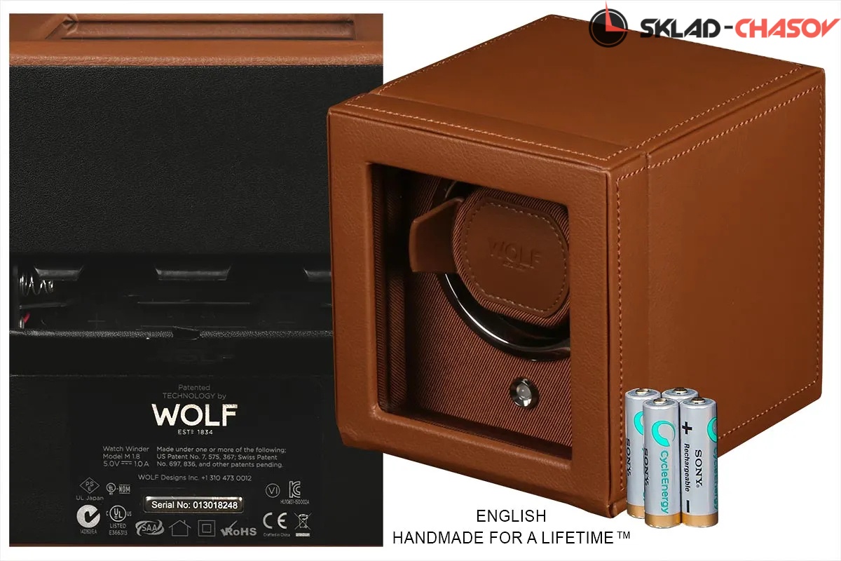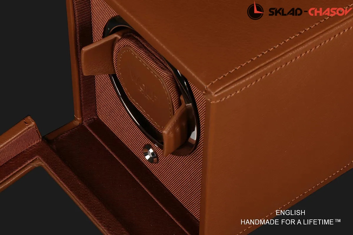 Шкатулка на 1 часы от известного английского и старинного бренда "Wolf" не оставит равнодушным презентабельных и успешных людей, так как выполнена в ручную лучшими мастерами. Корпус из кожи светло-коричневого цвета, внутри отделка износостойким шелком. Приятный доступ к вашим часам, удобный современный держатель для ваших любимых часов с фиксацией. Каждая шкатулка со своим серийным номером. Работает от сети и от 2 батареек класса "AA". Регулируется направления вращения попеременно при кол-ве оборотов в сутки 900. Отложенный старт механизма 10 секунд. Гарантия 12 мес. Фирменная подарочная чёрная коробка.