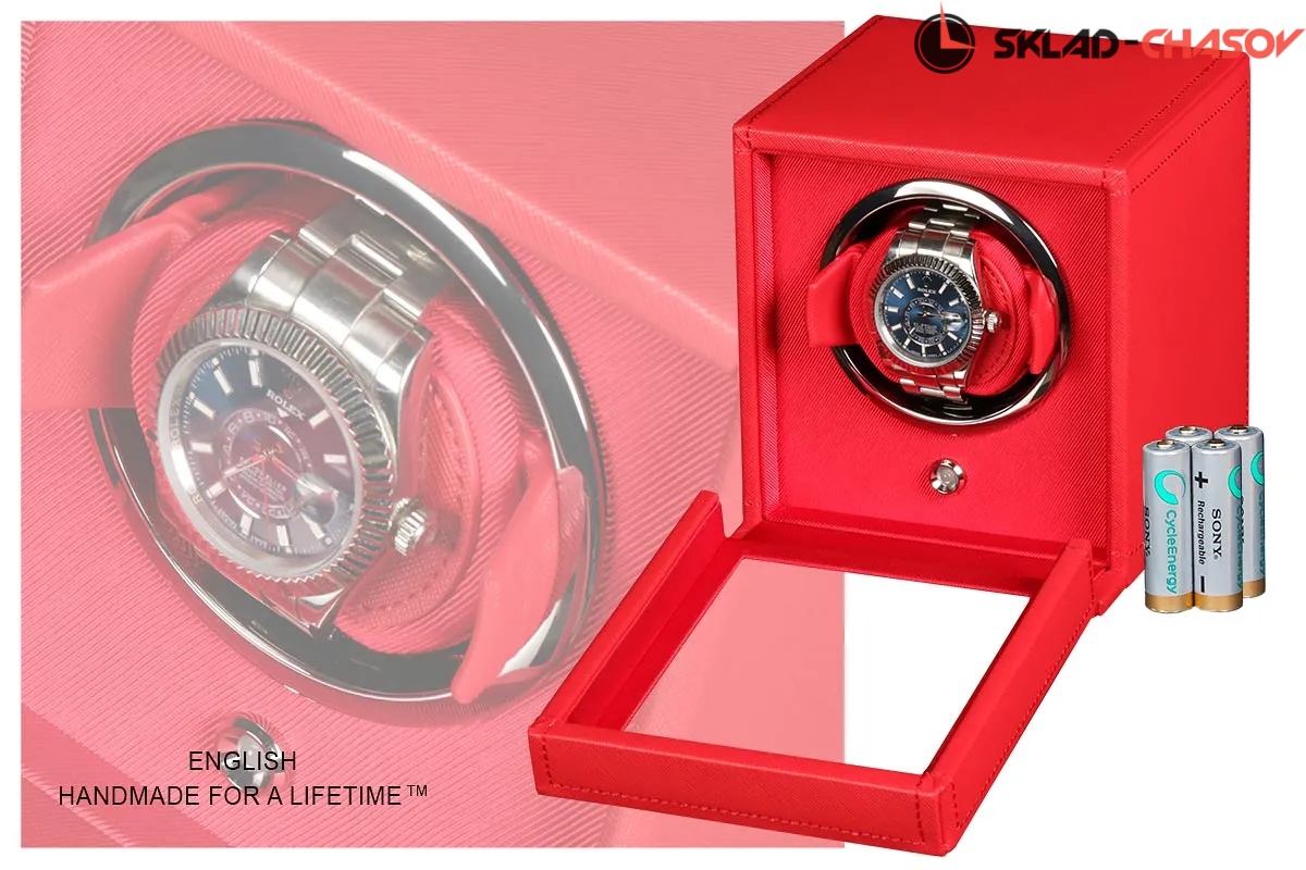 Это серия выполнена из красной кожи, с приятным шелком внутри. Выполнена в ручную. «Красота и лаконичность» - это лозунг этой серии. Мягкие и телескопические держатели для ваших часов (подходит под любой браслет и фиксируется внутри). Подзавод практически любых часов, количество оборотов в сутки 900 и попеременное вращение. Работает от сети 220 вольт и также от 4 батареек класса A.