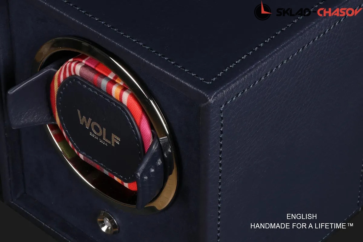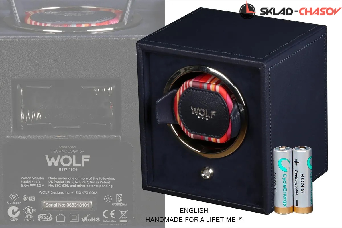 Шкатулка от известных английских мастеров компании "Wolf", изготовлена в ручную лучшими мастерами. Подзавод одних часов, корпус "cube" из ЭКО-кожи темно- синего цвета, внутри выстлана темно-синей микрофиброй ,подушечка для часов телескопическая с фиксации в стиле «Missoni”. Включения с помощью кнопки на обратной стороне, работа от батареек и сети.