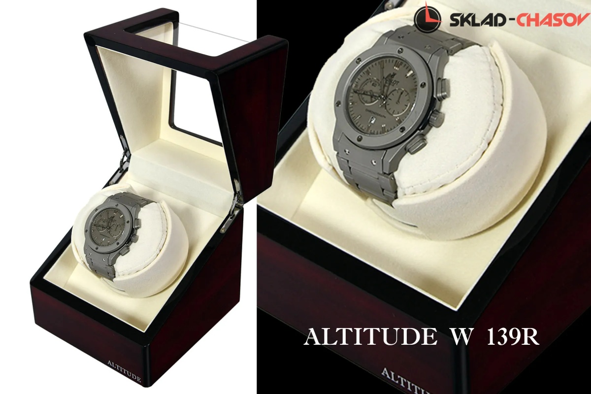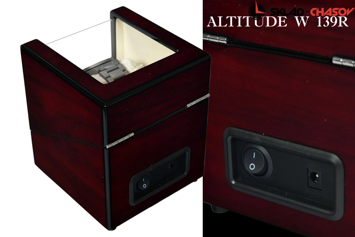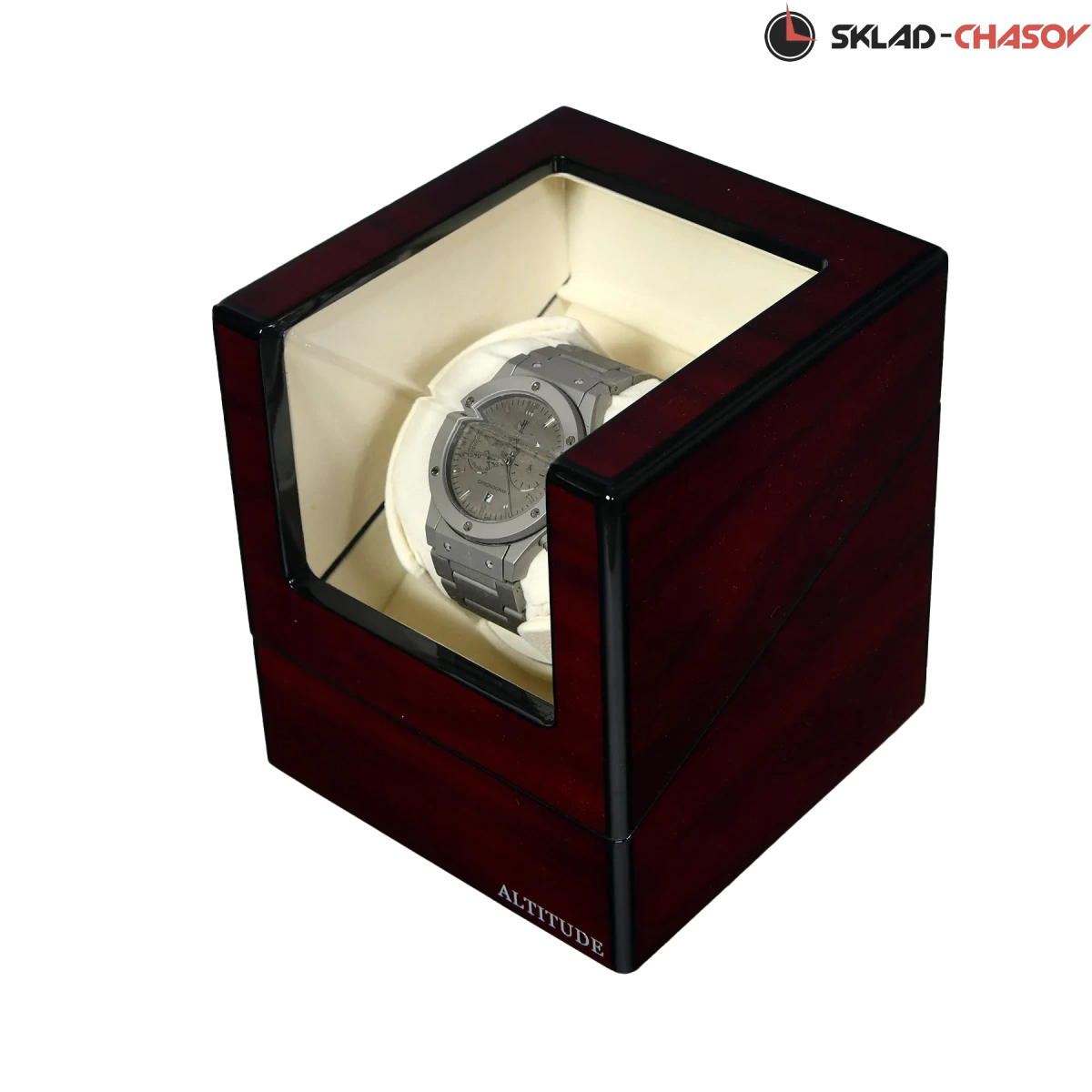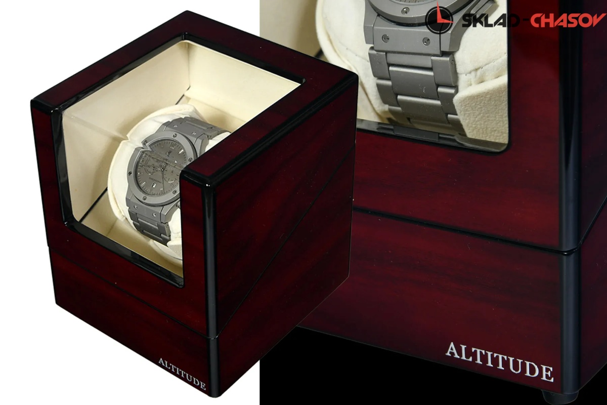 Шкатулка из коллекция ONE от немецкой компании ALTITUDE предназначена для хранения и автоматического завода 1-х часов. Выполнена из ценной экзотической породы дерева «меранти». Внутренние поверхности выстланы светлой тканью. В комплекте удобная мягкая подушечка для Ваших часов. Подъёмная крышечка с стеклом. Шкатулка универсальная, подходит для завода большинства часов. Режим работы включается одной кнопкой, попеременный режим по часовой 2 мин и 6 мин отдых, потом против часовой и 2 мин вращения и 6 мин отдых.