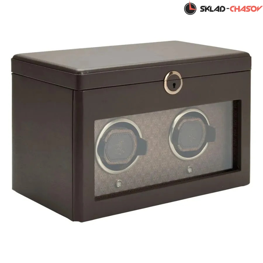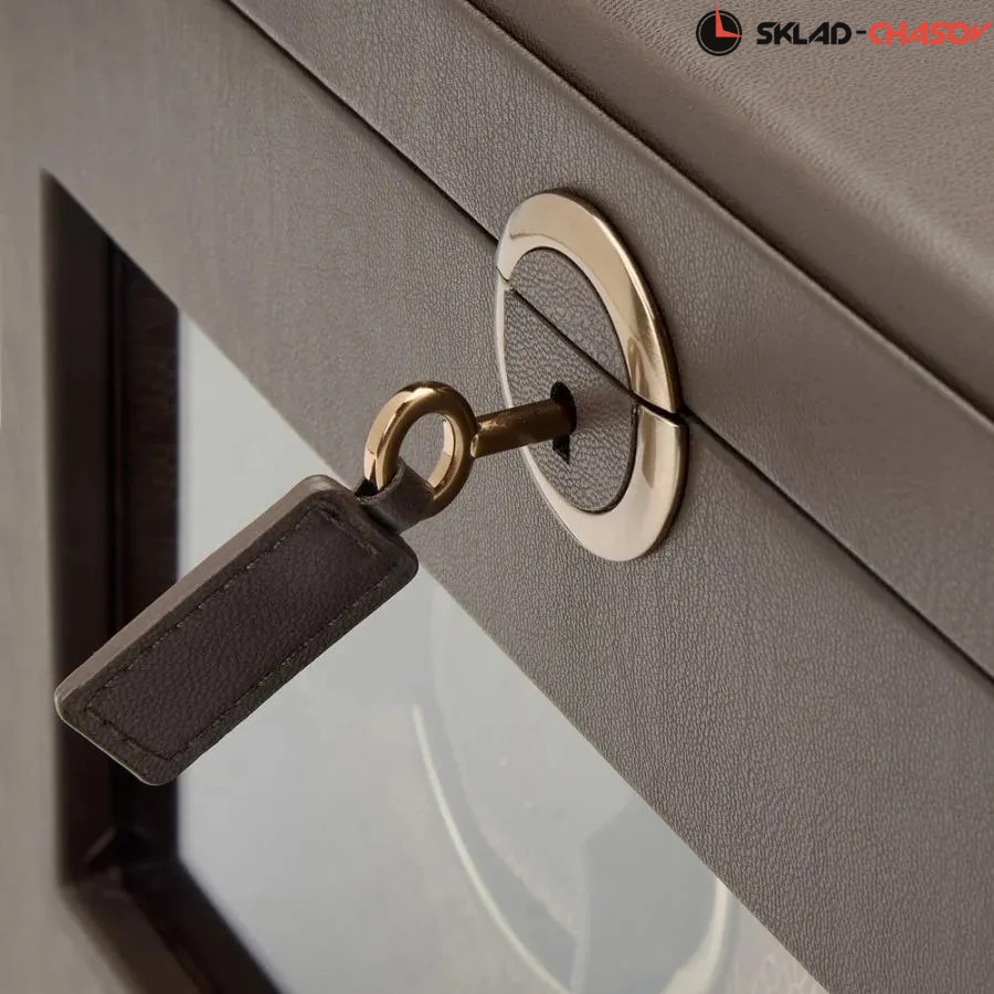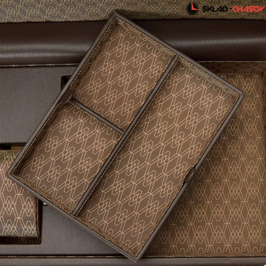 Шкатулка с автоподзаводом Earth Double сочетает в себе инновационный дизайн, элегантность и устойчивый подход к производству. Экстерьер выполнен из мягкой, экологичной яблочной кожи глубокого тёплого оттенка, дополненной матовой металлической фурнитурой в тон. Внутренняя отделка представлена переработанным жаккардовым сатином с фирменным голографическим узором WOLF — всё в едином гармоничном цветовом решении. Два бронзово-оливковых безеля элегантно обрамляют ячейки автоподзавода, визуально повторяя цвет всей композиции. Верхняя крышка открывает доступ к отсеку с тремя подвешенными подушечками для хранения часов и съёмным лотком для украшений, запонок, ключей и других ценных мелочей. Нижняя секция — это две независимые ячейки для подзавода, каждая из которых настраивается индивидуально. Подушки фиксируются внутри роторов с помощью запатентованной технологии WOLF: они подстраиваются под любую длину браслета, не создавая давления на звенья. Совершенно новая дистанционная система управления выводит подзавод часов на новый уровень. Установив на смартфон приложение WOLF App, вы сможете задать количество оборотов в сутки, направление вращения, выбрать задержку запуска или приостановить работу любой ячейки — не прикасаясь к шкатулке. Это революционное решение от английской компании WOLF, воплощённое в уникальной лимитированной серии. Каждая деталь выполнена вручную с вниманием к эстетике, технологиям и экологичности. Модель поставляется в эксклюзивной упаковке, посвящённой 190-летнему юбилею бренда.