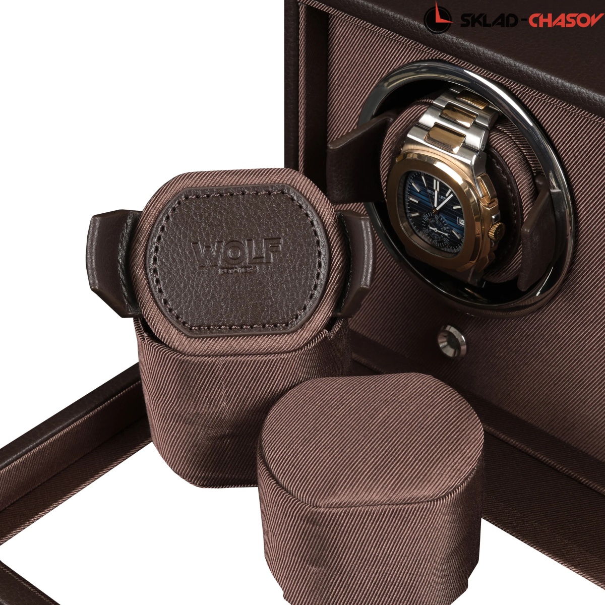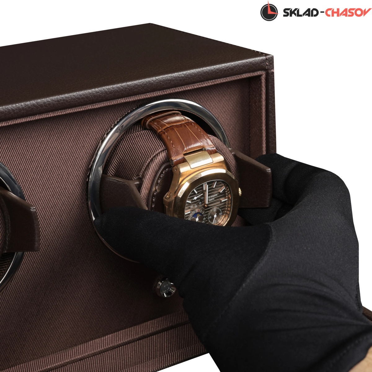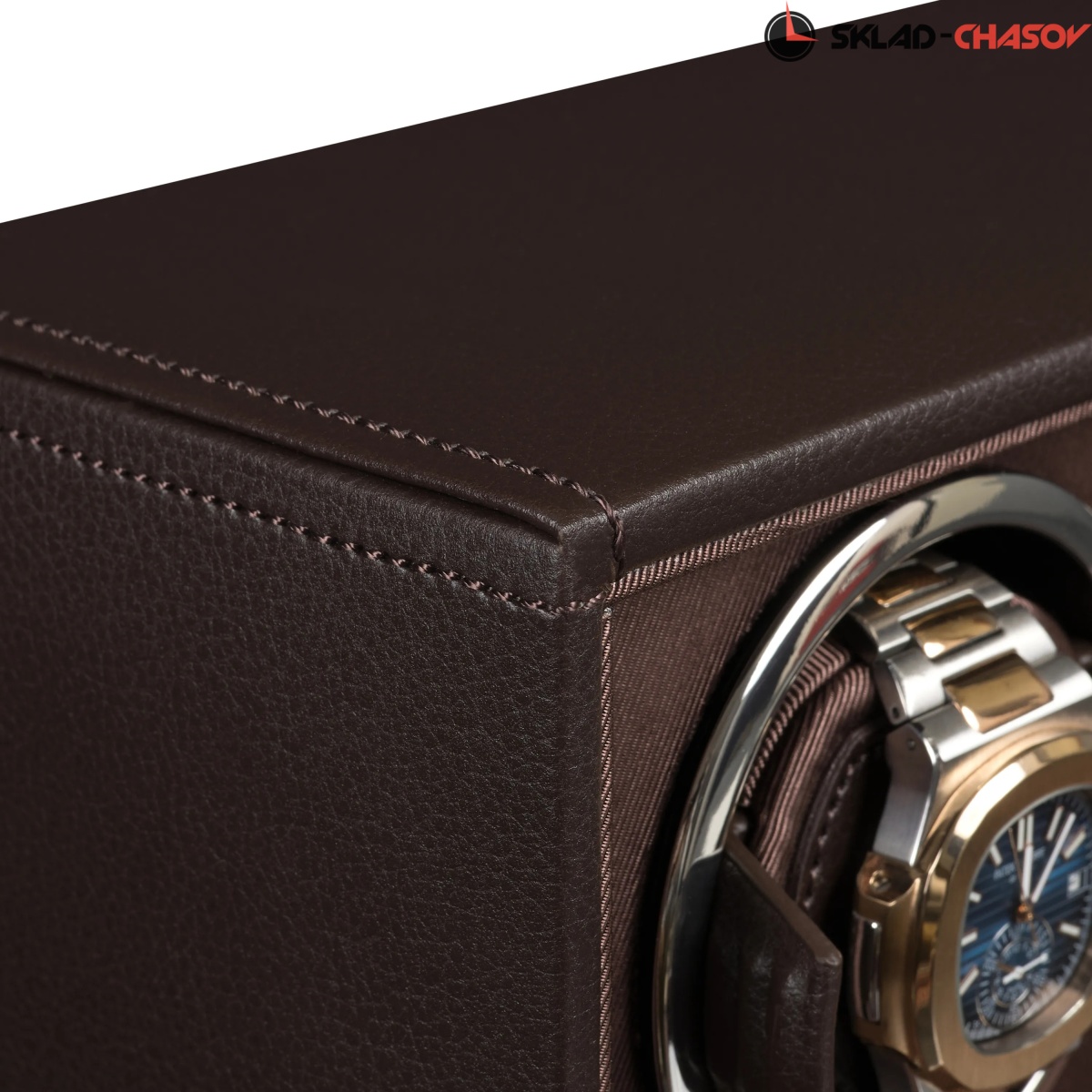 Молодая и современная коллекция виндеров, рожденная премиальным брендом Wolf. Шкатулка создана для автоподзавода ваших часов без особых усилий с вашей стороны. Экстерьер выполнен из мягкой экологичной кожи высшего сорта, плавно переходящий в классический интерьер с использованием необычайно современной ткани. Абсолютно каждый элемент фурнитуры выполнен в одном цветовом решении. При открытии дверцы открывается возможность для установки 2-х часов для их автоподзавода. Продуманный комплект разноразмерных подушек подойдет для установки часов любого диаметра с любой длиной ремешка или браслета. Простота и удобство - лозунг данной модели виндера. Просто включите шкатулкой благодаря одной кнопке на задней стороне, и ваши часы будут подзаводиться по 900 оборотов в сутки в каждую сторону. Запатентованная технология автоподзавода WOLF предусматривает спящий режим для ваших наручных часов. Для максимальной универсальности использования, шкатулка может работать не только от сети, но и от батареек типа АА. Важно отметить, что вся продукция премиального бренда Wolf изготавливается вручную с использованием экологически чистых материалов.