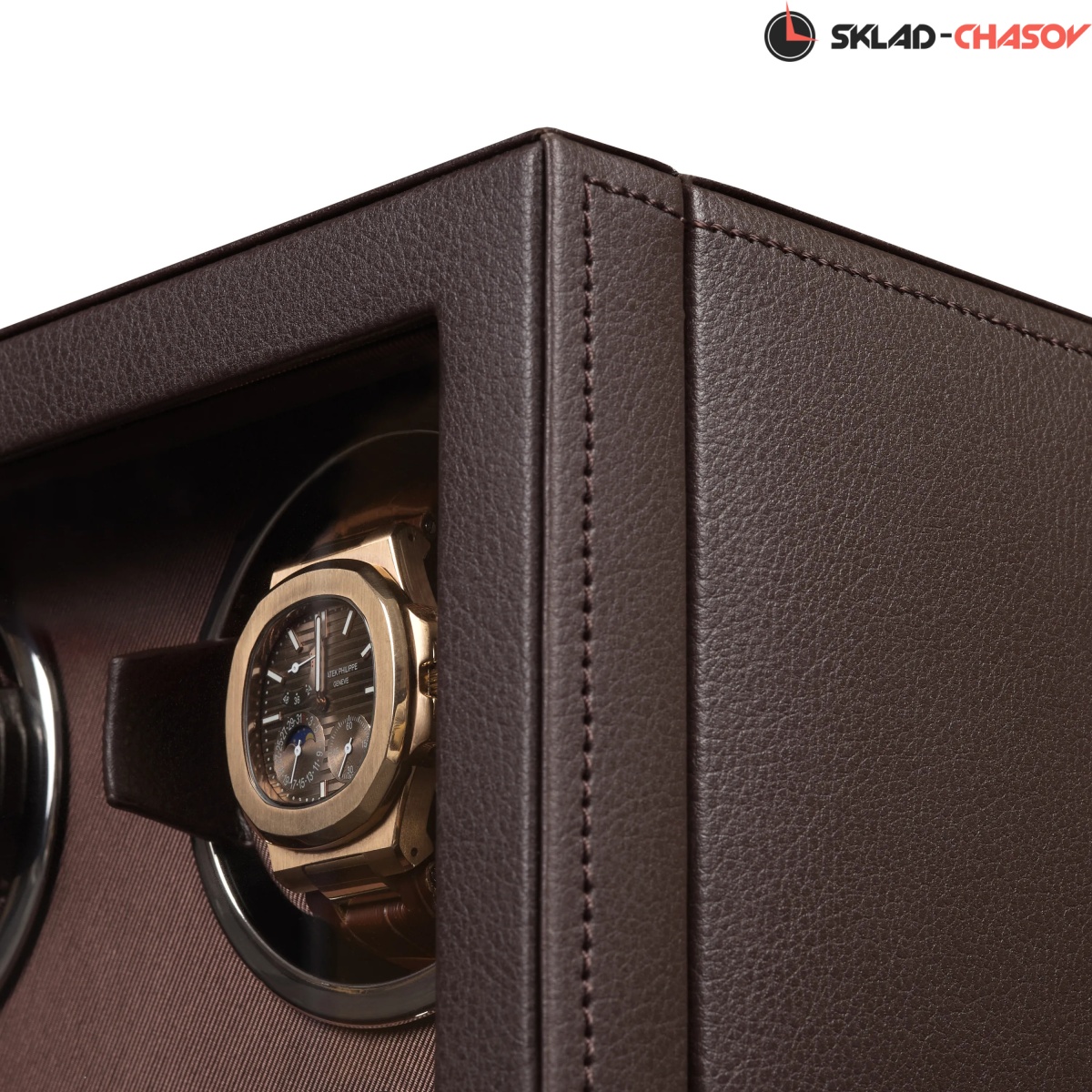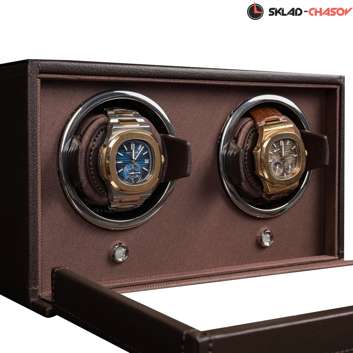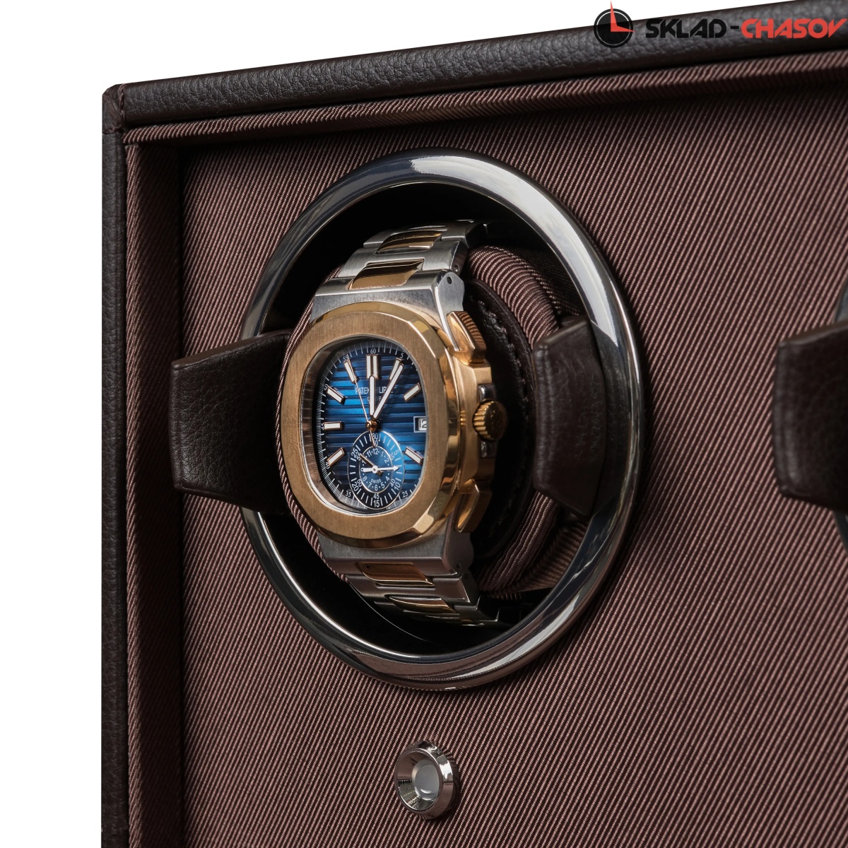 Молодая и современная коллекция виндеров, рожденная премиальным брендом Wolf. Шкатулка создана для автоподзавода ваших часов без особых усилий с вашей стороны. Экстерьер выполнен из мягкой экологичной кожи высшего сорта, плавно переходящий в классический интерьер с использованием необычайно современной ткани. Абсолютно каждый элемент фурнитуры выполнен в одном цветовом решении. При открытии дверцы открывается возможность для установки 2-х часов для их автоподзавода. Продуманный комплект разноразмерных подушек подойдет для установки часов любого диаметра с любой длиной ремешка или браслета. Простота и удобство - лозунг данной модели виндера. Просто включите шкатулкой благодаря одной кнопке на задней стороне, и ваши часы будут подзаводиться по 900 оборотов в сутки в каждую сторону. Запатентованная технология автоподзавода WOLF предусматривает спящий режим для ваших наручных часов. Для максимальной универсальности использования, шкатулка может работать не только от сети, но и от батареек типа АА. Важно отметить, что вся продукция премиального бренда Wolf изготавливается вручную с использованием экологически чистых материалов.
