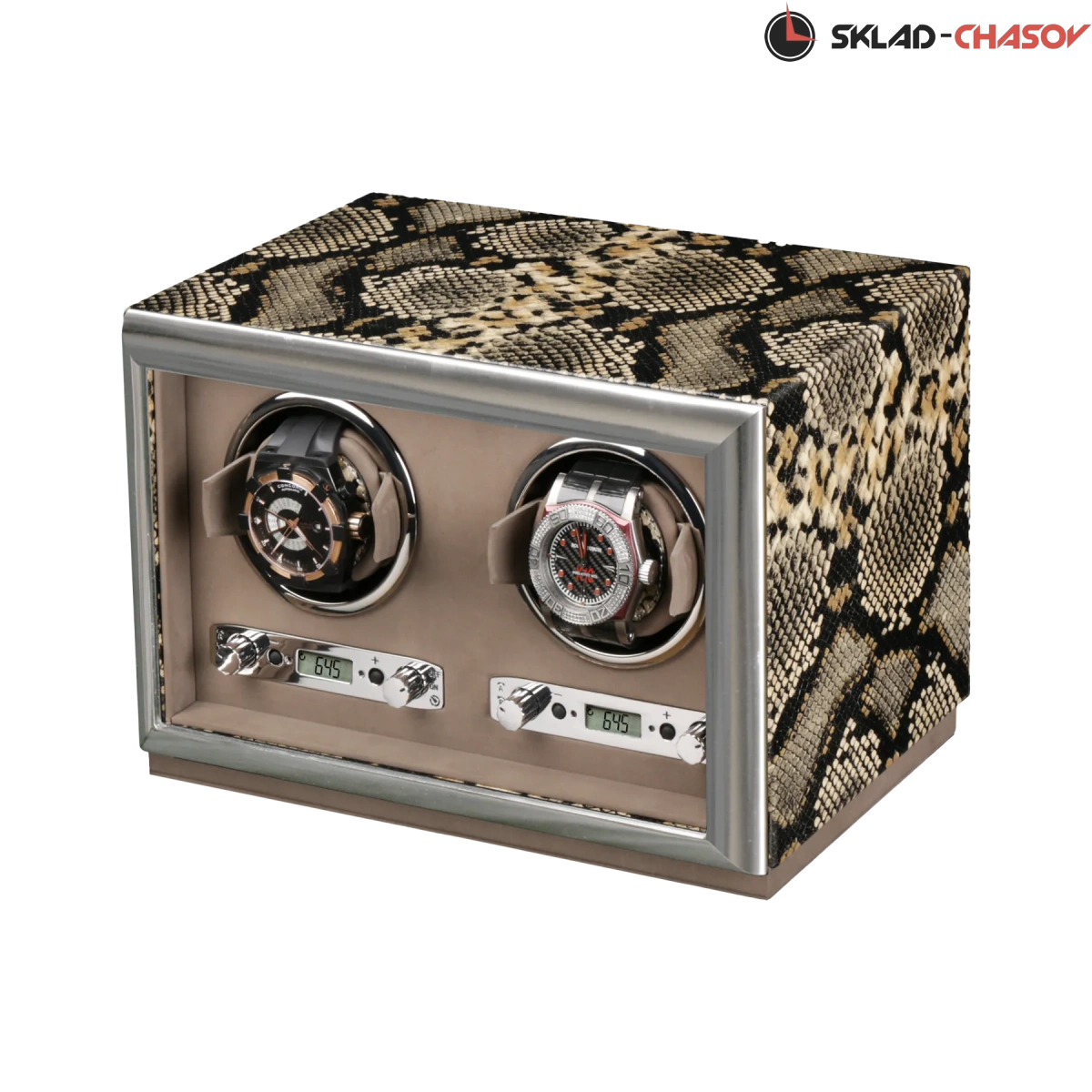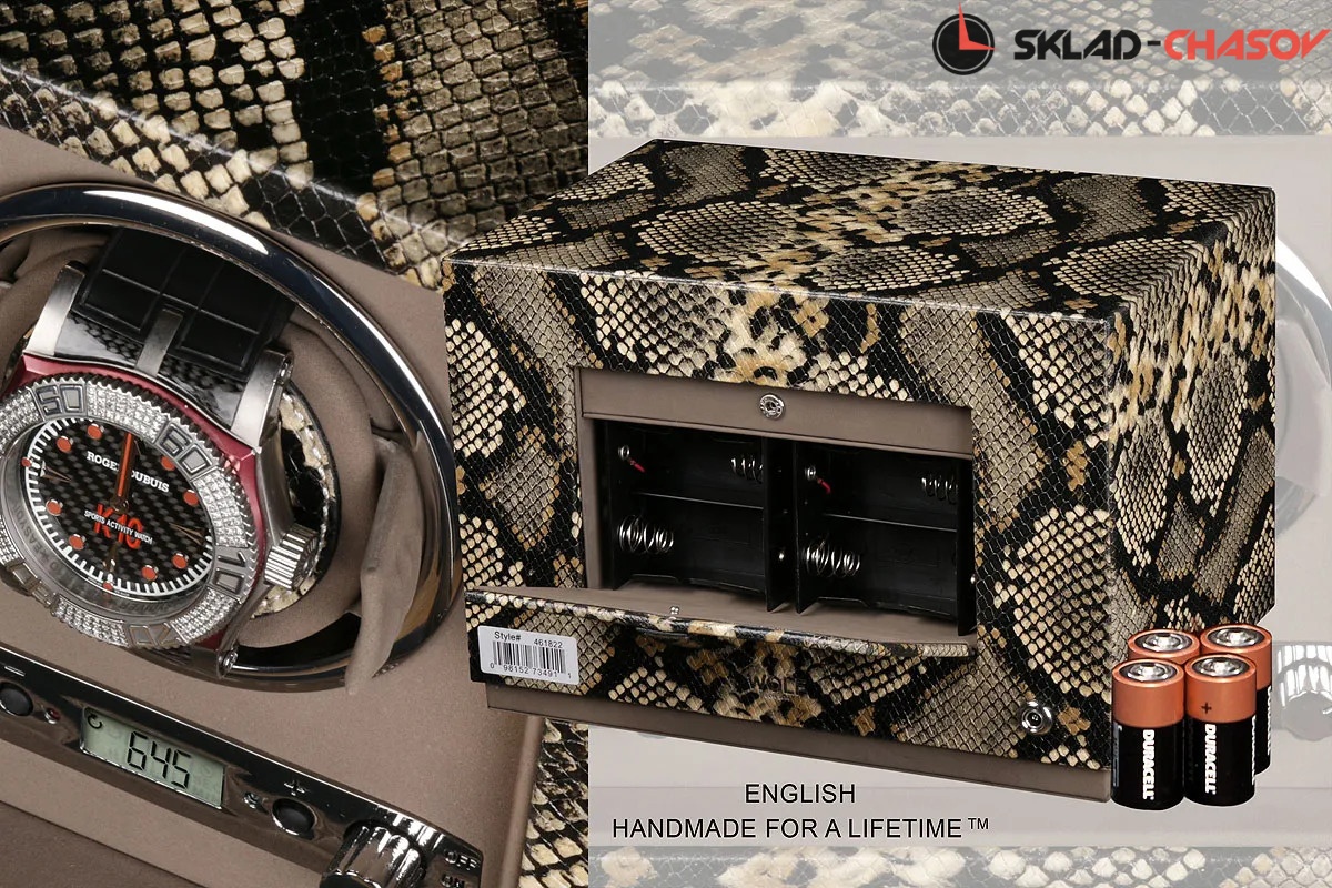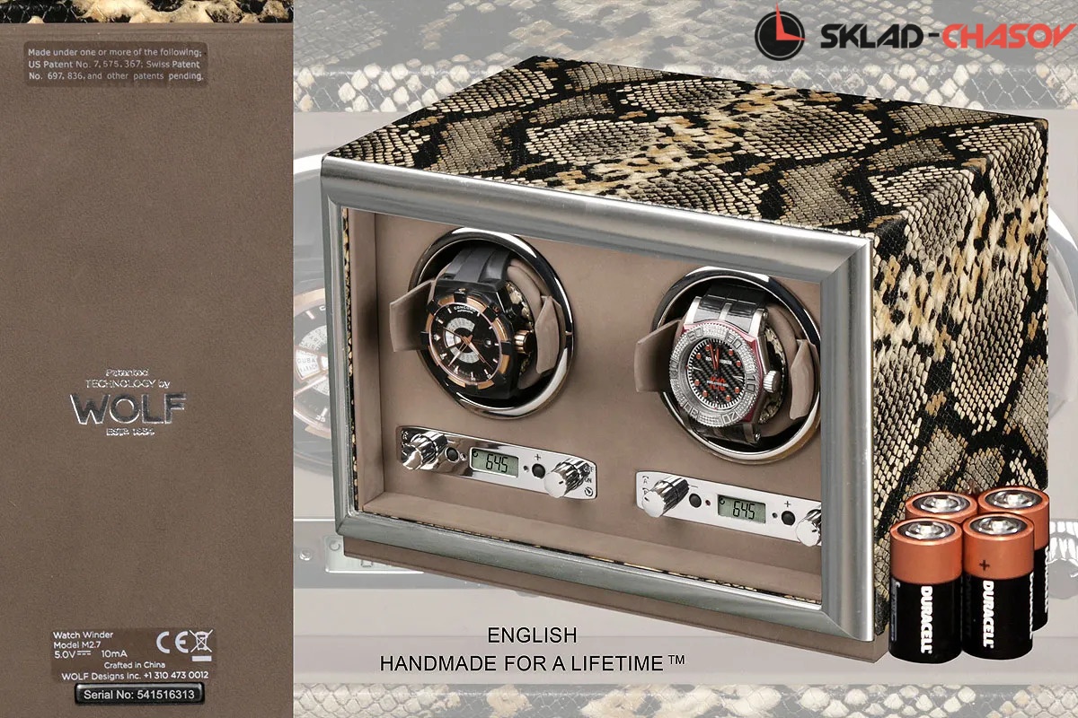 Шкатулка от известного английского и старинного бренда "Wolf design" не оставит равнодушным презентабельных и успешных людей, так как выполнена в ручную лучшими мастерами. Корпус из кожи, внутри отделка бархатом. Открытый доступ к вашим часам, удобный современный держатель для ваших любимых часов с фиксацией. Каждая шкатулка со своим серийным номером. Работает от сети и от 4 батареек класса "D". Регулируется направления вращения попеременно при кол-ве оборотов в сутки 900. Отложенный старт механизма 10 секунд. Гарантия 18 мес. Фирменная подарочная чёрная коробка. Удобные фирменные держатели для наручных часов с логотипом WOLF. Корпус из кожи коричневого цвета. Логотип WOLF на лицевой стороне в леопардовом тоне.