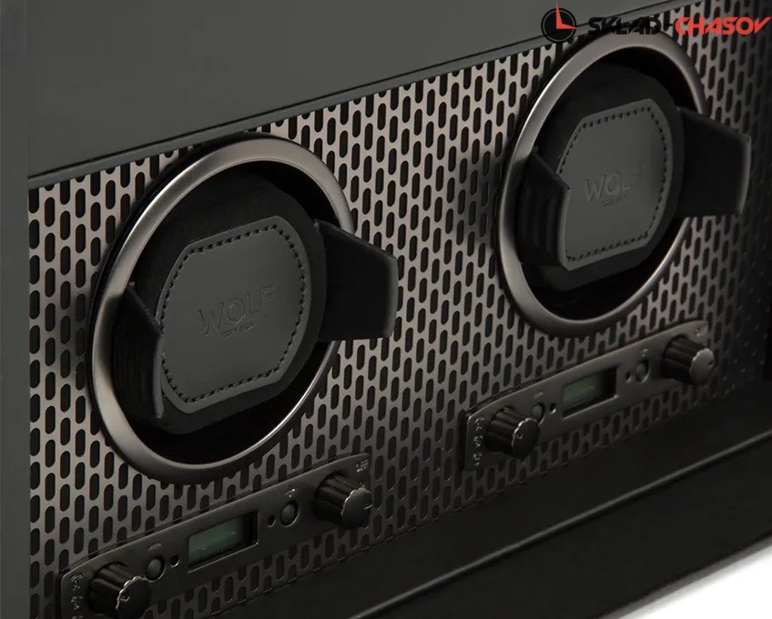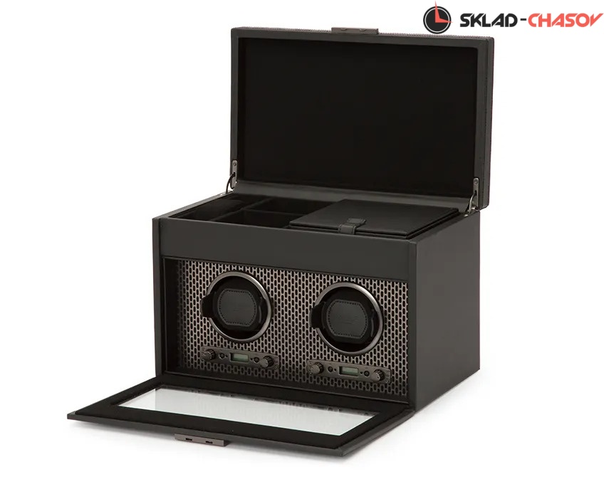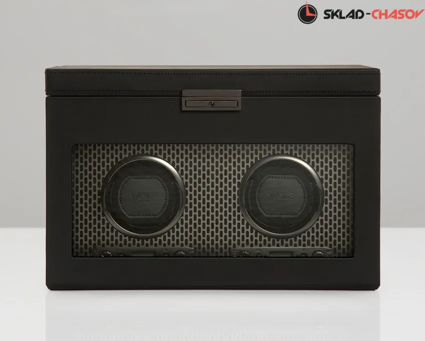 Шкатулка от известного английского и старинного бренда "Wolf" не оставит равнодушным презентабельных и успешных людей, так как выполнена в ручную лучшими мастерами. Корпус с металлическим покрытием из черного порошка, внутри отделка замша. Подзавод двух часов любой сложности, 1 хранилище часов с повышенной манжетой, 2 средних отсека, чехол для путешествий и 2 модуля обмоток, современный держатель для ваших любимых часов с фиксацией. Внешняя дверца с возможностью закрытия на ключик. Каждая шкатулка со своим серийным номером. Работает от сети и от 2 батареек класса "D". Регулируется 3 направления вращения при кол-ве оборотов от 300 до 1200 в сутки. Возможность фиксации на ключик. Отложенный старт механизма 10 секунд. Гарантия 1 год. Фирменная подарочная чёрная коробка. Каталог товаров Wolf