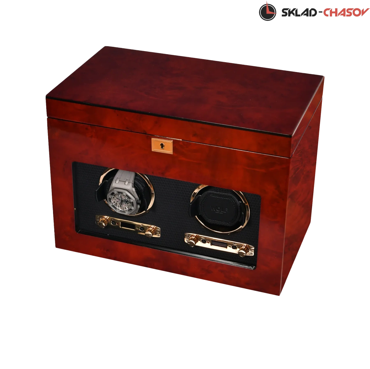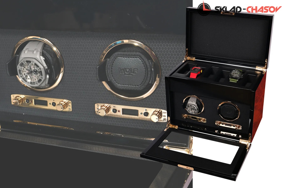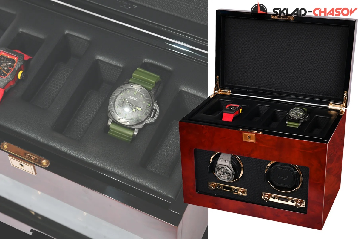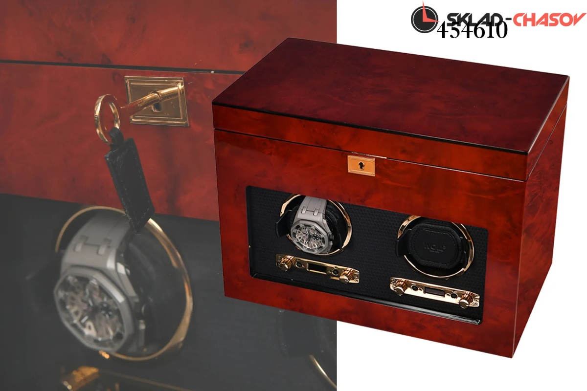 Шкатулки для подзавода 2 часов с дополнительным отсеком для хранения выполнена из коричневого дерева ценных пород ,внутри выстлана черной кожей.,закрывается на ключик. Возможны все регулировки направления вращения и количества оборотов в сутки.