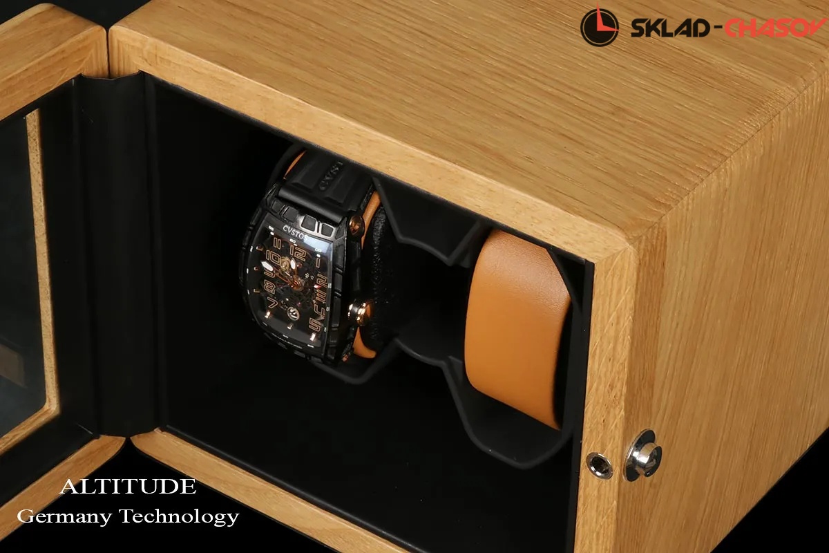 Модель chrono2.Шкатулочка выполнена в светлом дереве клён, внутри выстлана чёрной микрофиброй, натуральное стекло, 1стакан для двух часов ,светодиодная подстветка, сверху имеется ящик для доп хранения, его можно вынимать. Режимы работы 4 варианта. Размеры 18/17/17и вес 1.4 кг. Гарантия 12 мес.
