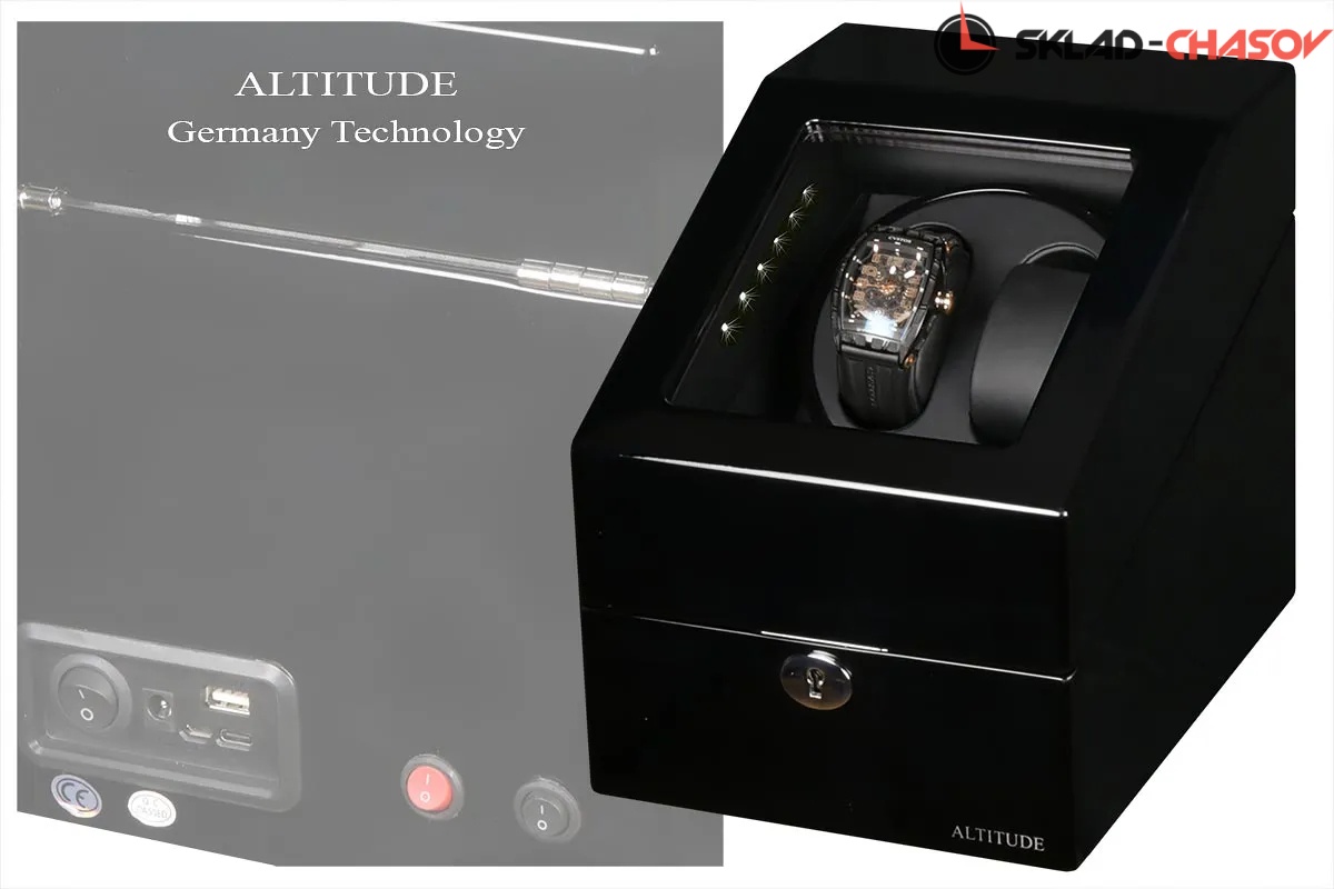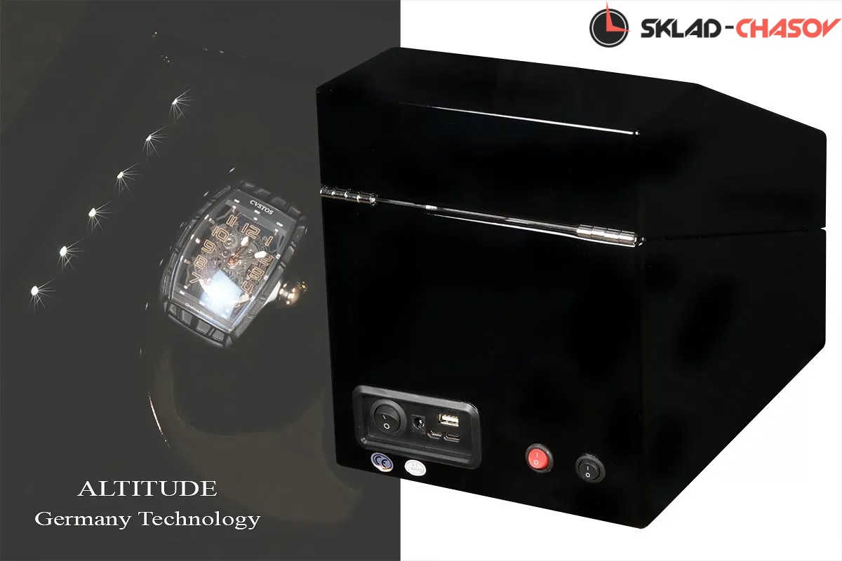 Новая , лаконичная и бюджетная серия . Арт.c1704 bb.Модель chrono2b.Шкатулочка выполнена в чёрном дереве , внутри выстлана чёрной кожей,стекло, 1стакан для двух часов,светодиодная подстветка,внизу имеется ящик для доп хранения.Режимы работы 4 варианта.