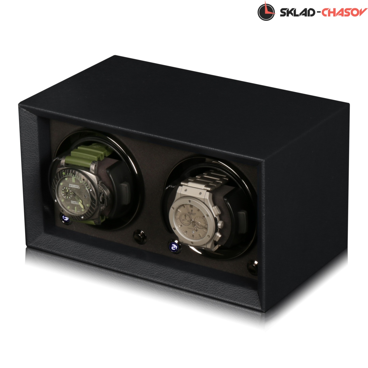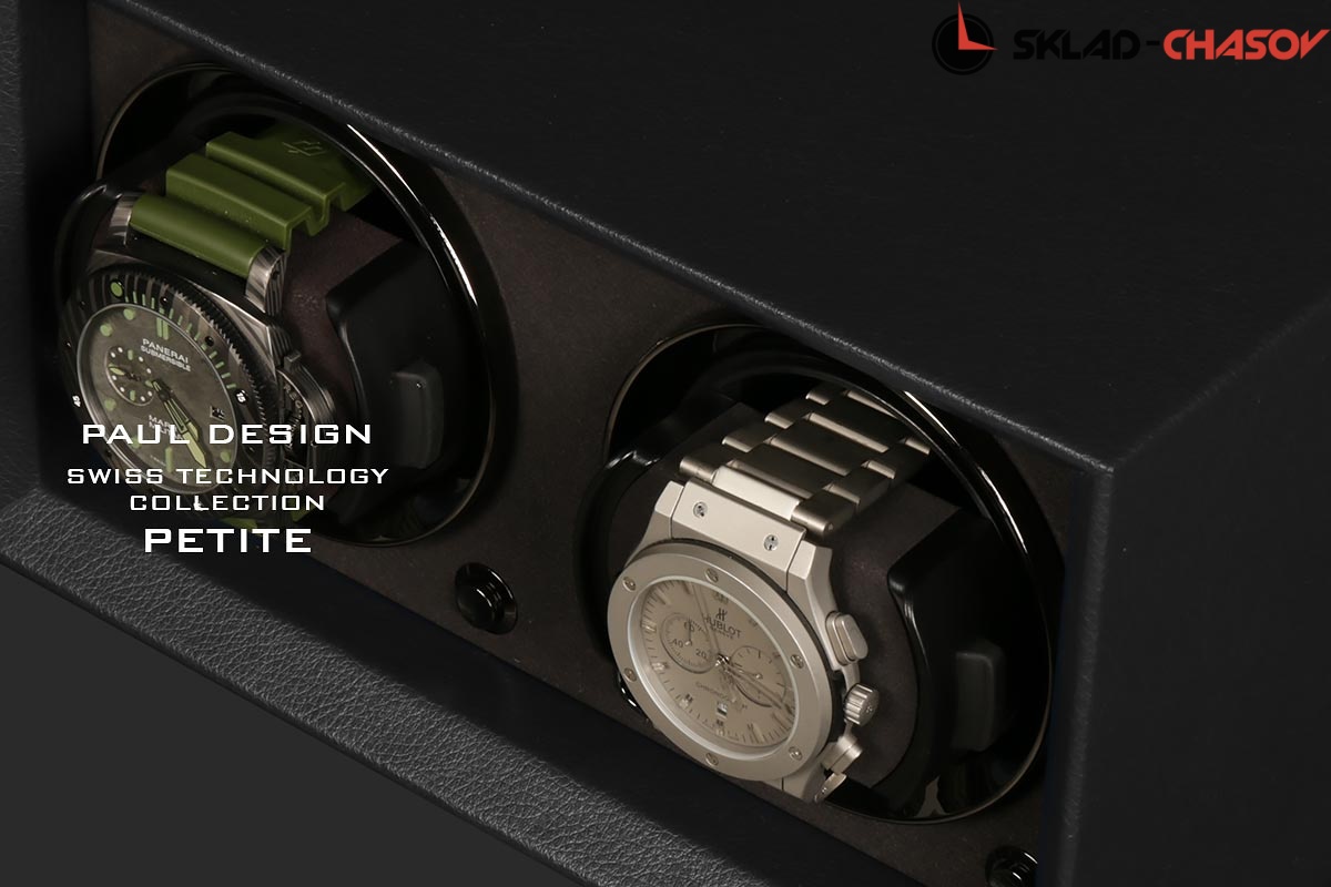 Новая модель создана с красивым внешнем дизайном и удобством эксплуатации! Открытый корпус обшит чёрной кожей, внутри обшито чёрной микрофиброй, немецкая чёрная фурнитура, удобные телескопические держатели для часов, позволяет подзаводить любые часы — любой сложности, работа от сети 220 в и встроенного блока батареек класса С.