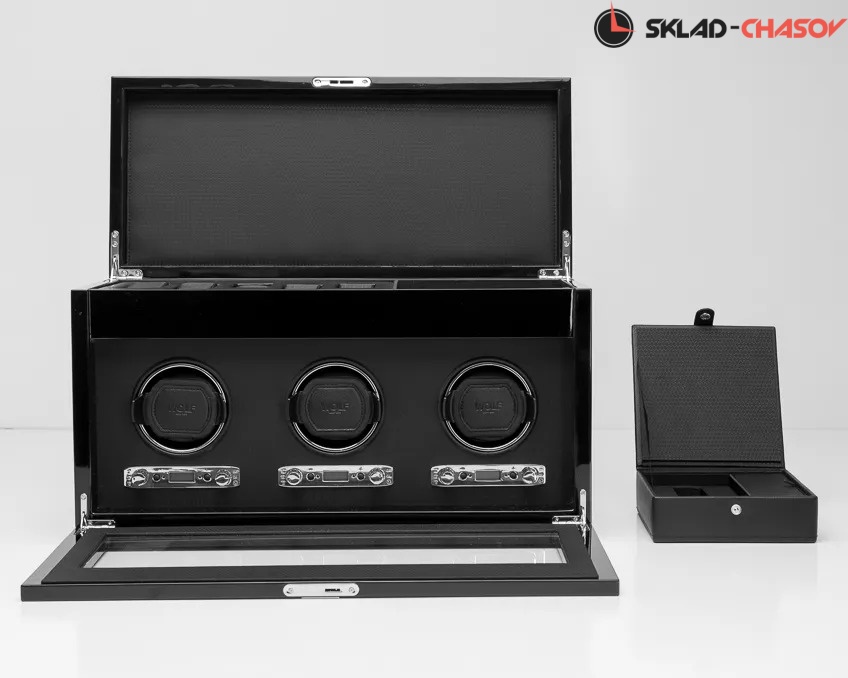 Шкатулка от известного английского и старинного бренда "Wolf design" не оставит равнодушным презентабельных и успешных людей, так как выполнена в ручную лучшими мастерами. Корпус из натурального дерева, внутри отделка изностойкий шелк. Подзавод трех часов любой сложности, включает в себя 5-часовое хранилище часов, футляр для путешествий, деревянную рамку, черную текстурированную шелковую подкладку, запирающую стеклянную крышку, черный ящик для фортепиано, ЖК-дисплей с подсветкой. Современный держатель для ваших любимых часов с фиксацией. Внешняя дверца с возможностью закрытия на ключик. Каждая шкатулка со своим серийным номером. Работает от сети и от 2 батареек класса "D". Регулируется 3 направления вращения при кол-ве оборотов от 300 до 1200 в сутки. Возможность фиксации на ключик. Отложенный старт механизма 10 секунд. Гарантия 1 год. Фирменная подарочная чёрная коробка.