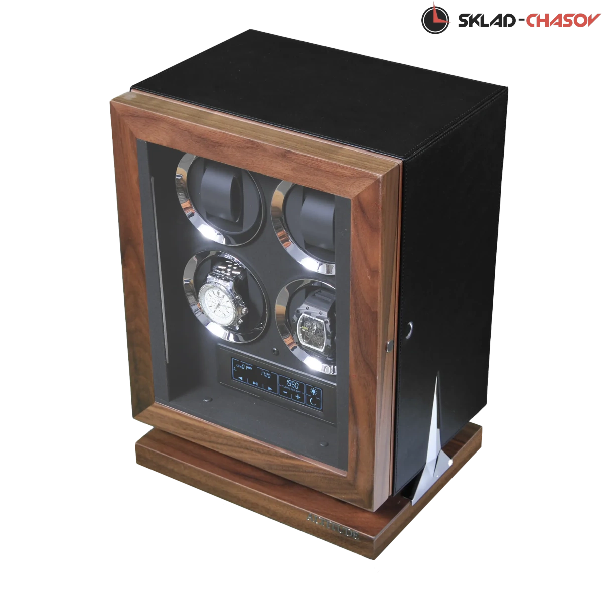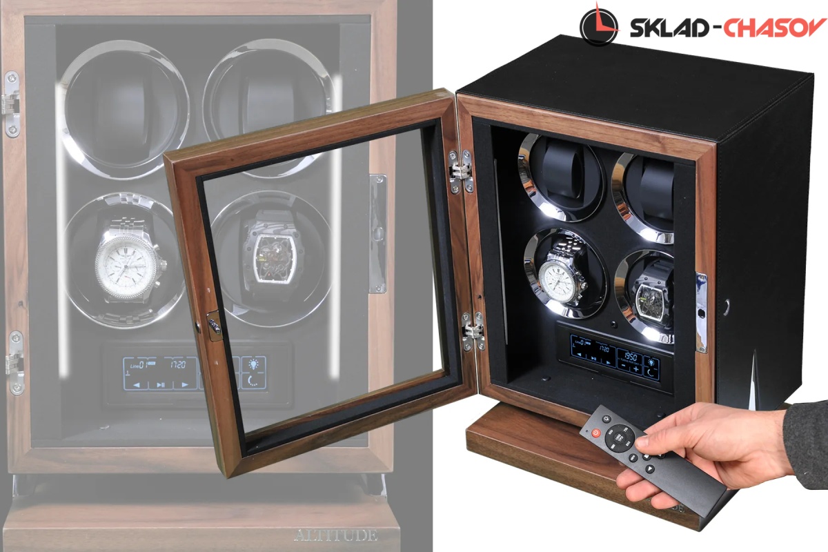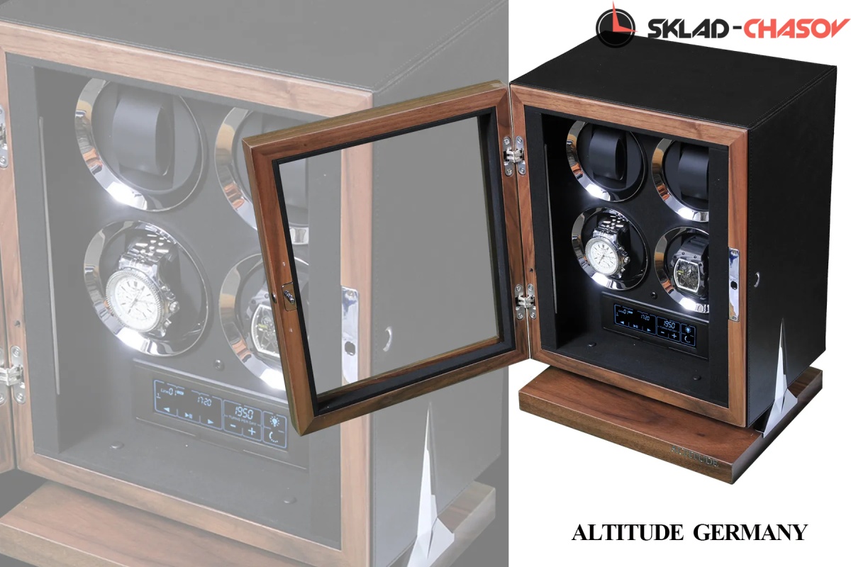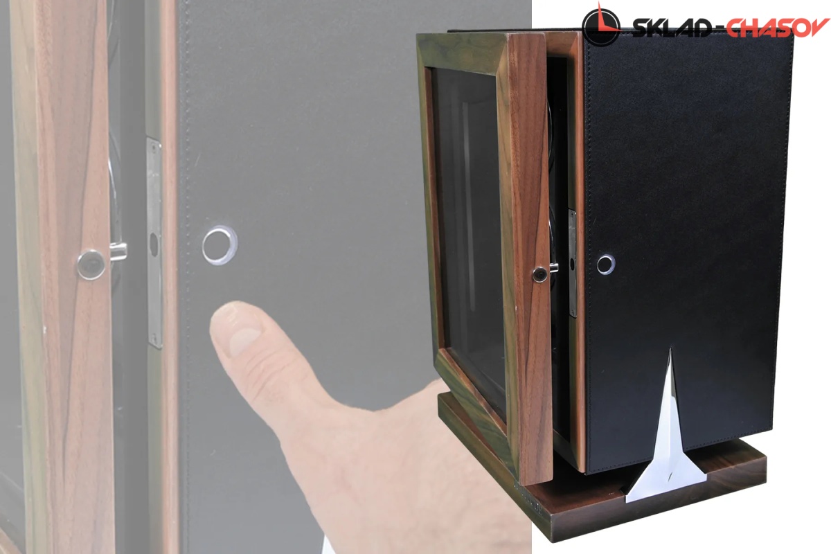 Новая серия “Hide”. Модель “Hide4”. Инновационная новинка с модным, стильным дизайном от ведущих мастеров. Исключительное дерево в сочетании с кожей, при этом удобство использования впечатляет. Отпечаток пальца можно программировать максимум до 5 вариантов. Удобные телескопические держатели, внутренняя диодная подсветка, вставки из хромированного металла, все возможные отдельные регулировки для любых часов — любой сложности. Фирменная Гарантия от производителя 18 месяцев.