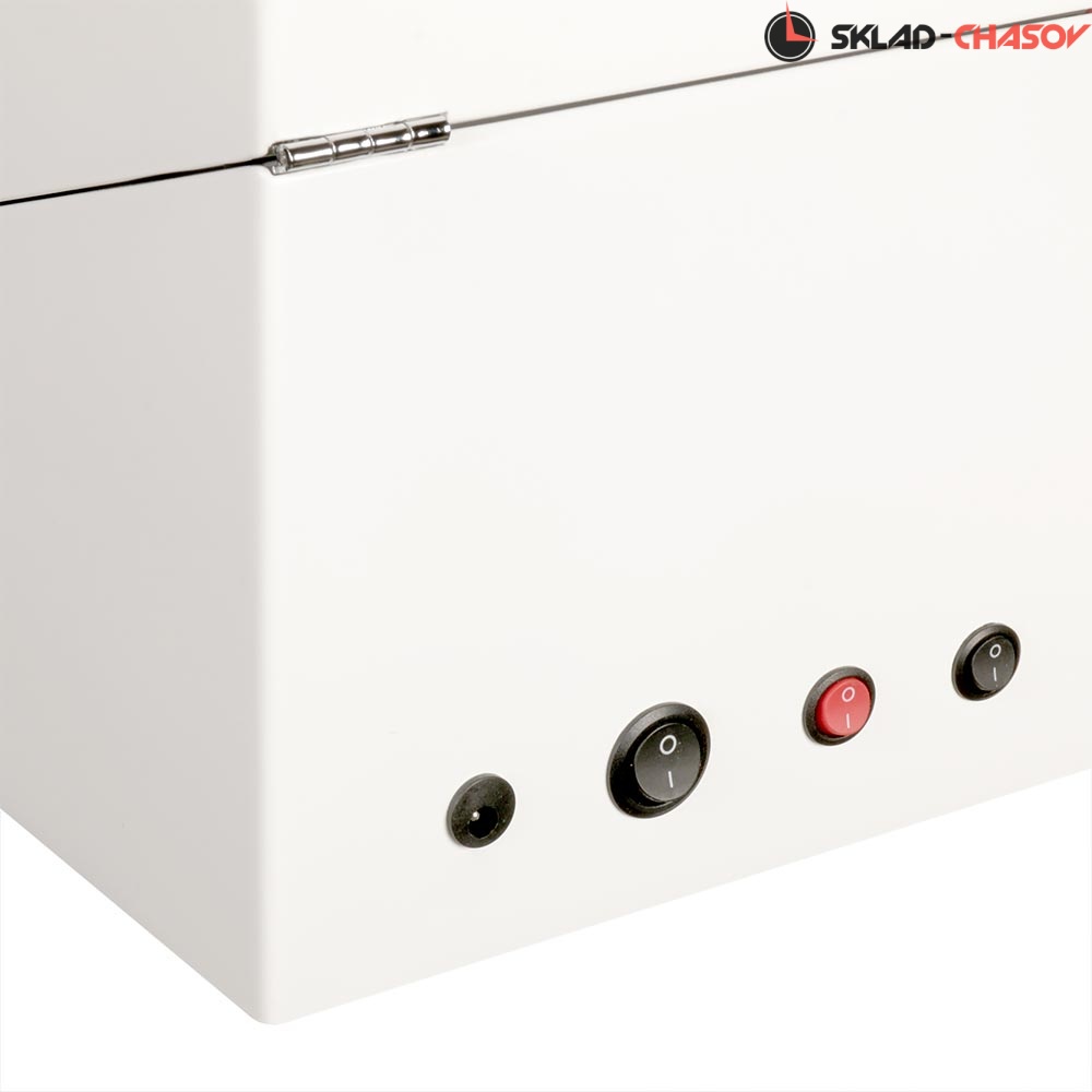 Вам остается лишь подключить шкатулку к сети и наслаждаться подзаводом любимых часов. Для абсолютного универсального использования в шкатулке предусмотрена работа от батареек типа D (устанавливаются в нижней части).
