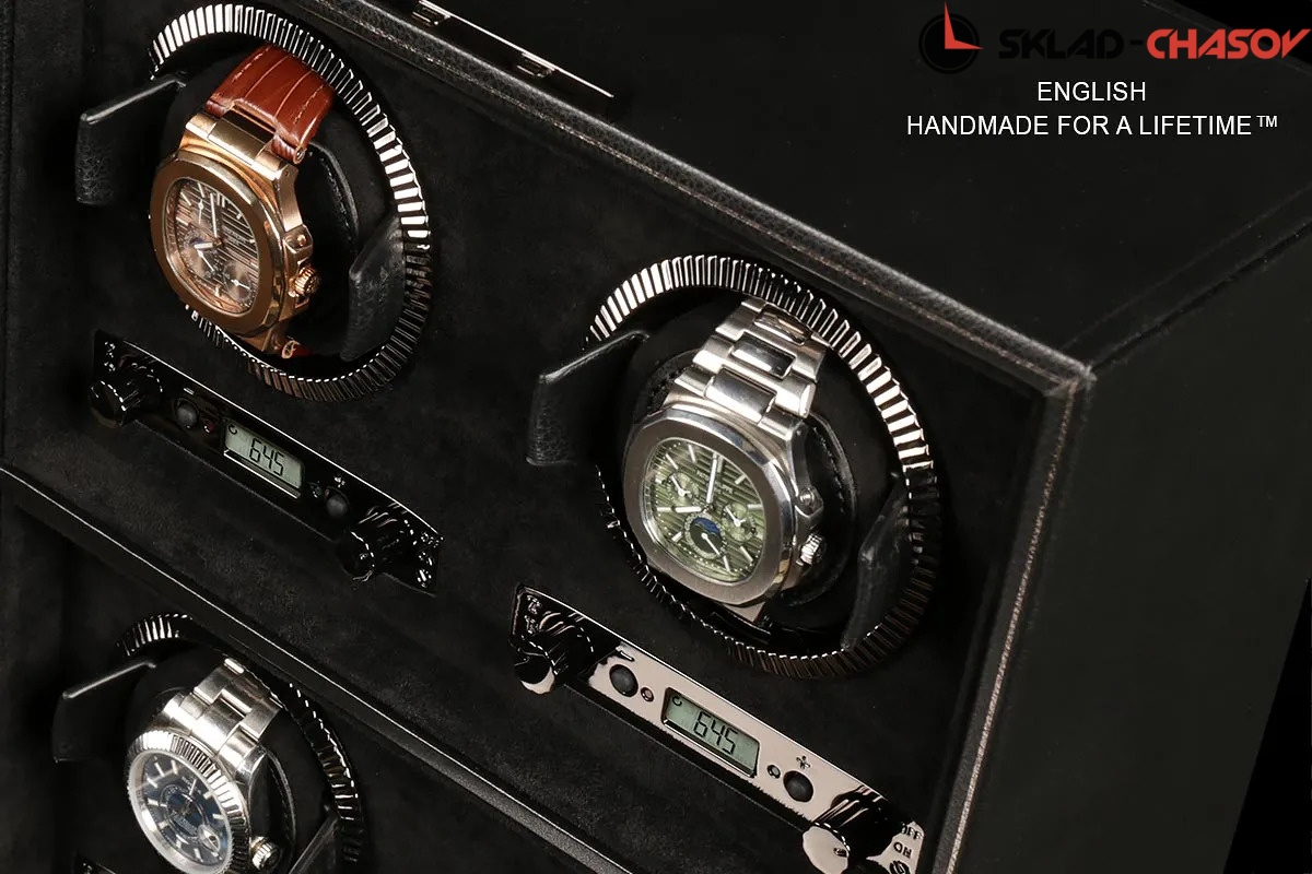 Кольца вокруг часов повторяют безель часов Rolex. Независимый подзавод 4 часов с удобной телескопической мягкой подушечкой, фиксируется с вашими часами в стакане, а также кожаный чехол для перевозки ваших драгоценностей. Фирменная гарантия от Тайммувер-сервиса 1 год (единственного - аккредитованного сервиса в России, более 17 лет).