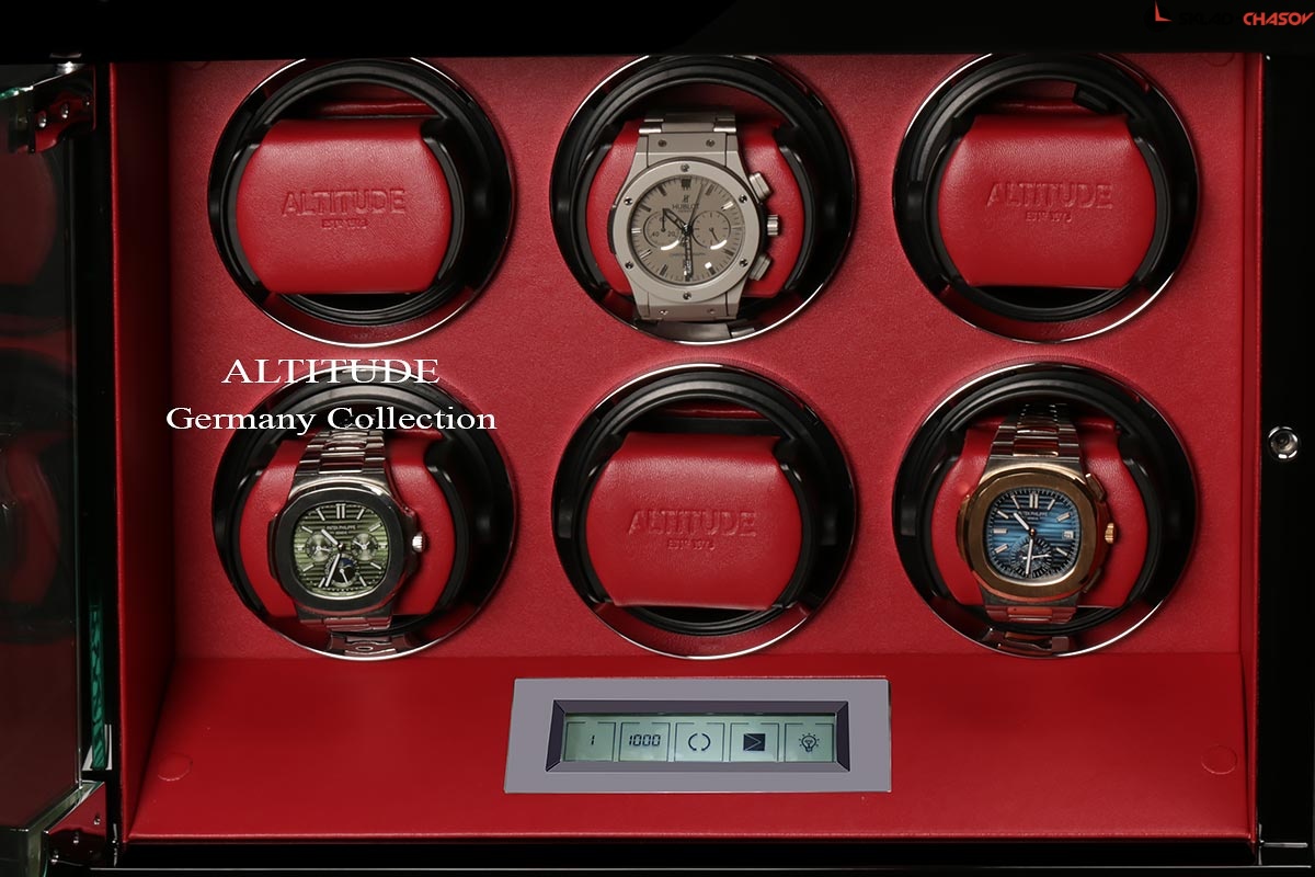 Основное предназначение шкатулки — автоматических независимый подзавод 6-ти часов любой сложности. Выбор программ осуществляется при помощи сенсорного дисплея последнего поколения.