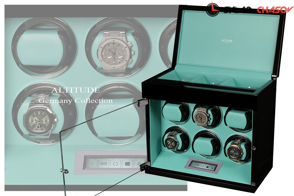 Основное предназначение шкатулки — автоматических независимый подзавод 6-ти часов любой сложности. Выбор программ осуществляется при помощи сенсорного дисплея последнего поколения.