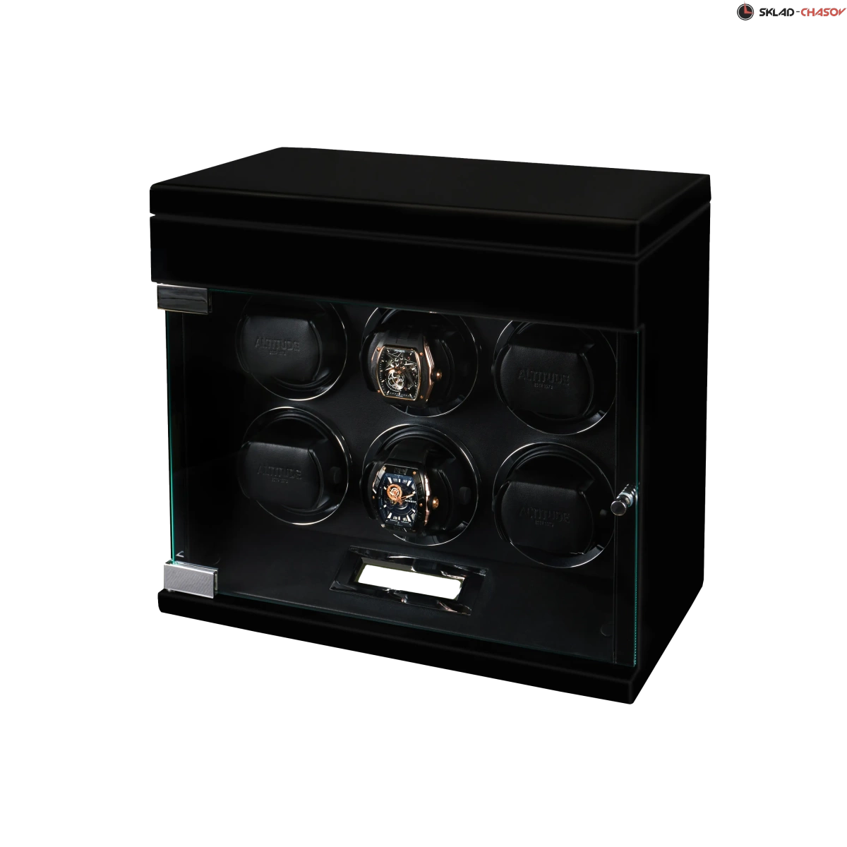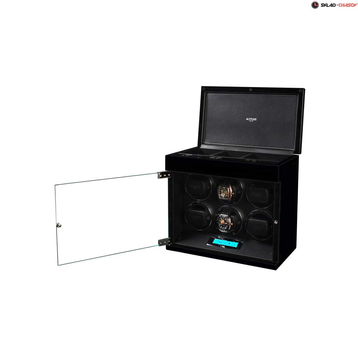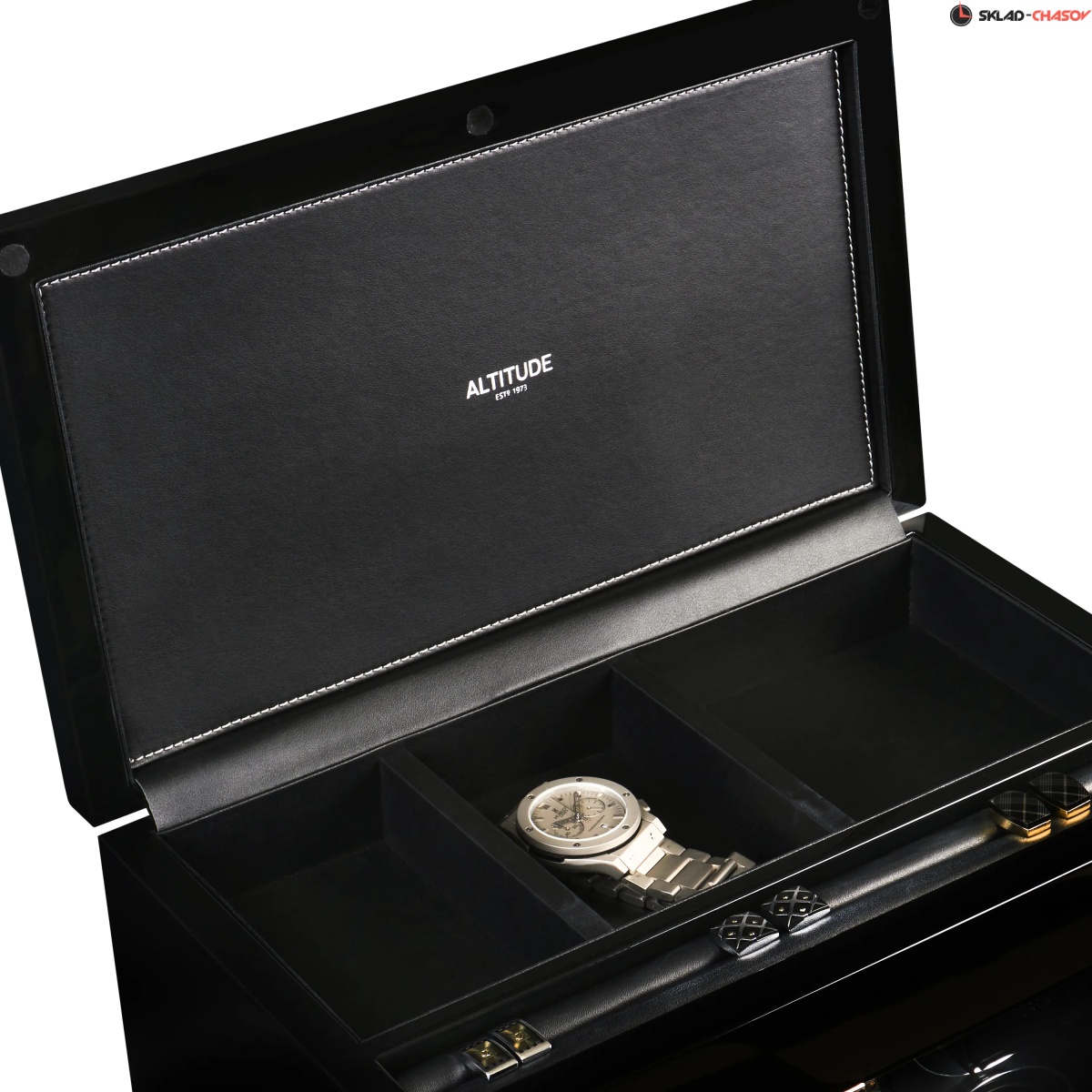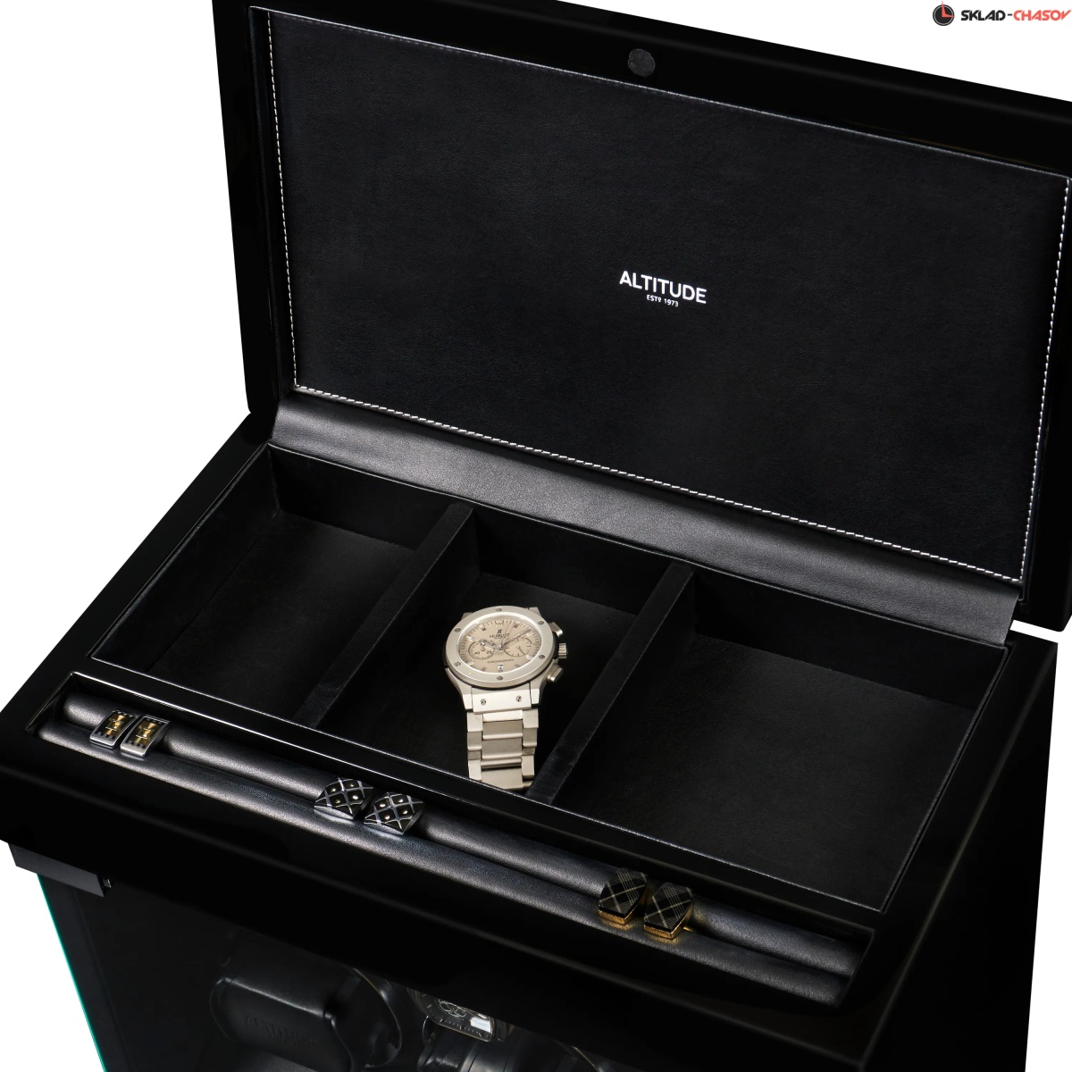 Немецкий производитель ALTITUDE представляет коллекцию — «Tradition», не оставляющую никого равнодушными. Шкатулки нового поколения «Tradition» выгодно выделяются за счет важных преимуществ: 1. Самые удобные телескопические держатели, идеально подходящие для любых наручных часов, вне зависимости от размеров и форм; 2. Надежная и простая фиксация держателей: вам не придется попадать в заданное отверстие, держатель зафиксируется в любом положении; 3. Функция «автостоп» — забудьте о проблеме вращения часов, при открытие дверцы: ротор автоматически остановится и включится повторно после закрытия. 4. Новые, абсолютно бесшумные моторы. Теперь даже при открытой дверце вы не услышите звук работающего мотора, подзаводящий ваши часы. Шкатулка изготавливается из благородного черного дерева "венге", стекла и полированного металла. Деревянные элементы покрыты множественными слоями рояльного лака. Интерьер выполнен из эко-кожи черного цвета. В верхней части расположено дополнительное отделение, которое можно использовать для обычного хранения наручных часов небольшого размера и ювелирных украшений. Для удобства использования шкатулки в темное время суток, есть светодиодная подсветка. Основное предназначение шкатулки — автоматических независимый подзавод 6-ти часов любой сложности. Выбор программ осуществляется при помощи сенсорного дисплея последнего поколения. Питание от сети 220 вольт. В комплекте адаптер, салфетка, держатели для часов. Инструкция на русском языке. Упакована в фирменную белую картонную коробку с ручкой. Важное преимущество коллекции «Tradition» — самые удобные телескопические держатели и бесшумная работа.