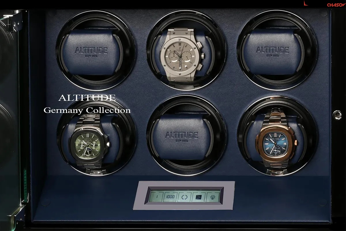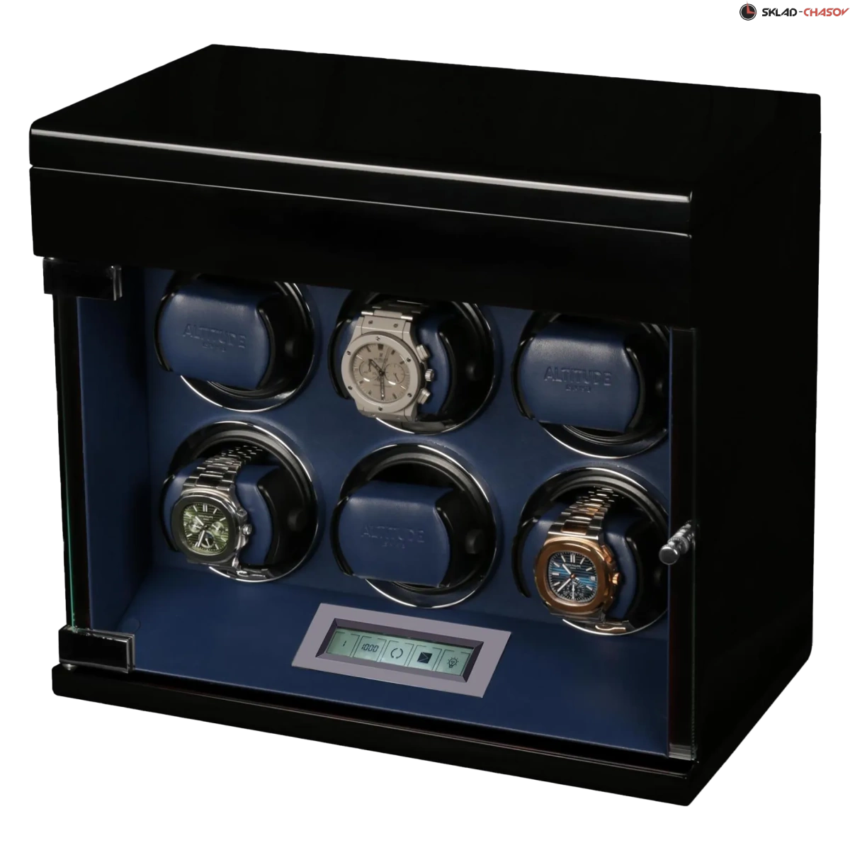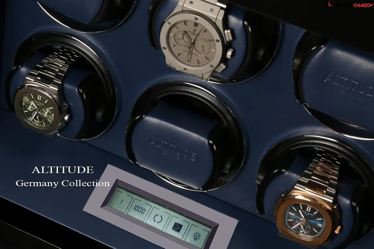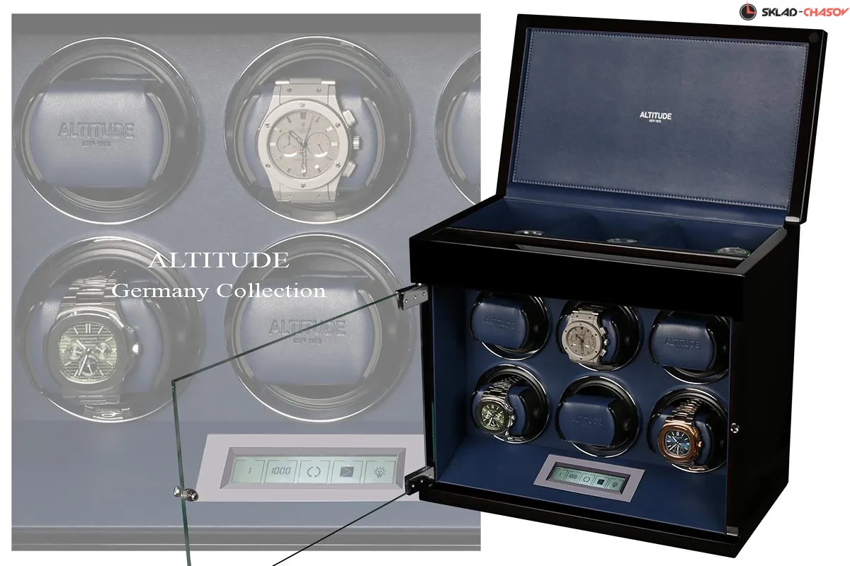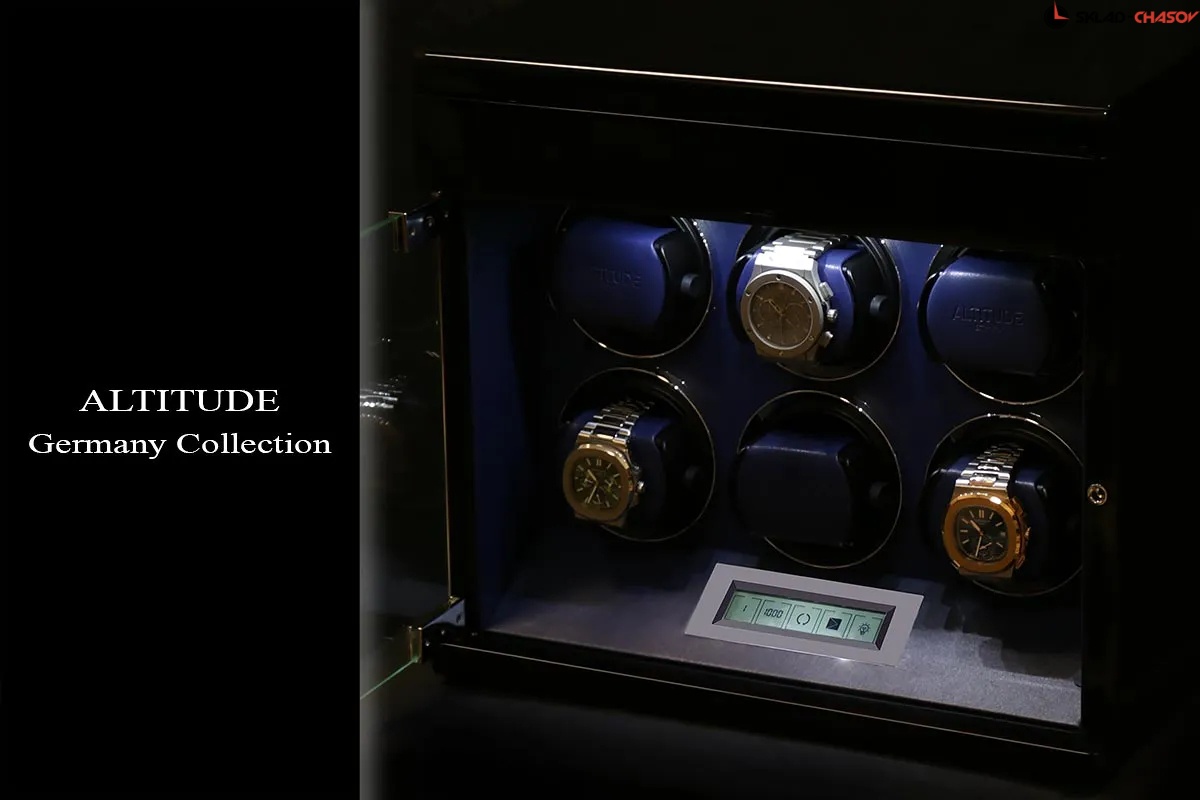 Немецкий производитель ALTITUDE представляет коллекцию 2020 года — «Tradition», не оставляющую никого равнодушными. Шкатулки нового поколения «Tradition» выгодно выделяются за счет важных преимуществ: 1. Самые удобные телескопические держатели, идеально подходящие для любых наручных часов, вне зависимости от размеров и форм; 2. Надежная и простая фиксация держателей: вам не придется попадать в заданное отверстие, держатель зафиксируется в любом положении; 3. Функция «автостоп» — забудьте о проблеме вращения часов, при открытие дверцы: ротор автоматически остановится и включится повторно после закрытия. 4. Новые, абсолютно бесшумные моторы. Теперь даже при открытой дверце вы не услышите звук работающего мотора, подзаводящий ваши часы. Шкатулка изготавливается из благородного черного дерева "венге", стекла и полированного металла. Деревянные элементы покрыты множественными слоями рояльного лака. Интерьер выполнен из эко-кожи синего цвета. В верхней части расположено дополнительное отделение, которое можно использовать для обычного хранения наручных часов небольшого размера и ювелирных украшений. Для удобства использования шкатулки в темное время суток, есть светодиодная подсветка. Основное предназначение шкатулки — автоматических независимый подзавод 6-ти часов любой сложности. Выбор программ осуществляется при помощи сенсорного дисплея последнего поколения. Питание от сети 220 вольт. В комплекте адаптер, салфетка, держатели для часов. Инструкция на русском языке. Упакована в фирменную белую картонную коробку с ручкой. Важное преимущество коллекции «Tradition» — самые удобные телескопические держатели и бесшумная работа.