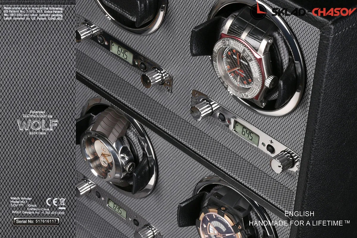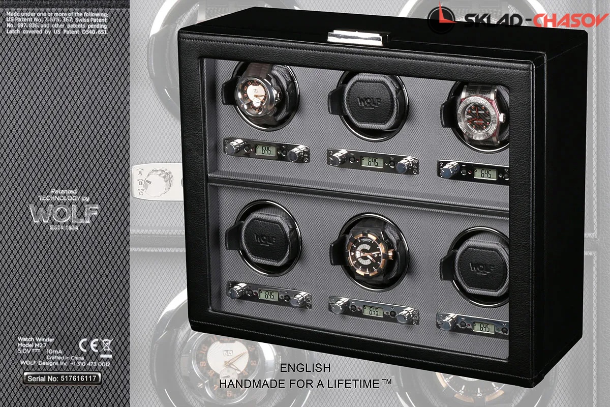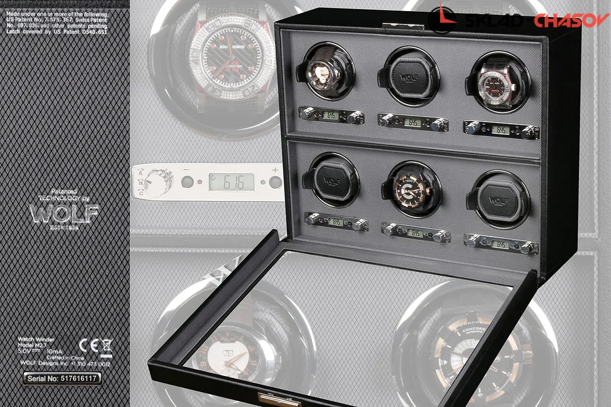 Шкатулка от известного английского старинного бренда "Wolf design" выполнена вручную лучшими мастерами. Корпус изготовлен из натурального дерева. Внутренняя отделка - износостойкий шёлк. Независимый подзавод шести часов любой сложности. Удобный современный держатель для ваших любимых часов с фиксацией. Каждая шкатулка со своим серийным номером. Регулируется 3 направления вращения при кол-ве оборотов от 300 до 1200 в сутки. Возможность фиксации на ключик. Отложенный старт механизма 10 секунд. Гарантия 18 мес. Фирменная подарочная чёрная коробка. Удобные классические держатели для наручных часов с логотипом WOLF. Корпус изготовлен из натурального дерева. Мягкая подушка черного цвета.