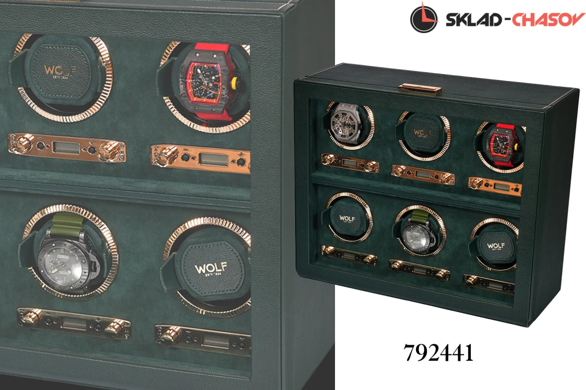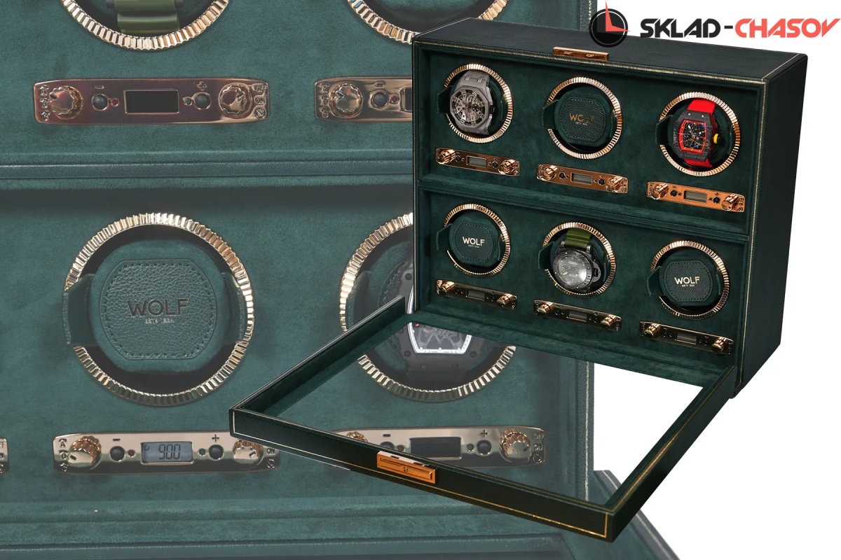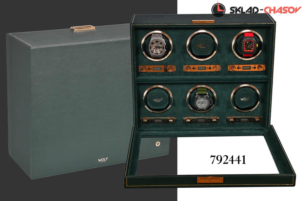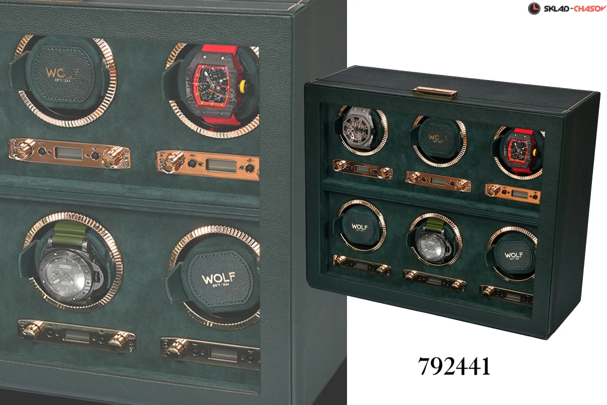 Мало найдется цветов, столь же изысканных и неповторимых, как глубокий, роскошный оттенок British Racing Green. Благодаря элегантному спортивному стилю и гоночному наследию, объединяющими таких знаменитостей как Стирлинг Мосс, Джим Кларк и Грэм Хилл с легендарными брендами Bentley, Jaguar, Lotus и Aston Martin, темно-зеленый оттенок неразрывно связан с роскошью и британским спортивным совершенством. Вполне естественно, что классический британский бренд WOLF использовал этот триумфальный цвет в собственной премиальной коллекции шкатулок для автоматического завода и хранения часов. Каждое изделие из коллекции WOLF British Racing Green изготавливается из мягкой эластичной экокожи с фактурной поверхностью, отличается отделкой высшего класса и повышенным вниманием к деталям, отражает суть гоночного наследия. Виндеры WOLF British Racing Green выпускаются в разных модификациях в зависимости от количества заводимых часов: 1, 2, 3, 6 и 8, сочетают классический роскошный внешний вид с уникальными техническими инновациями. Верхняя поверхность шкатулки отделаны классическими панелями, напоминающими раритетные упаковки для механических часов середины ХХ века, и украшены тонкой полоской из золотой фольги ручной работы. Внутренние поверхности устланы зеленой алькантарой цвета British Racing. Фурнитура выполнена из золотого металла для создания благородного классического эффекта, включая блестяще отполированные рамки с рифленым дизайном в винтажном стиле. Помимо внешнего вида, каждая из этих шкатулок оснащена ультрасовременным мотором для обеспечения бесперебойной и надежной работы. Запатентованный счетчик подзавода WOLF отслеживает точное количество оборотов, выполняемых в день, в то время как все другие виндеры, представленные на рынке, просто оценивают эту цифру. Это точное количество оборотов может быть установлено пользователем вручную в диапазоне от 300 до 1200 оборотов в день по часовой стрелке, против часовой стрелки или в двунаправленном режиме. Настраиваемая настройка позволяет владельцам индивидуально настраивать программу подзавода в соответствии с запасом хода каждой отдельной пары часов, при этом настройки программы варьируются от 6 до 72 часов запаса хода, что позволяет часам высвобождать накопленную энергию до начала программы подзавода. Для обеспечения абсолютной безопасности во время программы заводки запатентованная фиксирующая манжета WOLF надежно фиксирует часы практически любого размера во вращающемся барабане с помощью пены низкой плотности, оказывающее минимальное давление на часы. Каждое изделие из серии WOLF British Racing Green скрывает дополнительную секцию под обшитой панелями крышкой, обеспечивая незаметное и надежное место для хранения наручных часов, ремешков и мелких ценностей. Сделанный вручную, British Racing сочетает в себе зеленый цвет международных автогонок британских автомобилей, участвовавших в гонках в Ирландии в начале 1900-х годов, с революционной четырехугольной панельной крышкой. Тонкая работа включает в себя линии золотой фольги вручную на веганской зернистой коже. Золотые фурнитуры, удобные петли и рифленый безель. BRG, еще один дизайн, впервые разработанный компанией Wolf. Шкатулка удобна в использовании так есть дополнительное хранения часов , закрывается на ключик.
