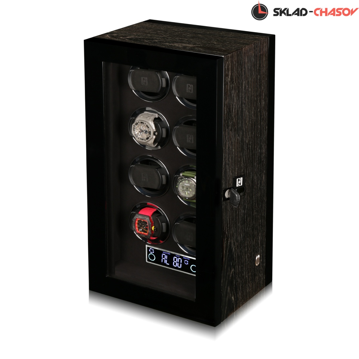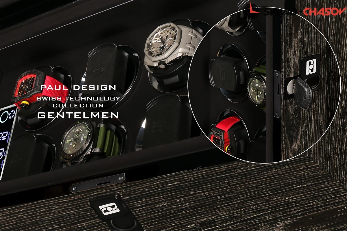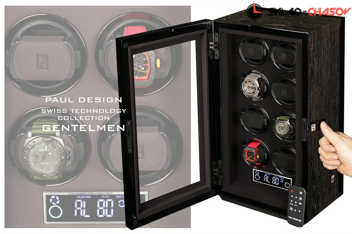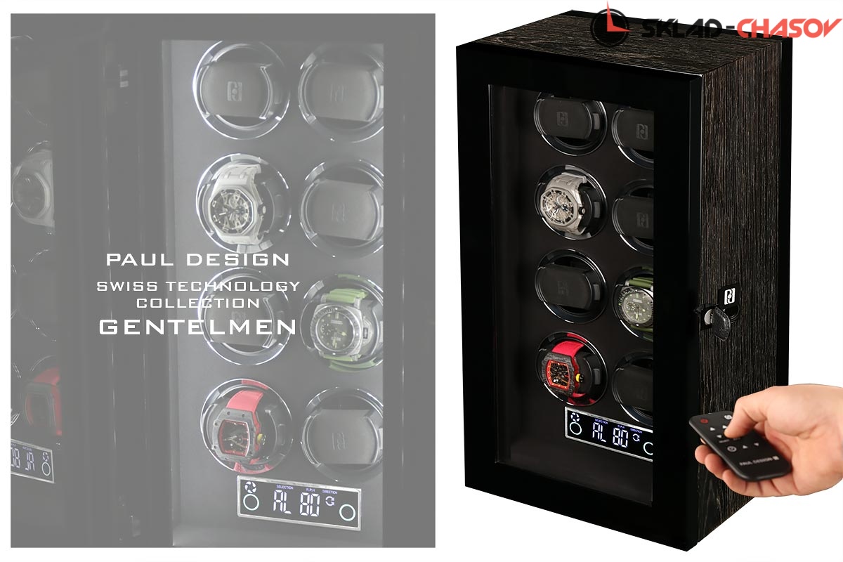 Шкатулка фирмы PAUL DESIGN для независимого автоматического подзавода 8 автомеханических часов. Новинка открытие ключиком и возможно отпечатком пальца. До 5 пальцев можно запрограммировать. Отделка ключа чёрная кожа. Внутренняя отделка - микрофибра чёрного цвета . Корпус шкатулки выполнен из ценных пород дерева "темный бамбук". Табло (тачскин дисплея) последнего поколения для удобства с функцией работы от пульта. Надежный бесшумный мотор и дверца с стеклом не будут вас отвлекать при использовании. Универсальный держатель подходит абсолютно для всех часов так как является единственным в своём роде под маленькие и большие запястья. Питание от сети 220В. Идеально подходит для автоподзавода всех механических часов, есть встроенные все программы, возможность выбора 3-х направлений вращения и регулировка количества оборотов от 480-1920 в день. Есть встроенные часы на табло. Светодиодная подсветка нового поколения с отдельной кнопочкой и функцией автовключения и выключения. Удобная, практичная, красивая шкатулка с кожаным чехольчиком для документов, пультом и фирменной - подарочной коробкой, не оставит вас равнодушным! Идеальна для себя и подарка! На шкатулку распространяется фирменная гарантия сроком 1 год в фирменном сервисе "Тайммувер-Сервис".