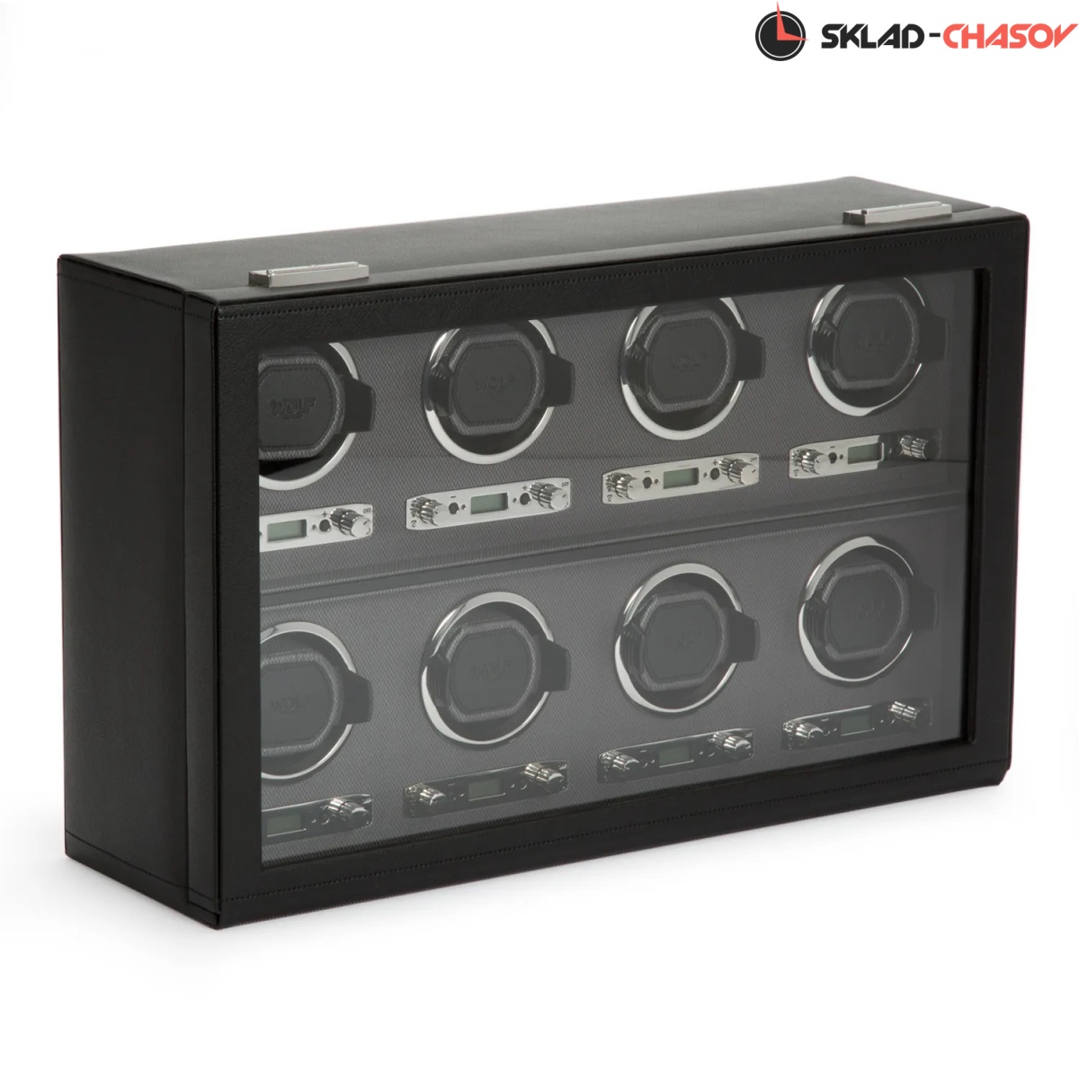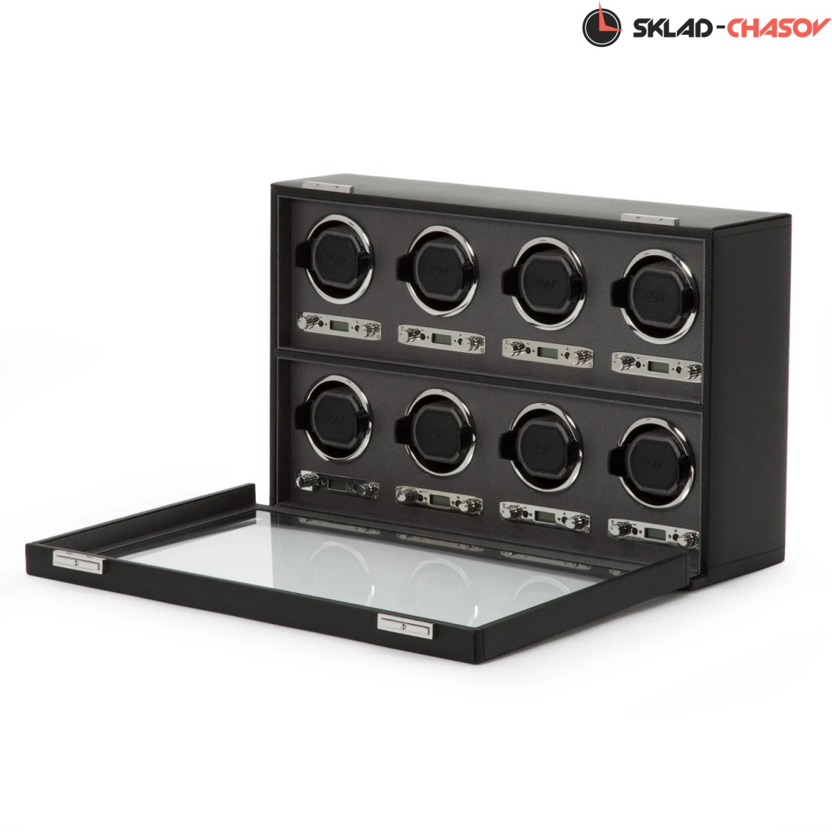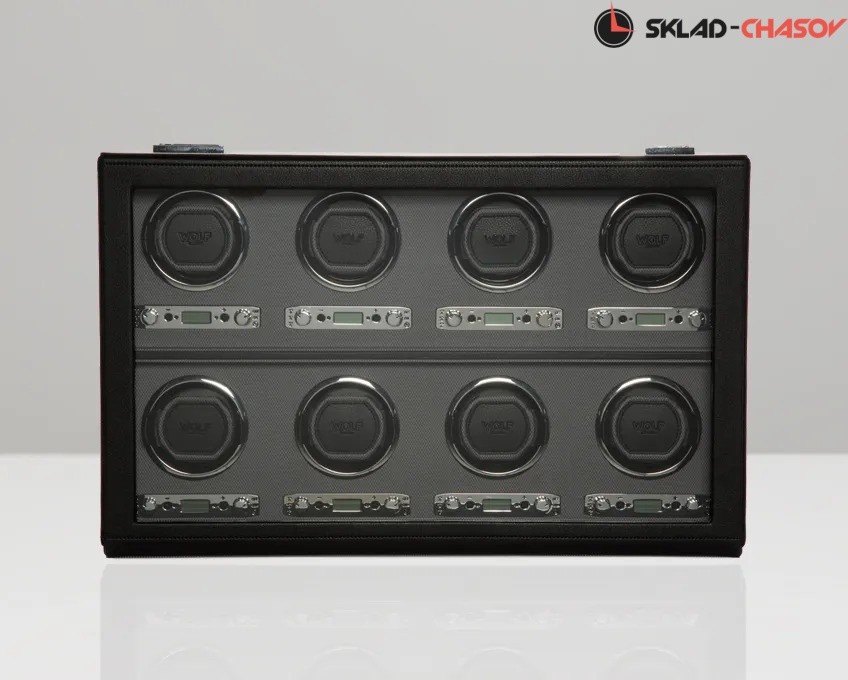 Шкатулка от известного английского и старинного бренда "Wolf design" не оставит равнодушным презентабельных и успешных людей, так как выполнена в ручную лучшими мастерами. Корпус из черной кожи, внутри отделка серебристая текстурированная шелковая подкладка. Подзавод восьми часов любой сложности, современный держатель для ваших любимых часов с фиксацией. Внешняя дверца с возможностью закрытия на ключик. Каждая шкатулка со своим серийным номером. Работает от сети. Регулируется 3 направления вращения при кол-ве оборотов от 300 до 1200 в сутки. Возможность фиксации на ключик. Отложенный старт механизма 10 секунд. Гарантия 12 мес. Фирменная подарочная чёрная коробка.