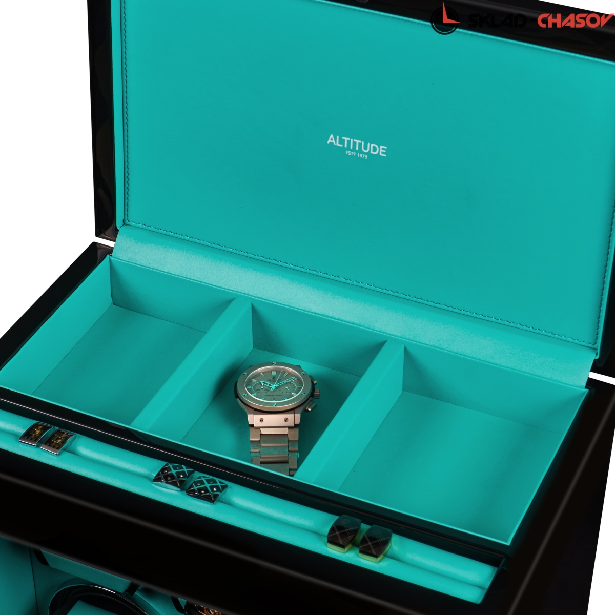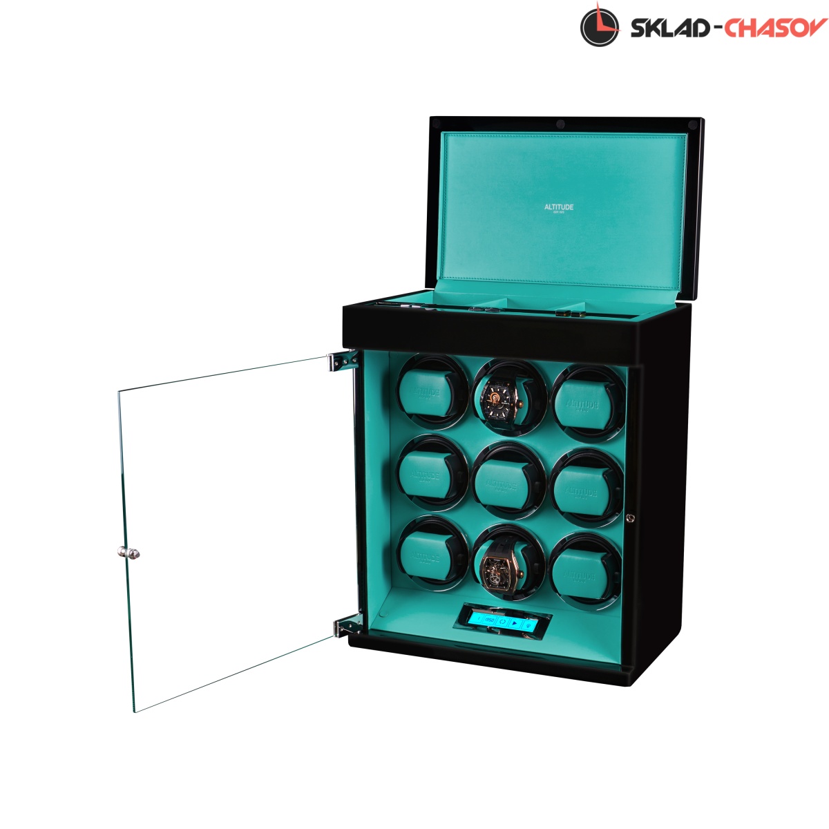 Основное предназначение шкатулки — автоматических независимый подзавод 9-ти часов любой сложности. Выбор программ осуществляется при помощи сенсорного дисплея последнего поколения.