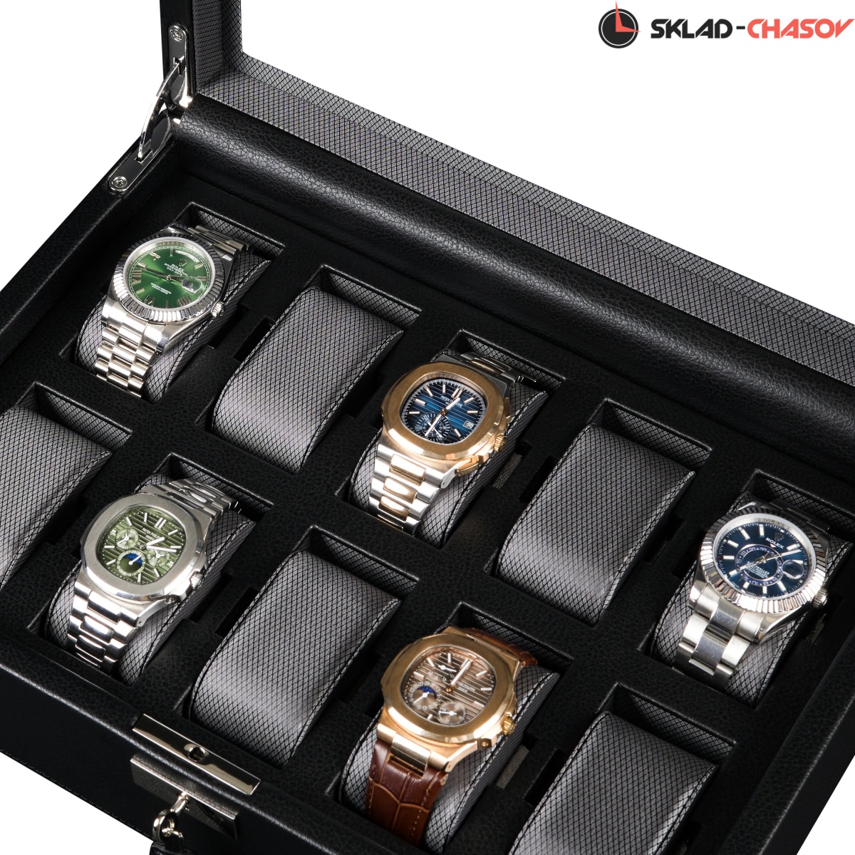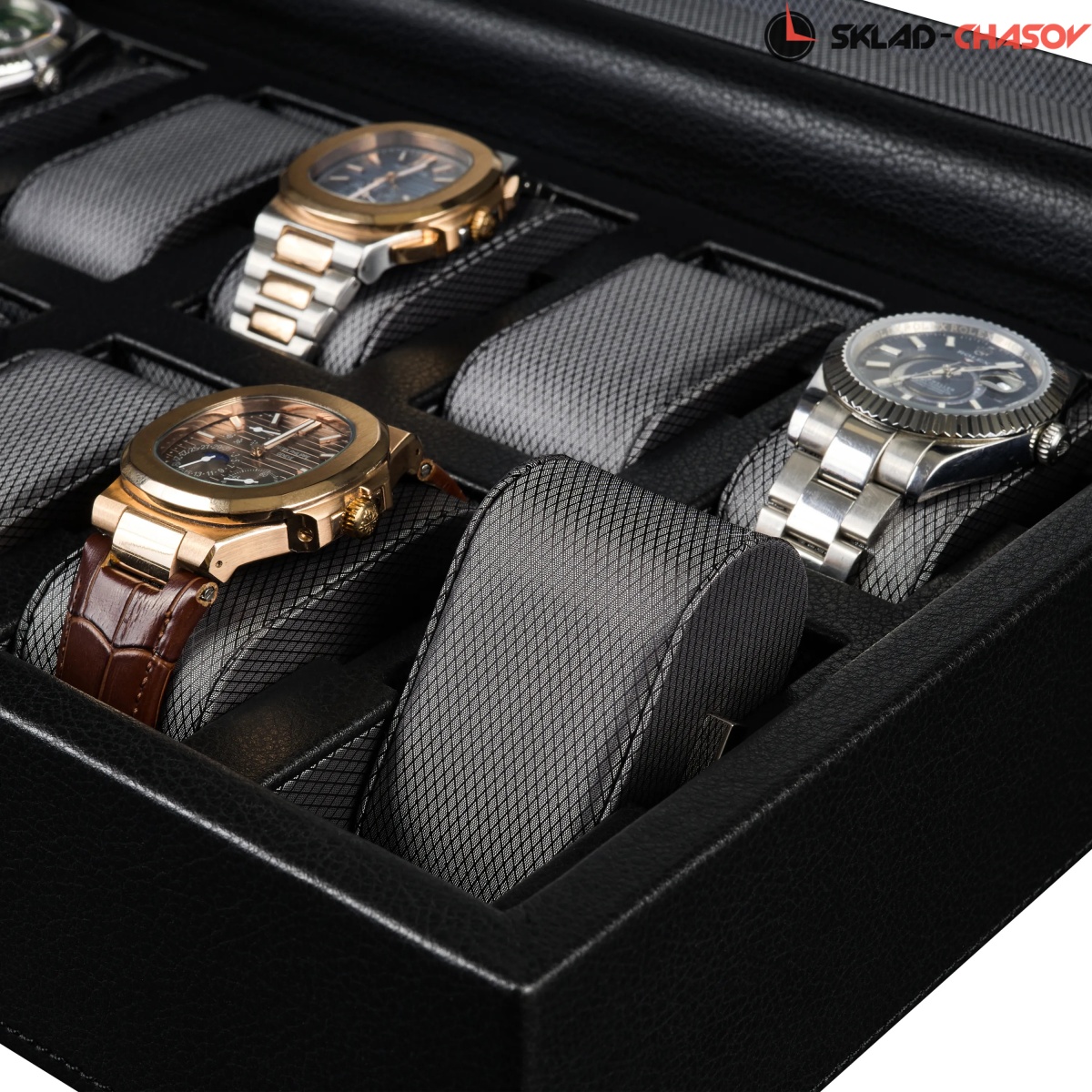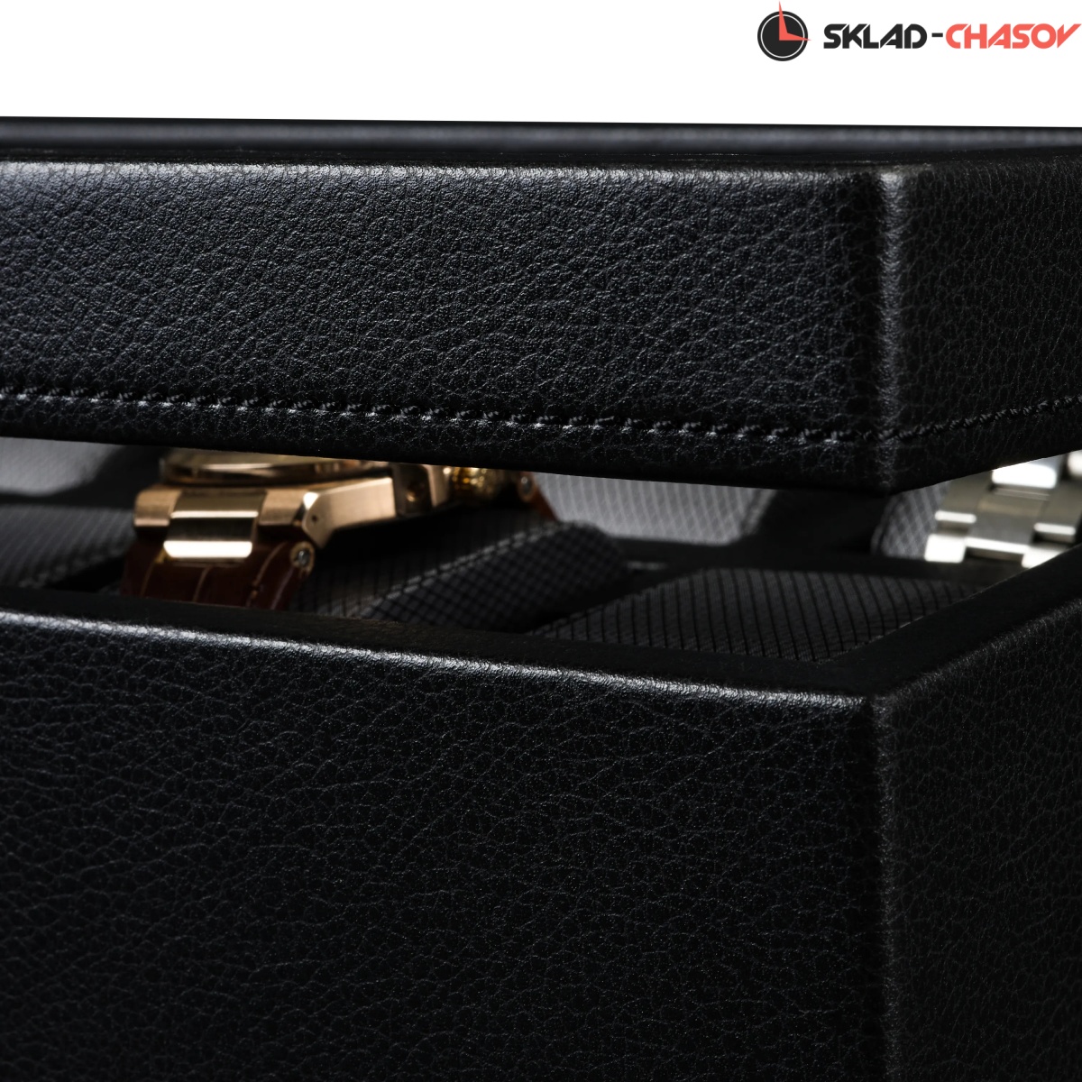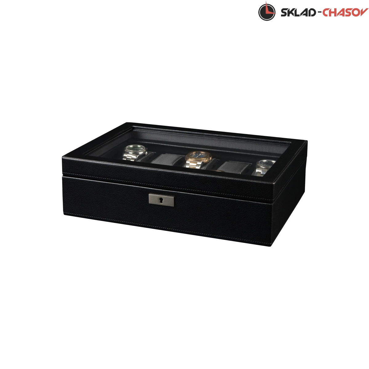 Классика от самого известного английского бренда Wolf поражает воображение своим видом и используемыми материалами. Шкатулка создана для хранения ваших часов в безопасности под металлическим ключиком. Изящность модели прослеживается в каждой детали, в каждой линии. Экстерьер выполнен из мягкой экологичной кожи высшего сорта, плавно переходящий в современный интерьер с использованием аналогичной кожи и дизайнерской микрофибры. Абсолютно каждый элемент фурнитуры покрыт глянцевой краской. Через натуральное стекло можно созерцать коллекцию из 10-ти наручных часов на подвесных подушечках. Для ценителей смарт-часов продуман специальный сквозной туннель для провода зарядки. Важно отметить, что вся продукция премиального бренда Wolf изготавливается вручную с использованием экологически чистых материалов.