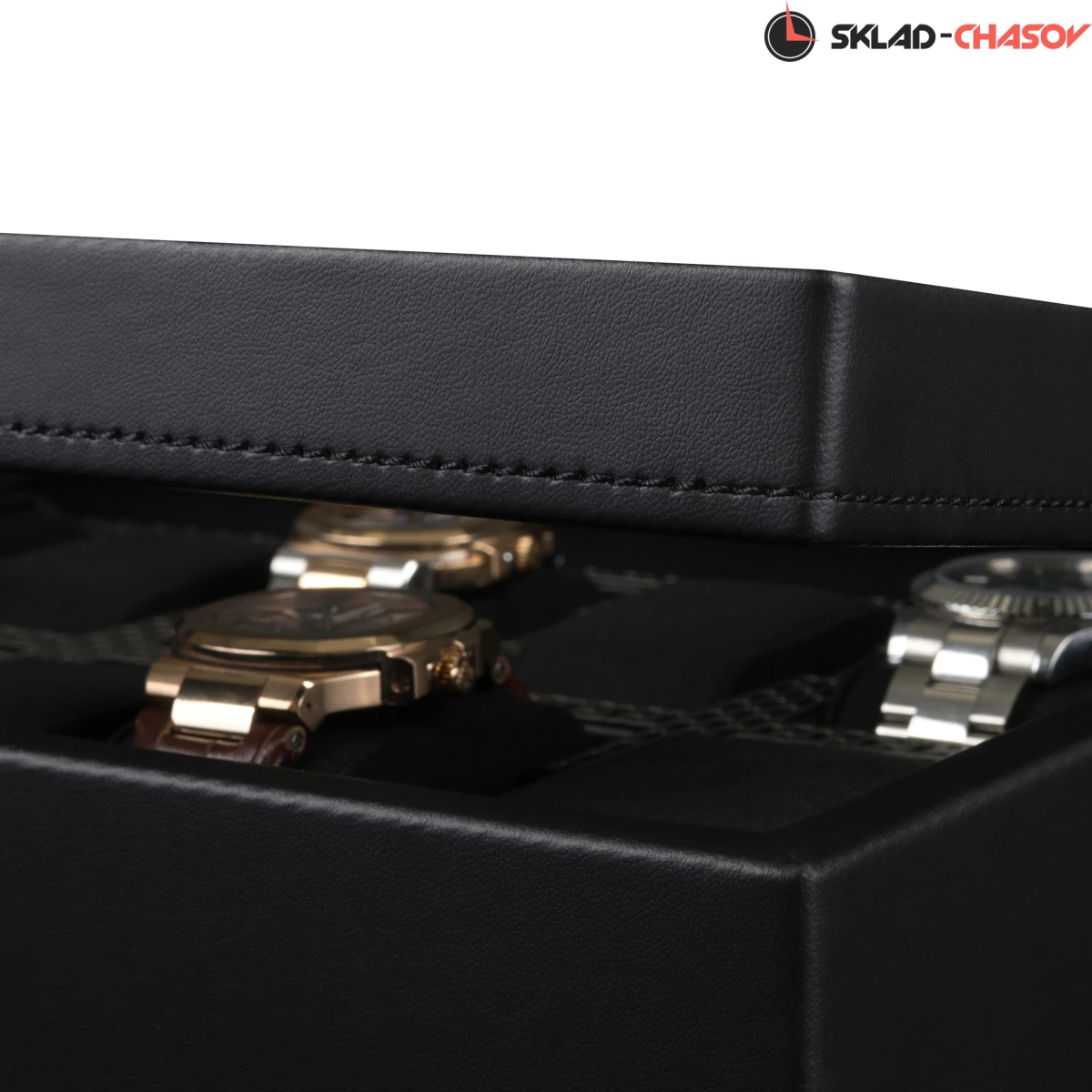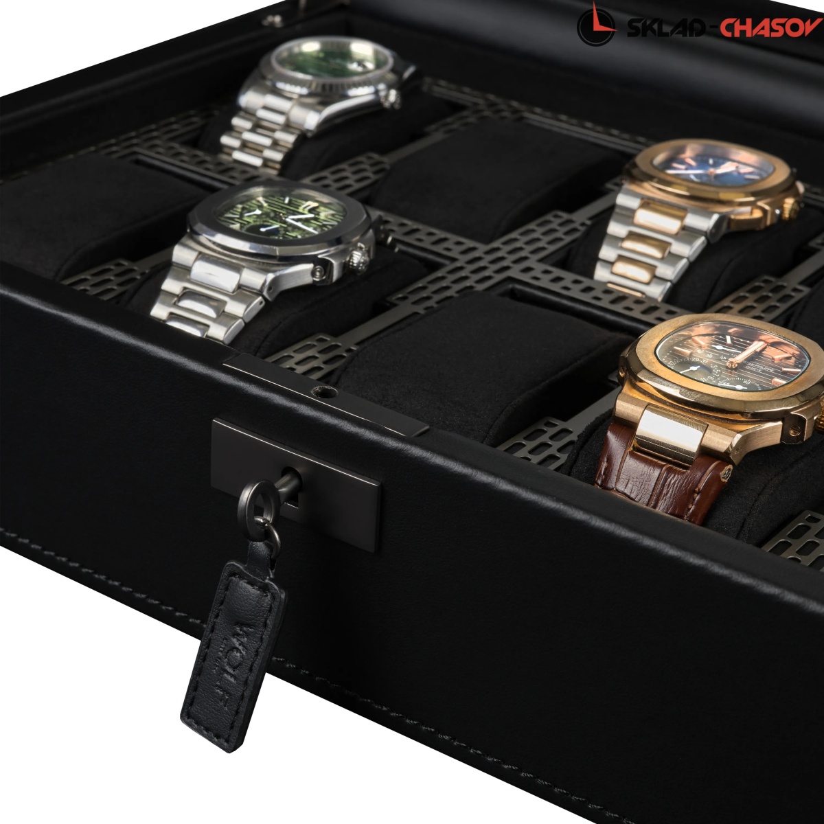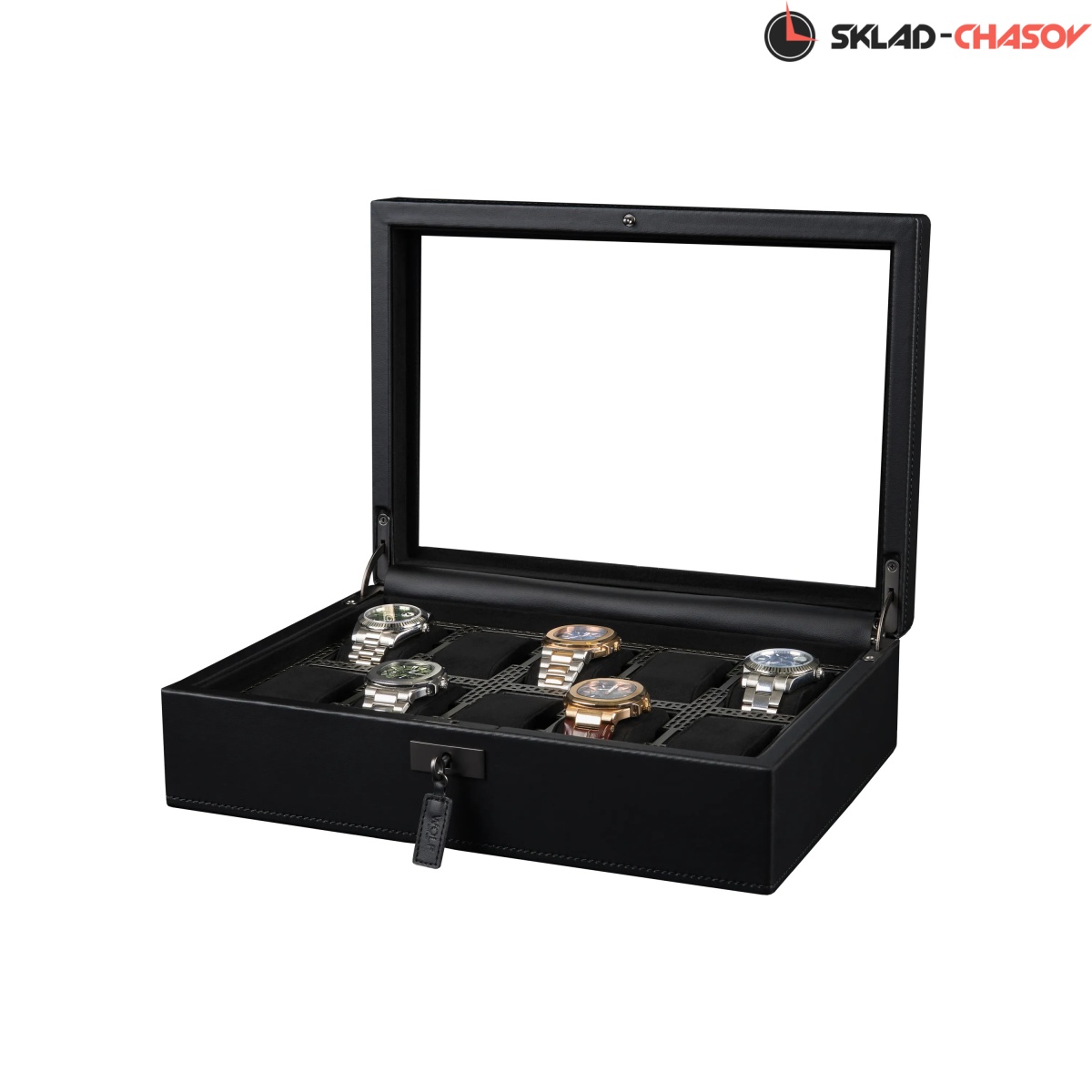 Коллекция Axis от самого известного английского бренда Wolf поражает воображение своим видом и используемыми материалами. Шкатулка создана для хранения ваших часов в безопасности под металлическим ключиком. Экстерьер выполнен из мягкой экологичной кожи высшего сорта, плавно переходящий в современный интерьер с использованием матовой перфорированной стали и необычайно мягкого велюра. Абсолютно каждый элемент фурнитуры покрыт порошковой краской. Через натуральное стекло можно созерцать коллекцию из 10-ти наручных часов на подвесных подушечках. Для ценителей смарт-часов продуман специальный сквозной туннель для провода зарядки. Важно отметить, что вся продукция премиального бренда Wolf изготавливается вручную с использованием экологически чистых материалов.