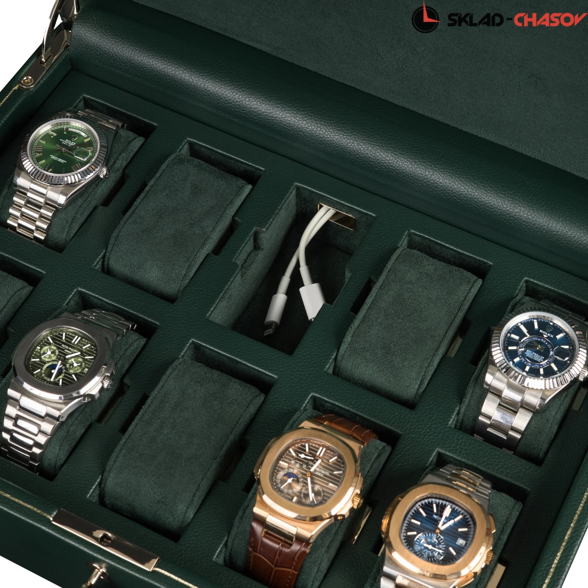 Коллекция British Racing за очень короткий промежуток времени стала классикой и действительно единственной в своём роде. Классика, рожденная премиальным брендом Wolf. Шкатулка создана для хранения ваших часов в безопасности под металлическим ключиком. Экстерьер выполнен из мягкой экологичной кожи высшего сорта, плавно переходящий в классический интерьер с использованием необычайно мягкого велюра. Абсолютно каждый элемент фурнитуры выполнен в одном цветовом решении. Открывая ромбовидную крышку можно созерцать коллекцию из 10-ти наручных часов на подвесных подушечках. Для ценителей смарт-часов продуман специальный сквозной туннель для провода зарядки. Важно отметить, что вся продукция премиального бренда Wolf изготавливается вручную с использованием экологически чистых материалов.