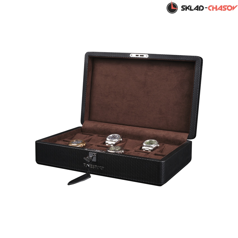Покрытие множественными слоями матового лака придает шкатулке Carbon изящность. Эргономичные подушки позволят с максимальным комфортом и удобством застегнуть на них часы любых размеров.