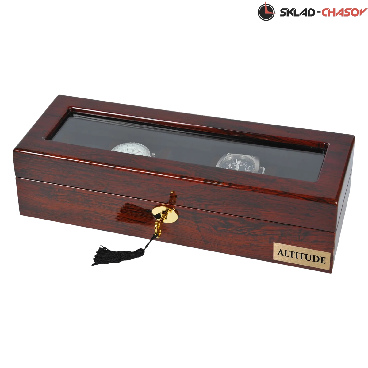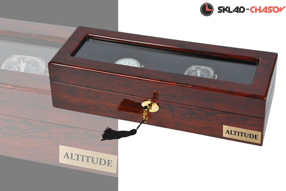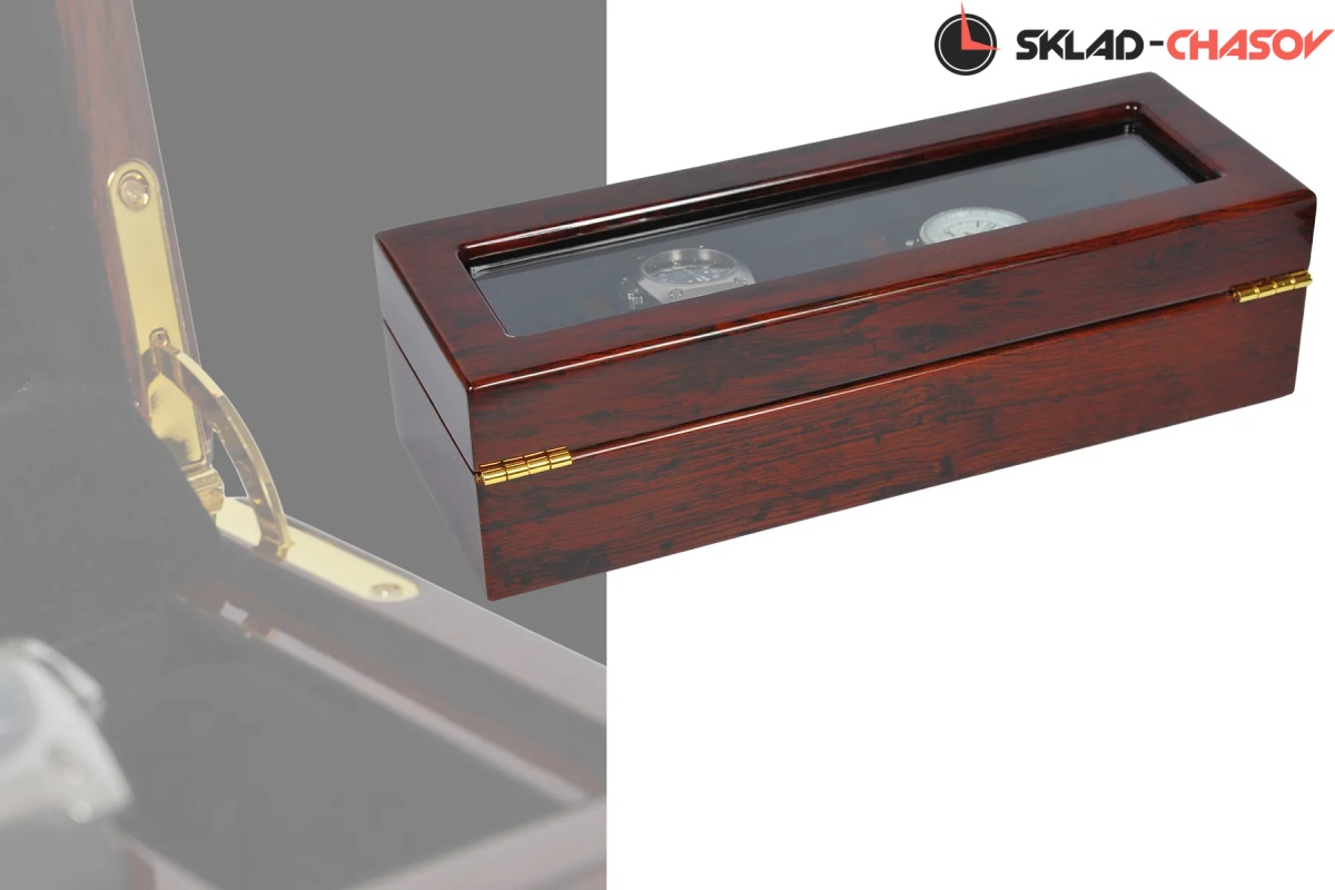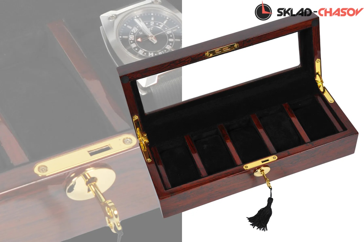 Шкатулка от немецкого производителя выполнена в дереве макассар, закрывается на ключик, предназначена для хранения 5 часов, внутри чёрная ткань, натуральное стекло.