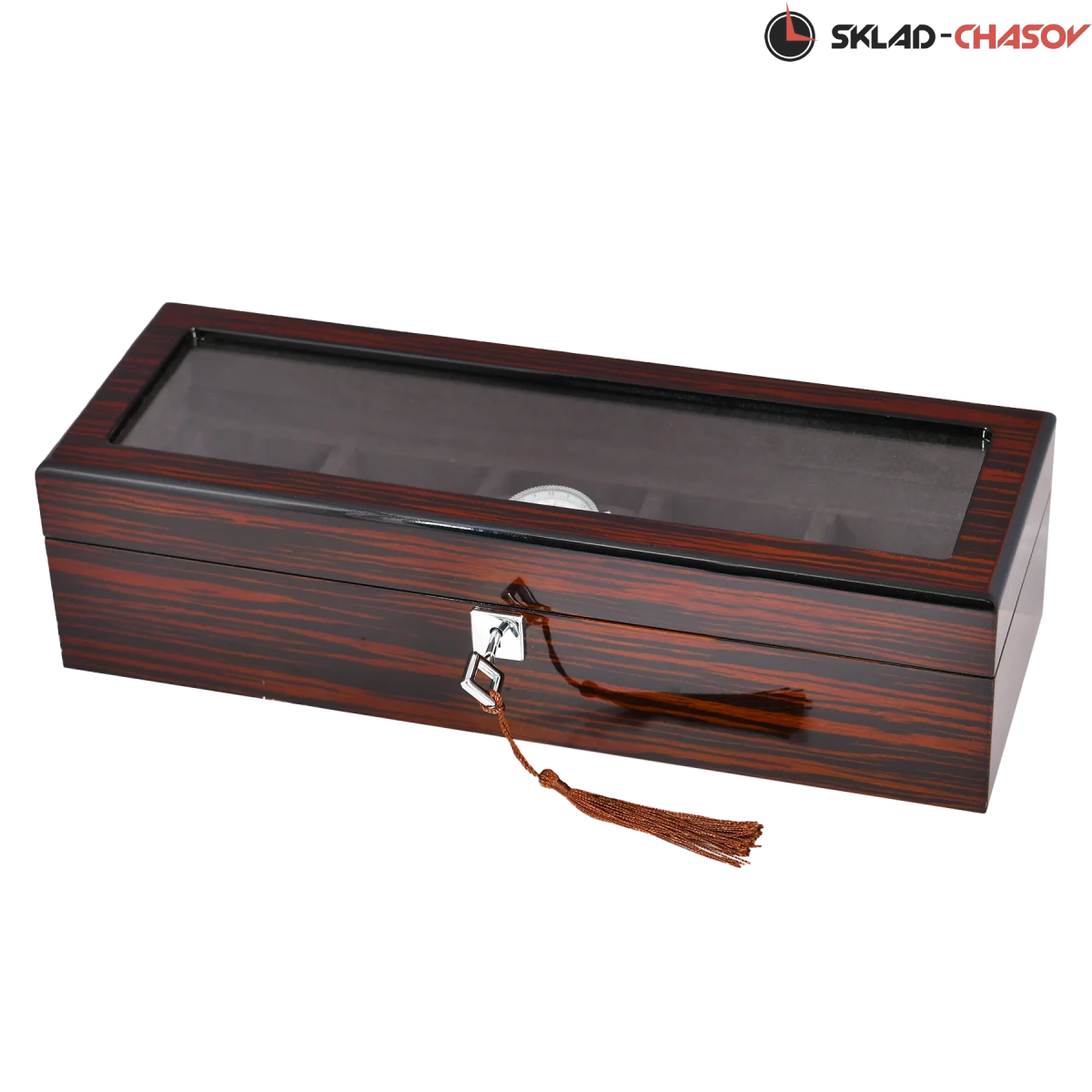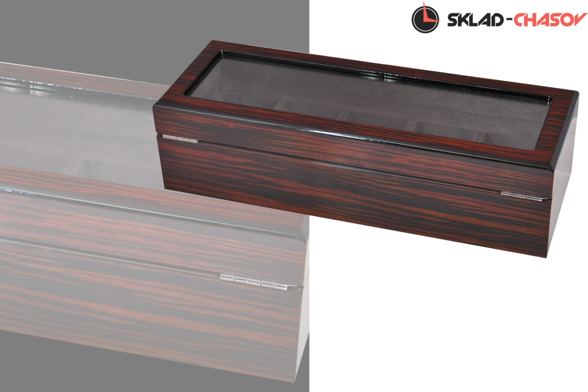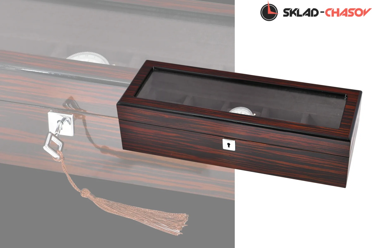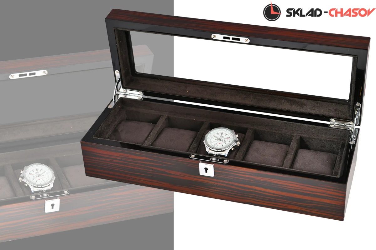 Шкатулка для бережного хранения 5 часов из серии "BoxTradition" от известного бренда Altitude. Корпус шкатулки выполнен из благородного дерева "венге", внутри отделка из высококачественной микрофибры в цвет корпуса. Стеклянная дверца снаружи, закрываемая на ключик. Универсальные подушечки для часов.