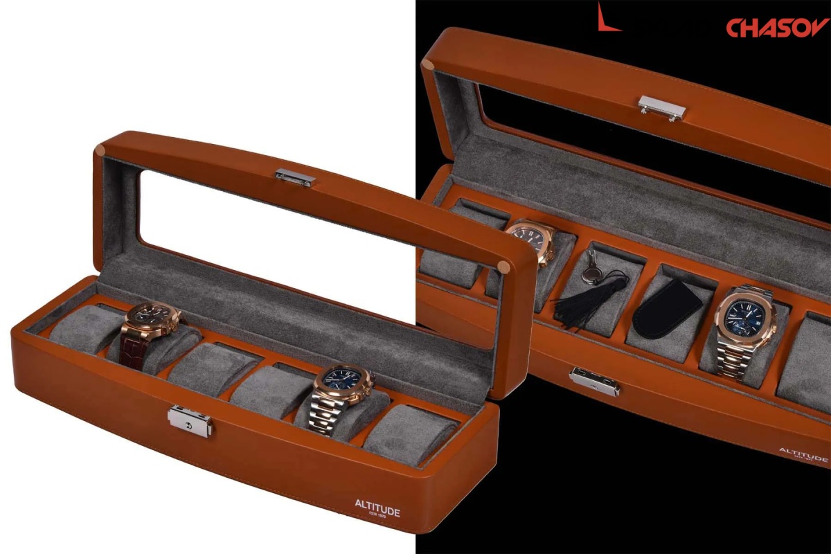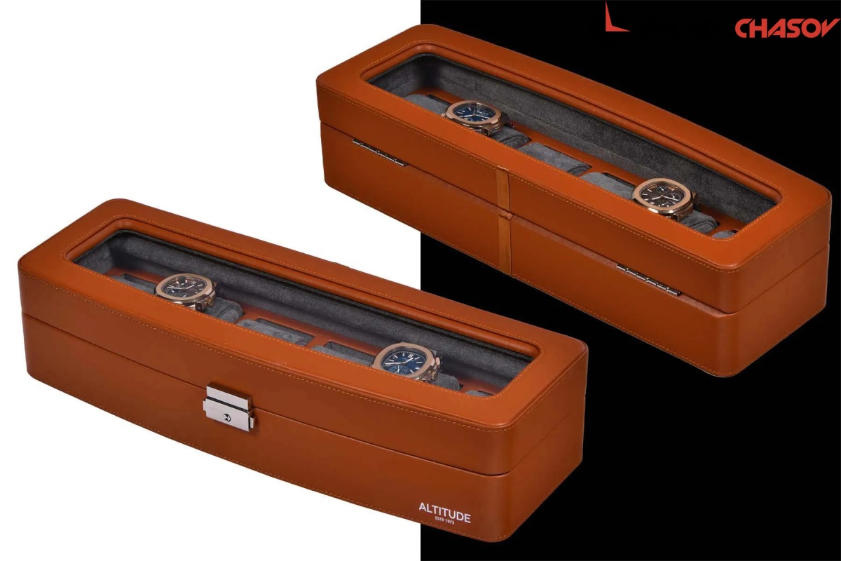 Шкатулочка для бережного хранения 6 наручных часов, выполнено из дерева и покрыто коричневой матовой кожей делюкс, внутри аккуратно выстлано темно-серой микрофиброй (удобство чистки), внешнее полуовальная современная форма с видовым натуральным стеклом, для сохранения закрывается на ключик. Идеальный вариант для интерьера и хранения в сейфе.