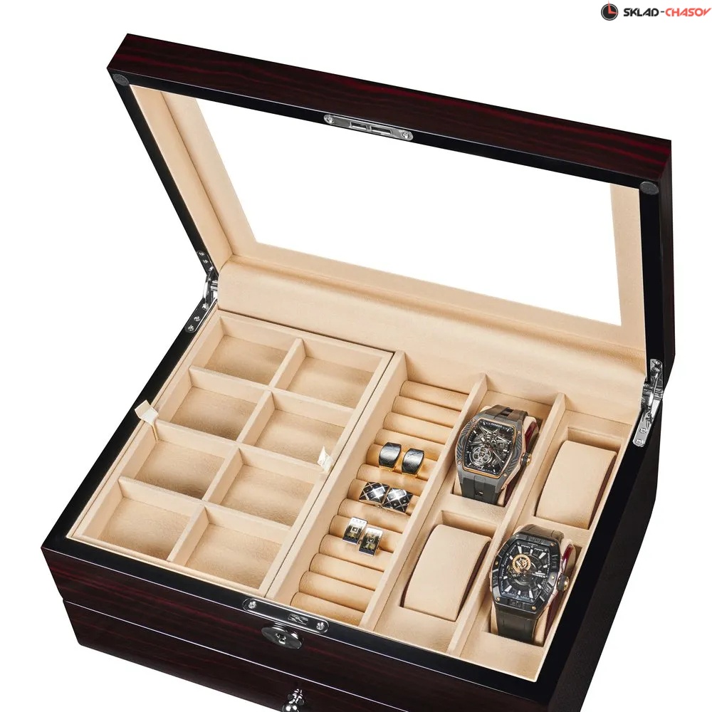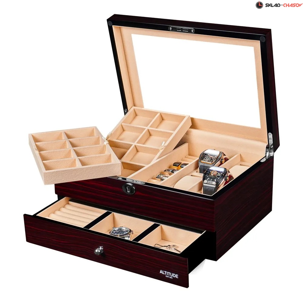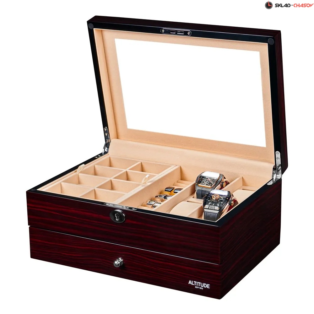 Шкатулка для украшений и часов Altitude J301EC — это элегантное решение для организованного хранения, выполненное в благородной древесной отделке и объединяющее в себе эстетику, комфорт и продуманную внутреннюю структуру.