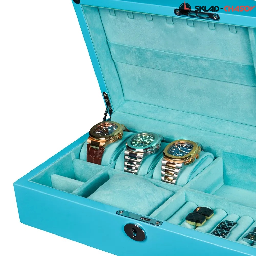 Шкатулка закрывается на замок с ключом, обеспечивая безопасность вашей коллекции.
