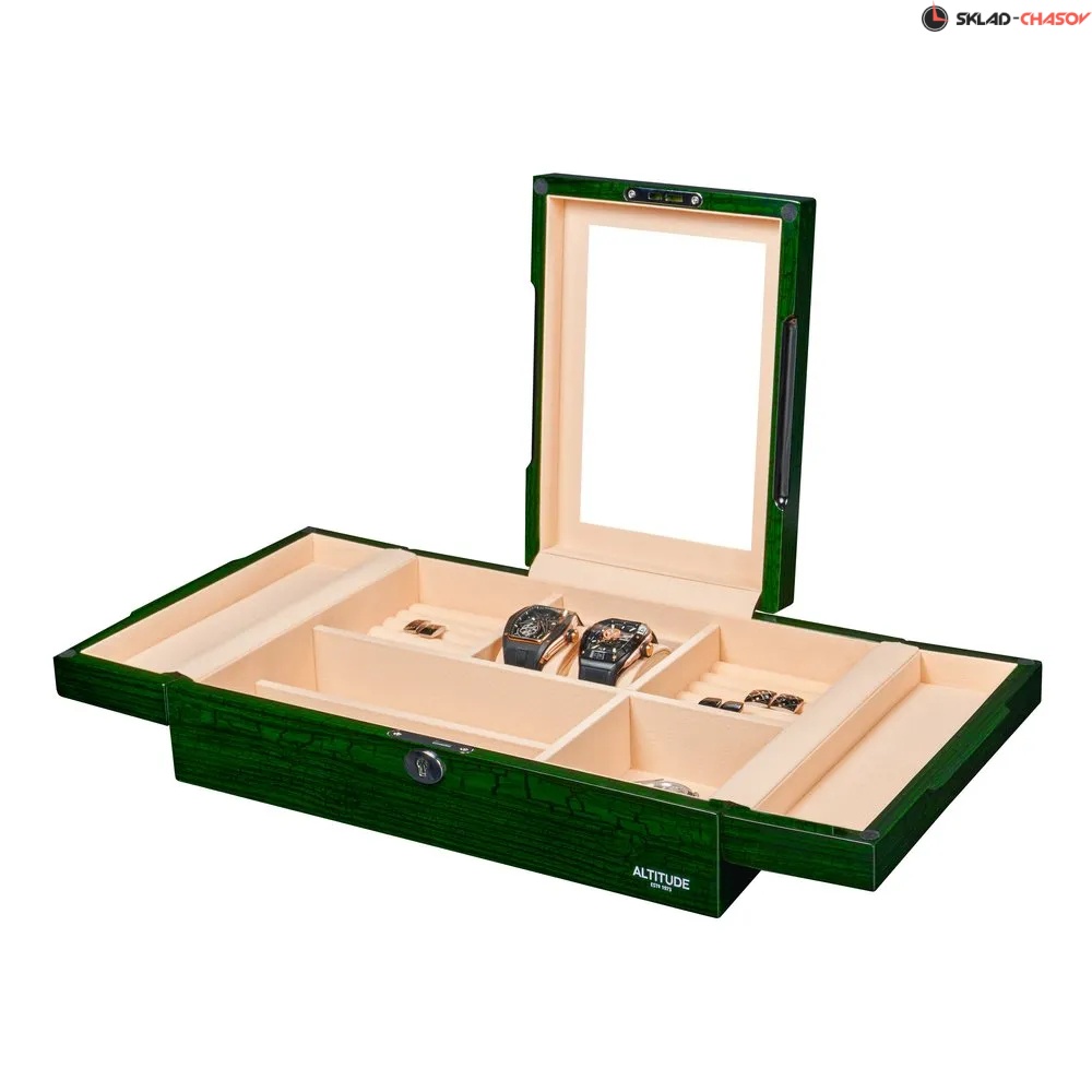 Шкатулка для хранения украшений Altitude TG500-2GRC — это изысканная модель в насыщенно-зелёном исполнении, созданная для тех, кто ценит как эстетику, так и продуманную организацию пространства.